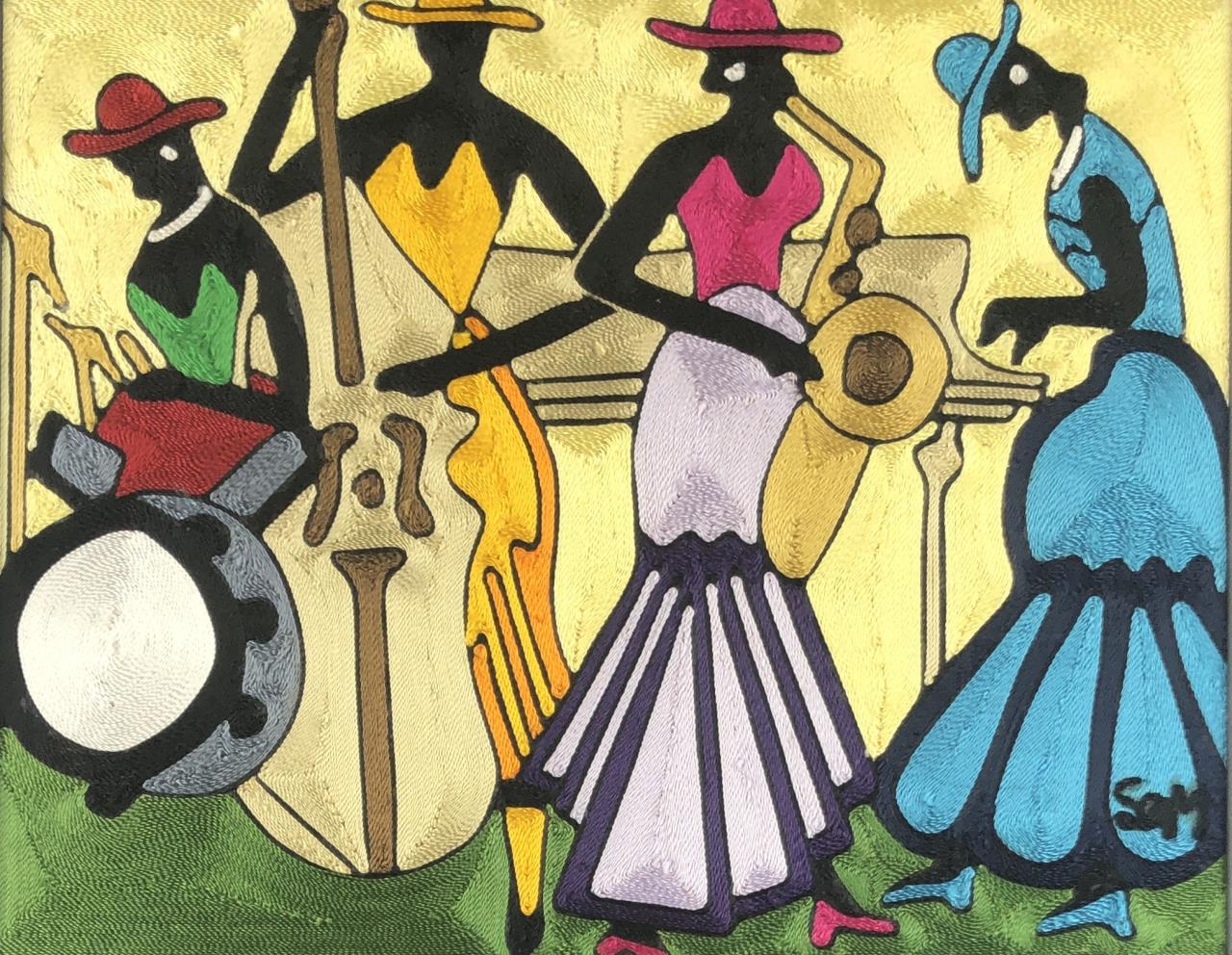 African Silk Thread Art Female Jazz Musicians