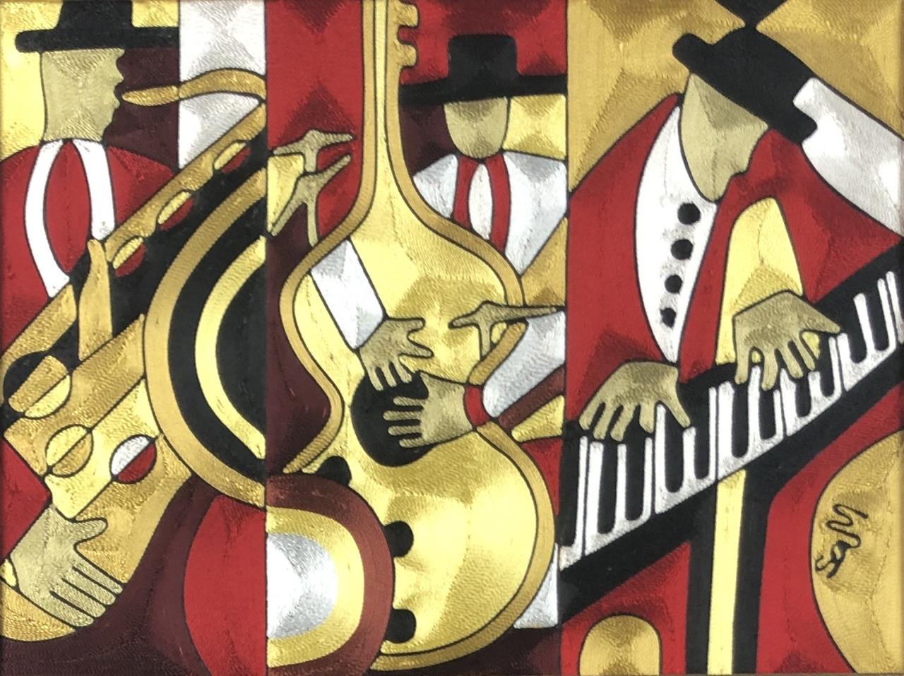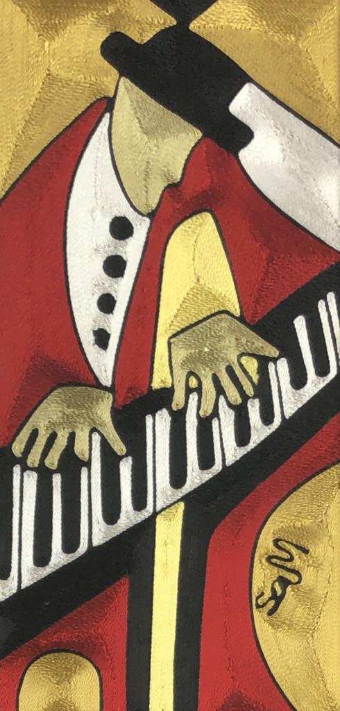 African Silk Thread Art Male Jazz Musicians