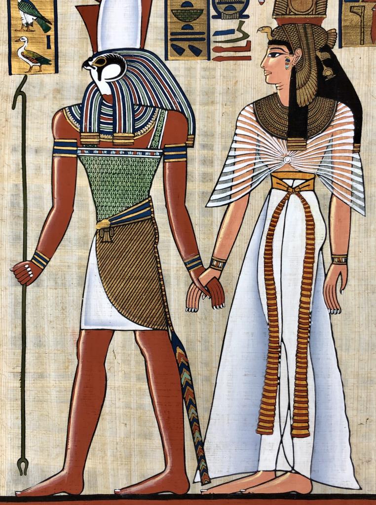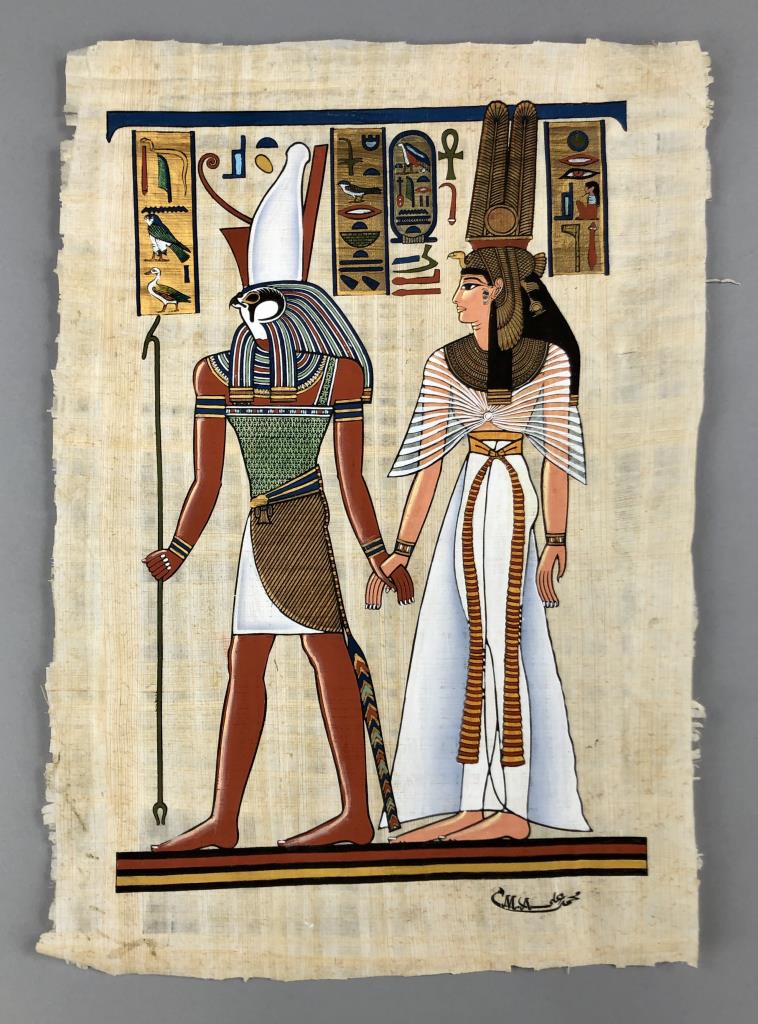 Egyptian Papyrus Painting Horus & Nefertari