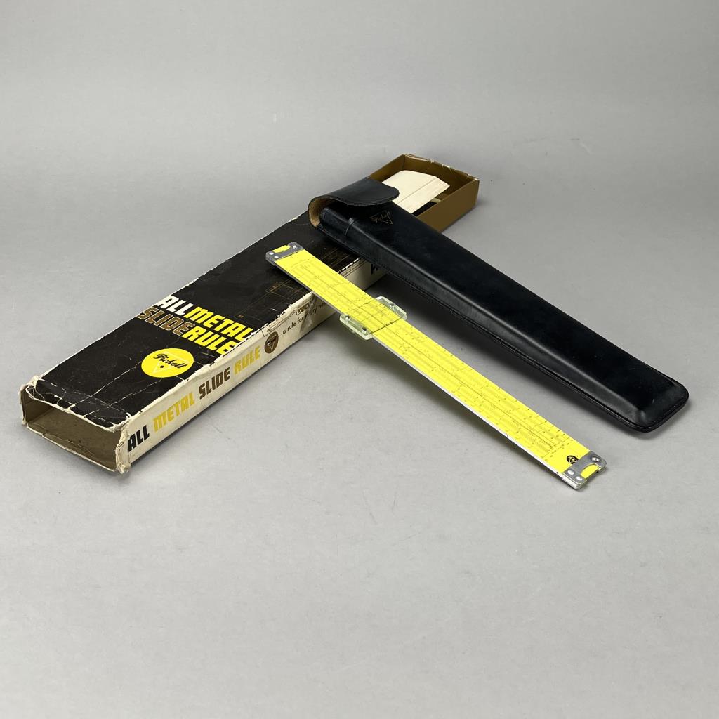 Pickett slide rule, circa 1960s, with case, original box, and instructions. CONDITION: SHIPPING: In-House Shipping Available. Please read our Shipping Policies and Terms and Conditions