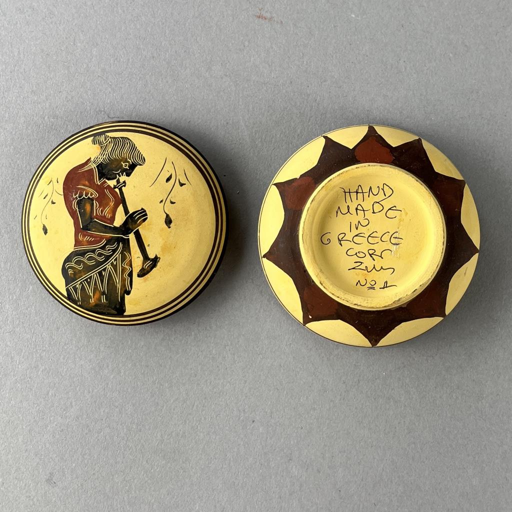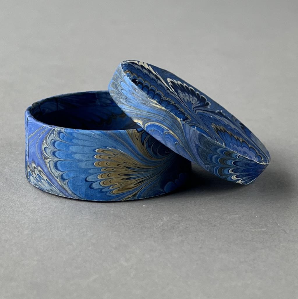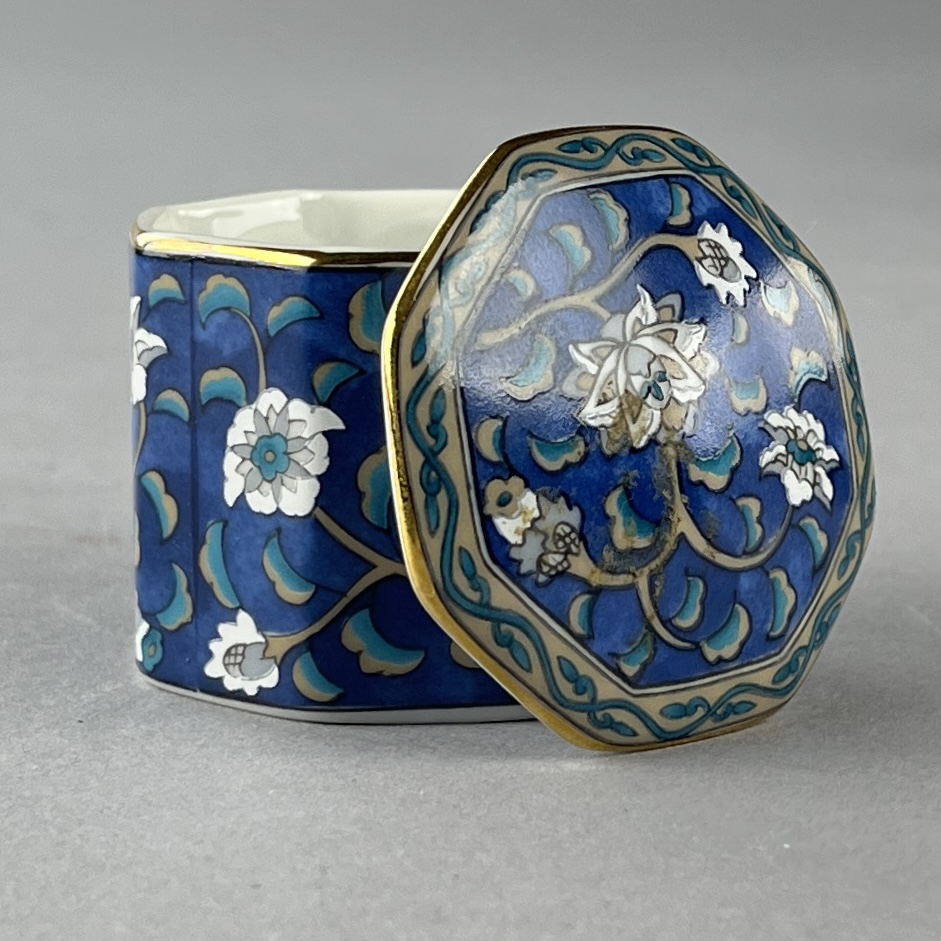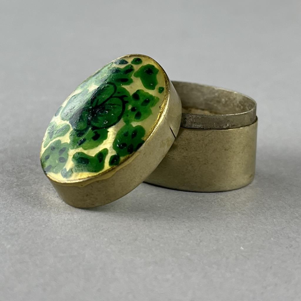 Collection of ten trinket boxes, including examples in turned wood, hand marbelized Italian paper, Chinese cloisonne, Thai and decorated lacquer, hand carved and painted wood, embroidered and painted silk, hand painted porcelain, and more. The largest box, the turned wood apple, is approximately 3-1/4″ (D) x 3-5/16″ (H). CONDITION: SHIPPING: In-House Shipping Available. Please read our Shipping Policies and Terms and Conditions