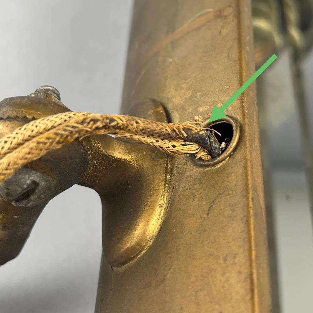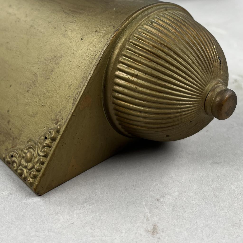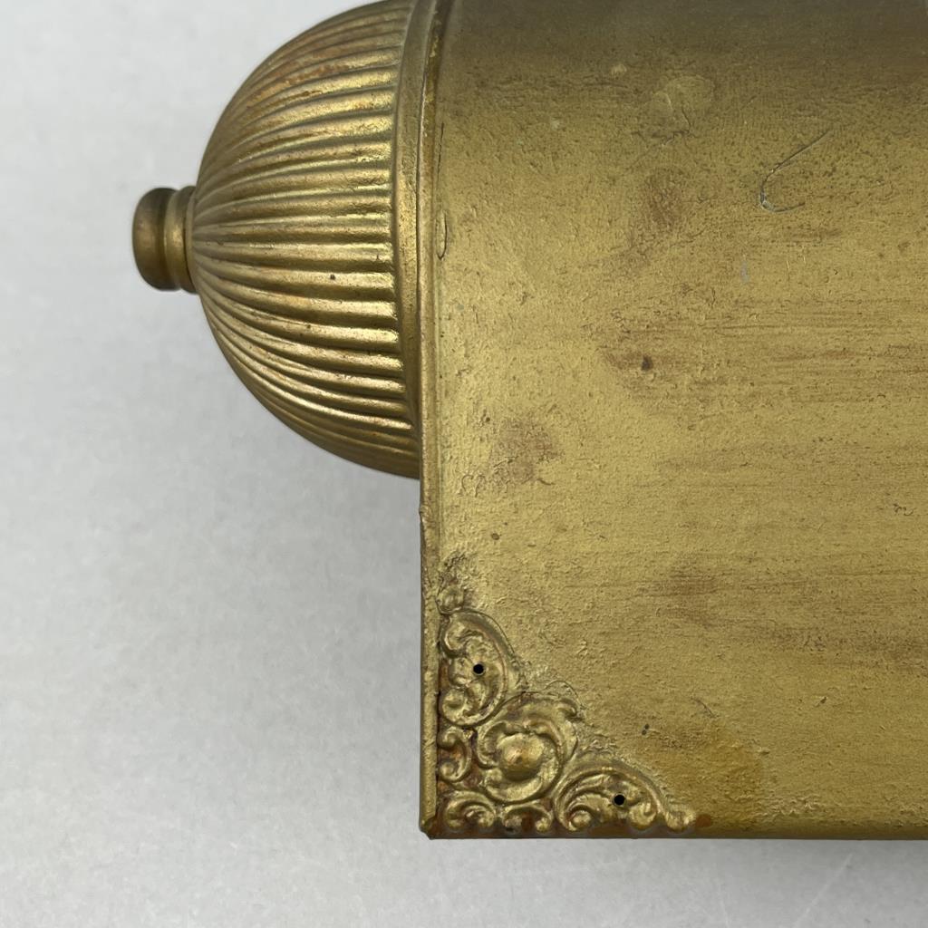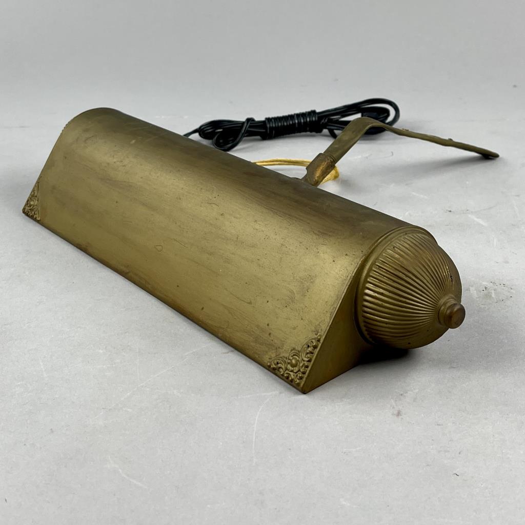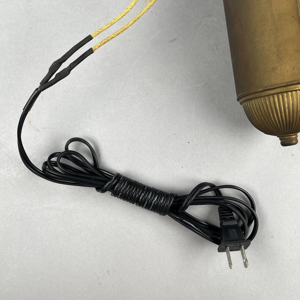 Double light picture frame light, gilt metal, 16″ (L). CONDITION: Untested. Will need to be rewired. Appears to have been repainted at some point. SHIPPING: In-House Shipping Available. Please read our Shipping Policies and Terms and Conditions