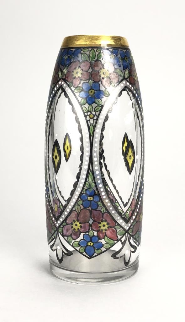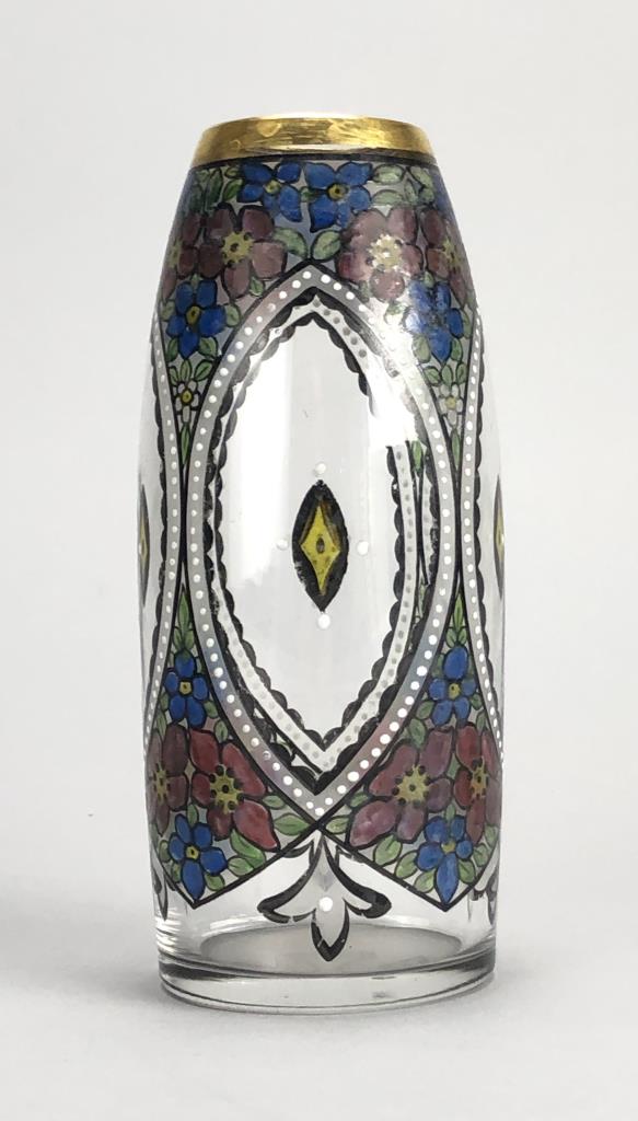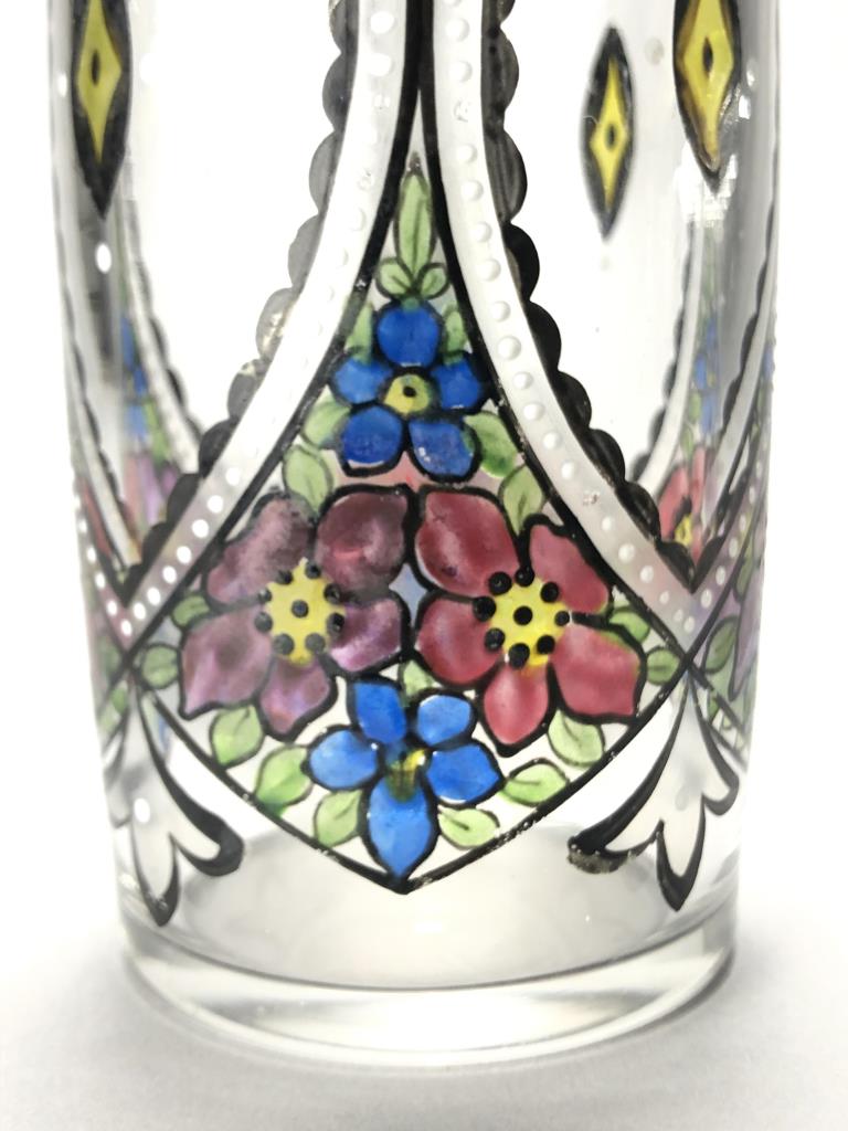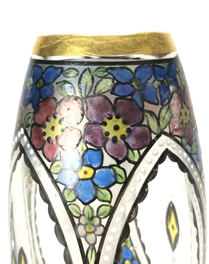 Antique Bohemian vase with hand painted floral and enamel decoration, attributed to Hermann Pautsch (Haida, Bohemia / Czech Republic), polished bottom, circa early 20th Century, approximately 6-5/8″ H. CONDITION: SHIPPING: In-House Shipping Available. Please read our Shipping Policies and Terms and Conditions