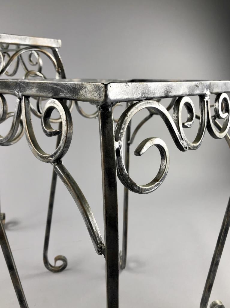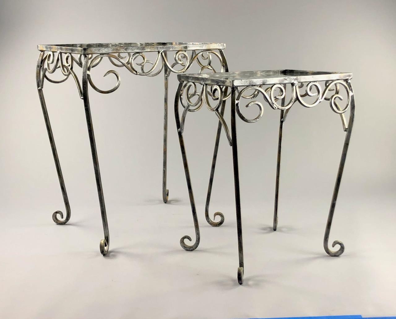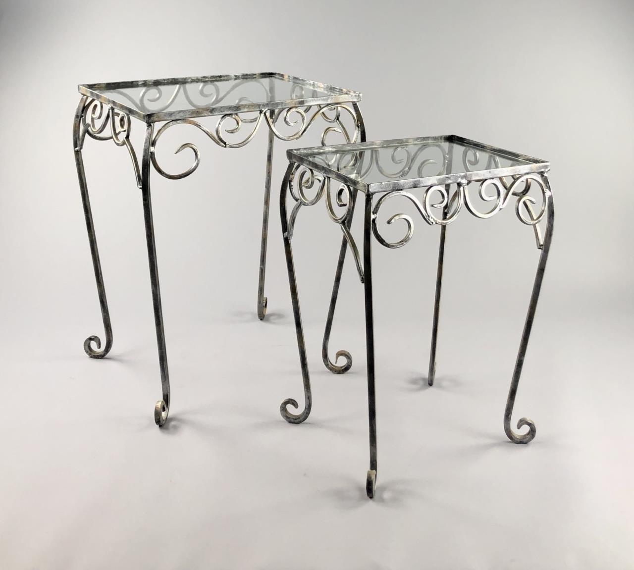 Two small wrought iron style occasional tables with inset glass tops, the largest is 18-3/4″ (W) x 14-15/16″ (D) x 23-1/8″ (H). CONDITION: SHIPPING: Local pick-up or third party shipping only for this lot. Please see the Shipping Policy for information on suggested shippers. We recommend the Pak Mail Store of Battle Creek to assist you. Please contact the shipper of your choice for shipping estimates on this lot. Refer to the Shipping section in our full Terms and Conditions for all information on shipping.