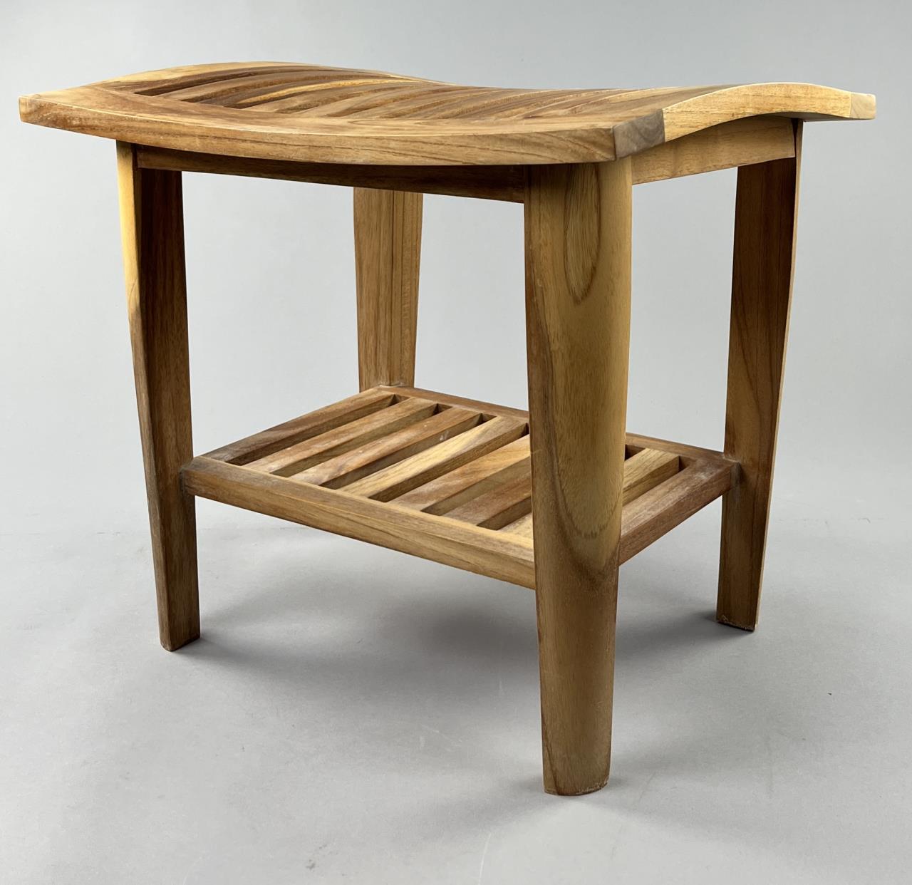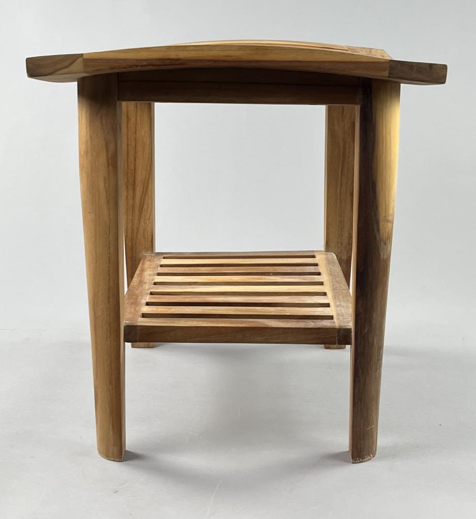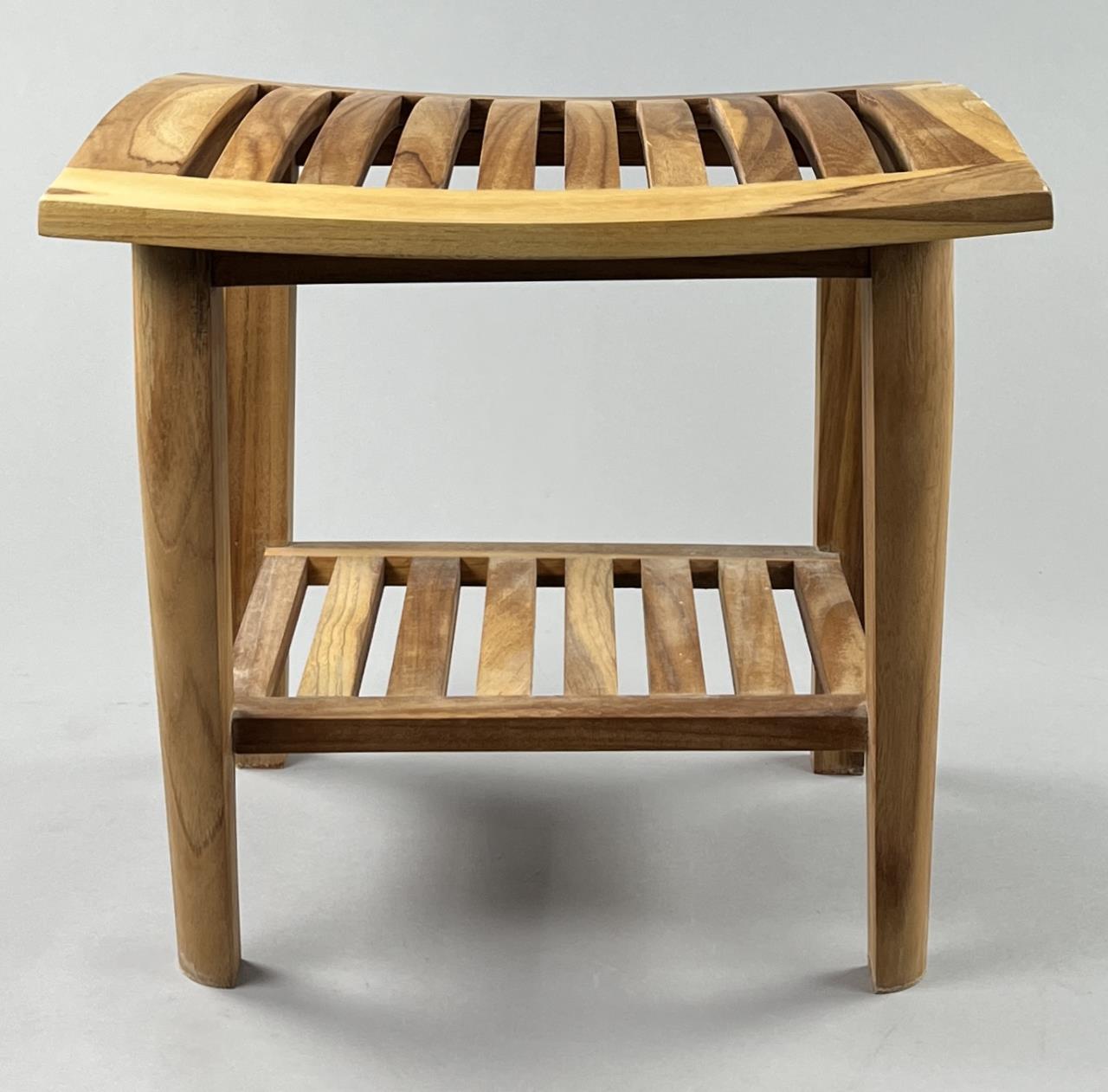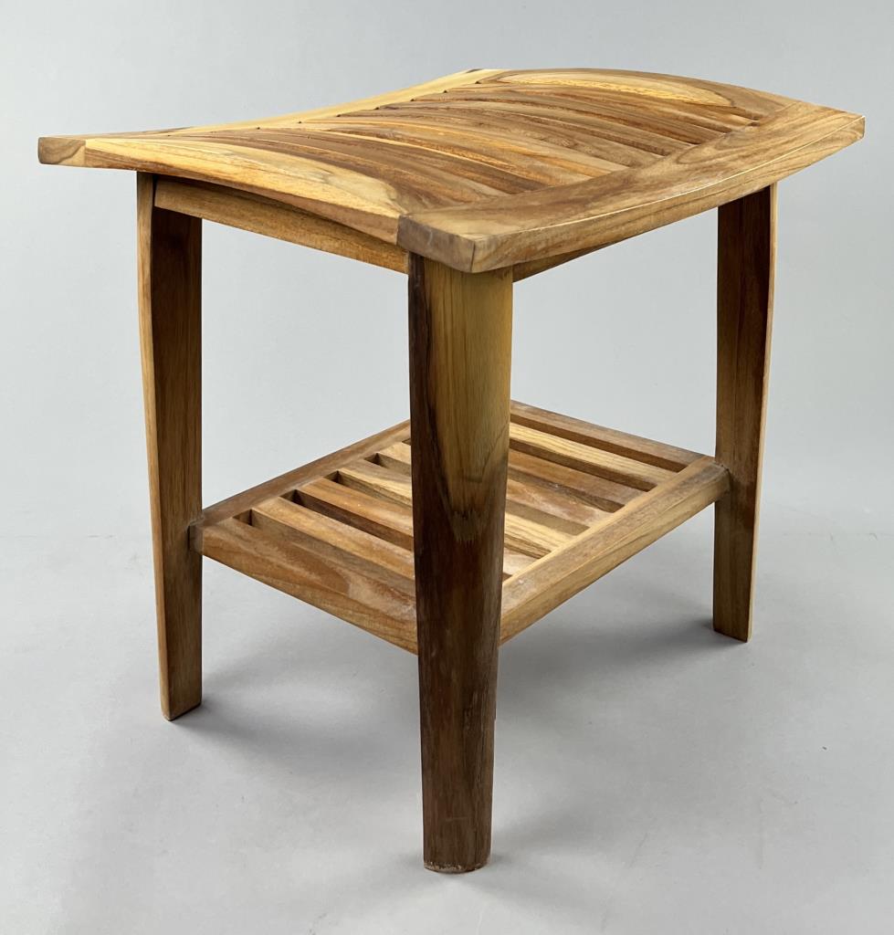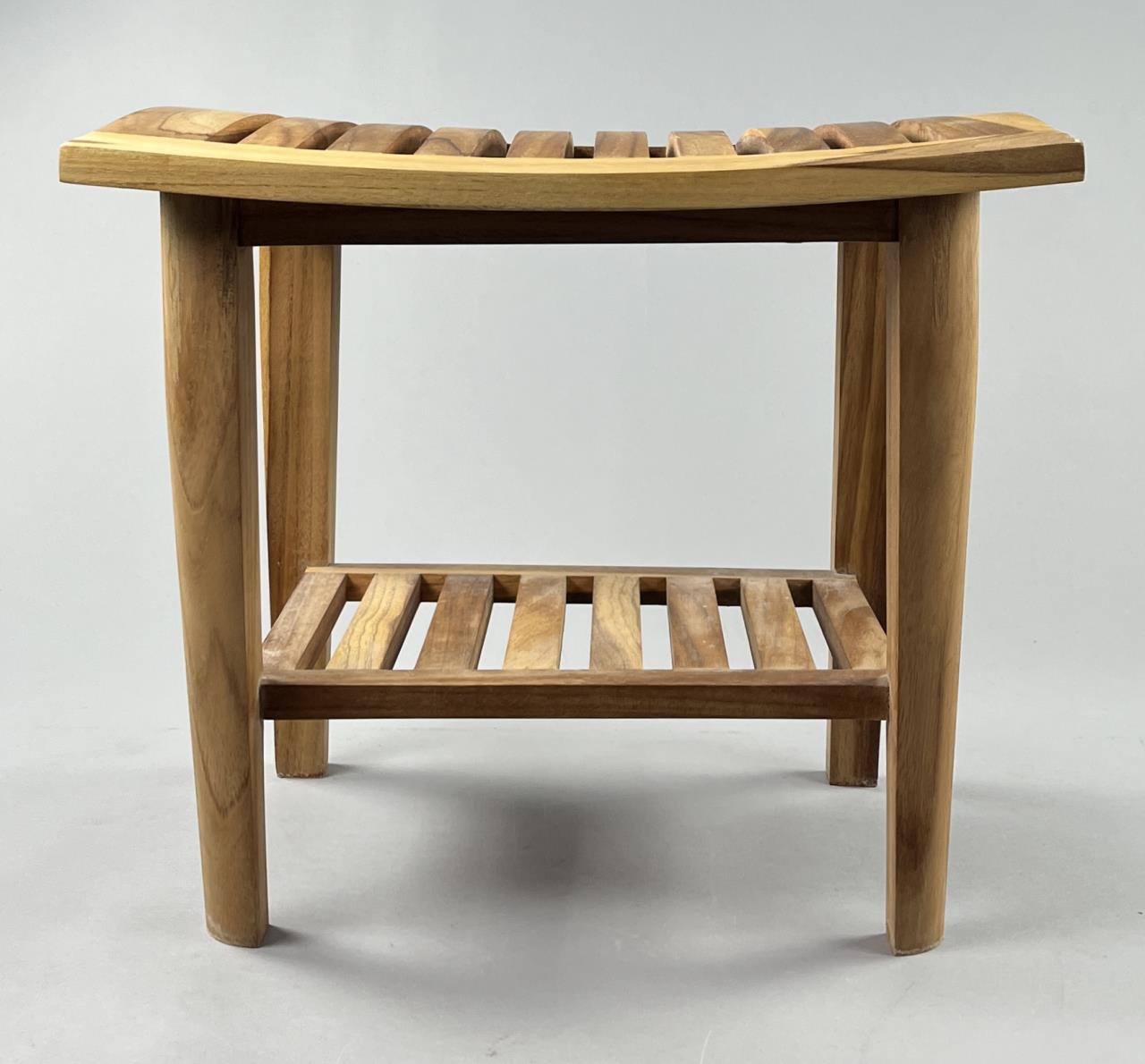 Spa, shower, vanity, seat or bench, teakwood, 19-1/8″ (W) x 16-1/16″ (D) x 17-1/8″ (H). CONDITION: Minor staining and discoloration to wood, commensurate with age and use. SHIPPING: Local pick-up or third party shipping only for this lot. Please see the Shipping Policy for information on suggested shippers. We recommend the Pak Mail Store of Battle Creek to assist you. Please contact the shipper of your choice for shipping estimates on this lot. Refer to the Shipping section in our full Terms and Conditions for all information on shipping.