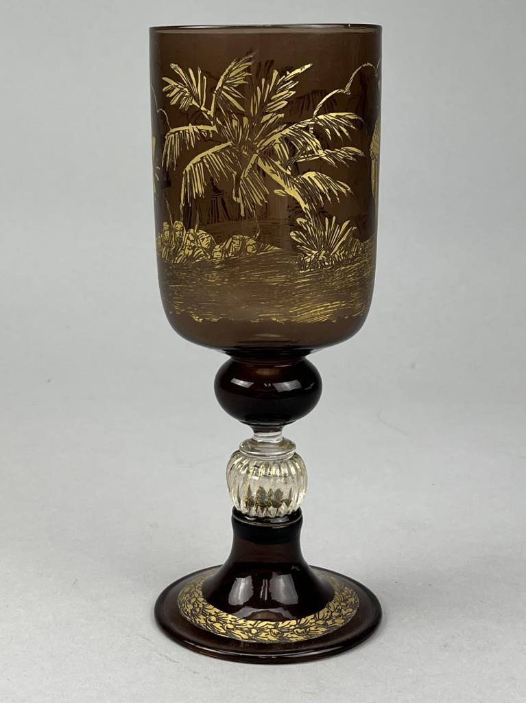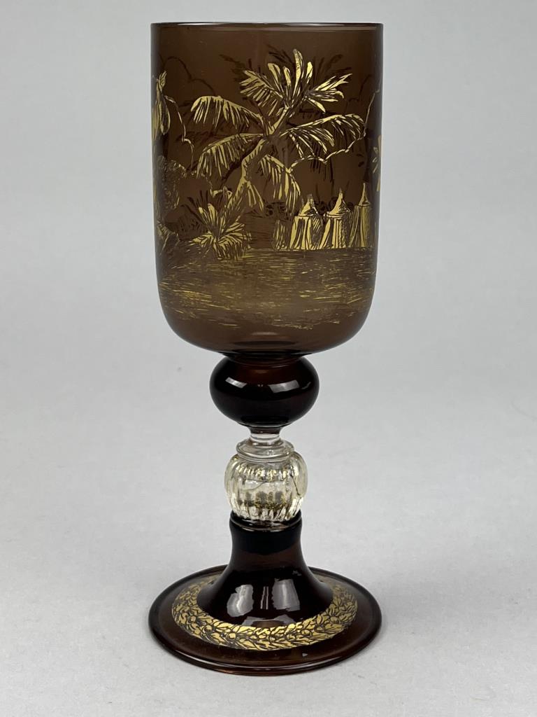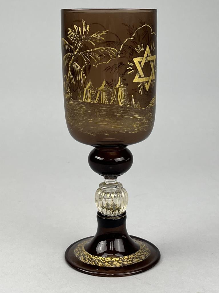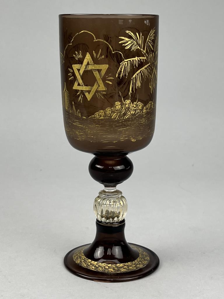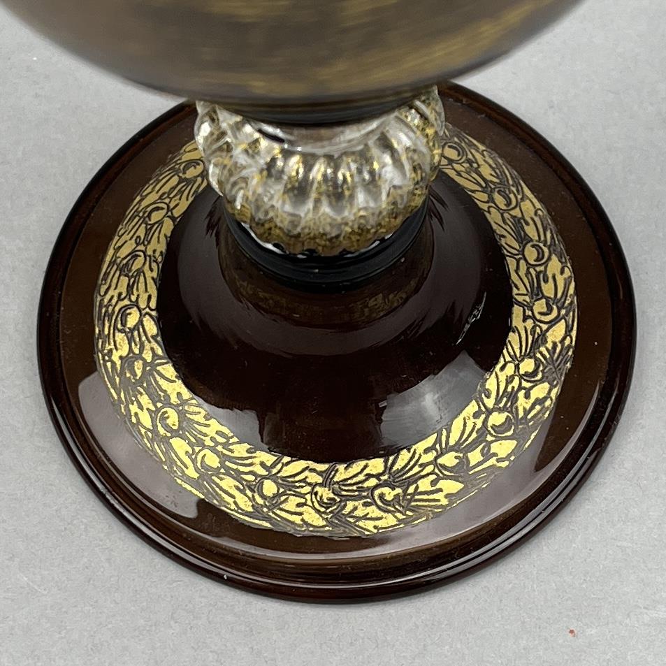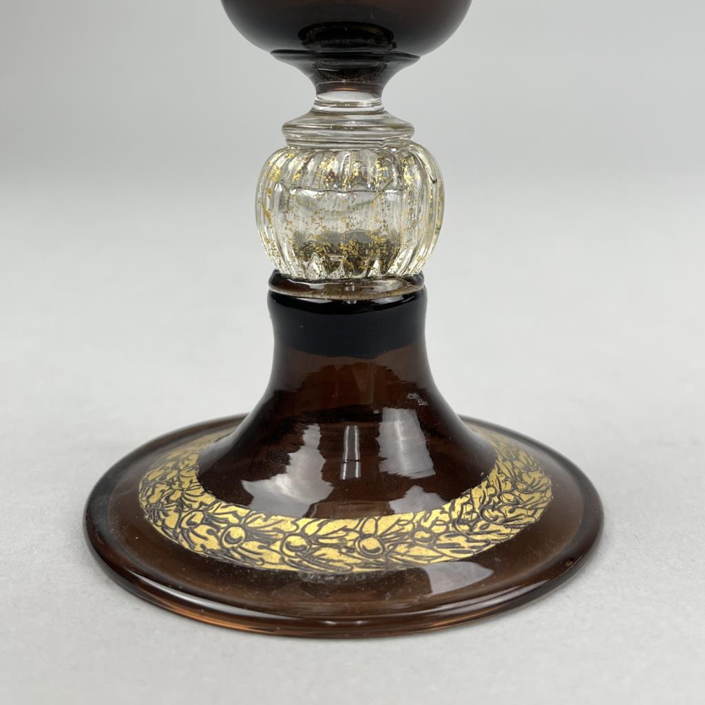 Venetian Murano (Italy) glass Judaica kiddush cup, hand blown with gilt decoration, circa 20th Century, 7-7/8″ (H). CONDITION: SHIPPING: In-House Shipping Available. Please read our Shipping Policies and Terms and Conditions