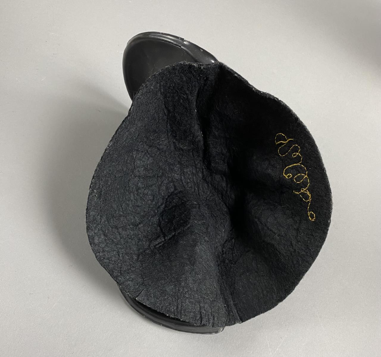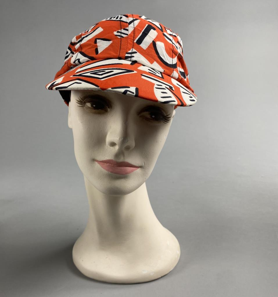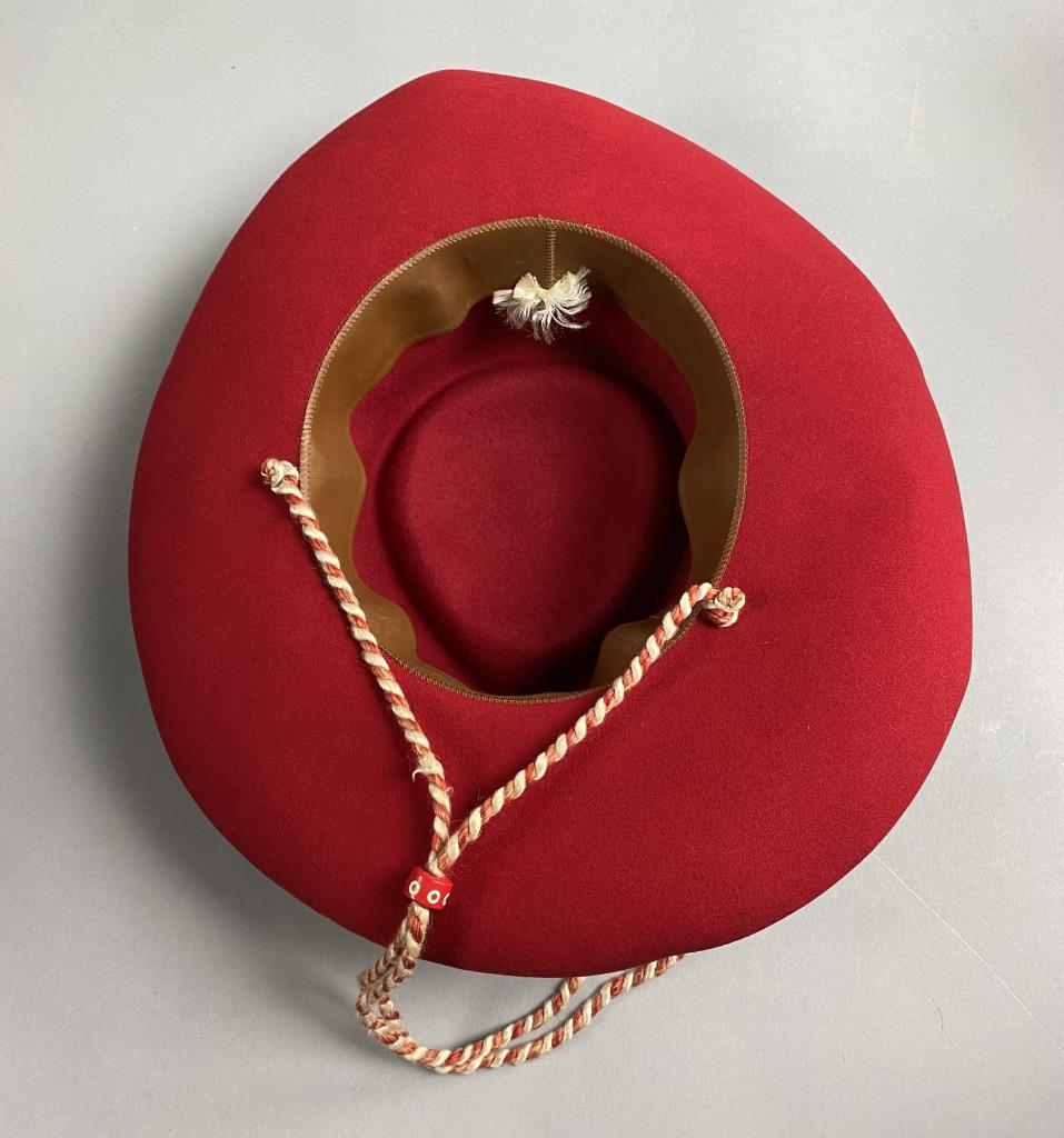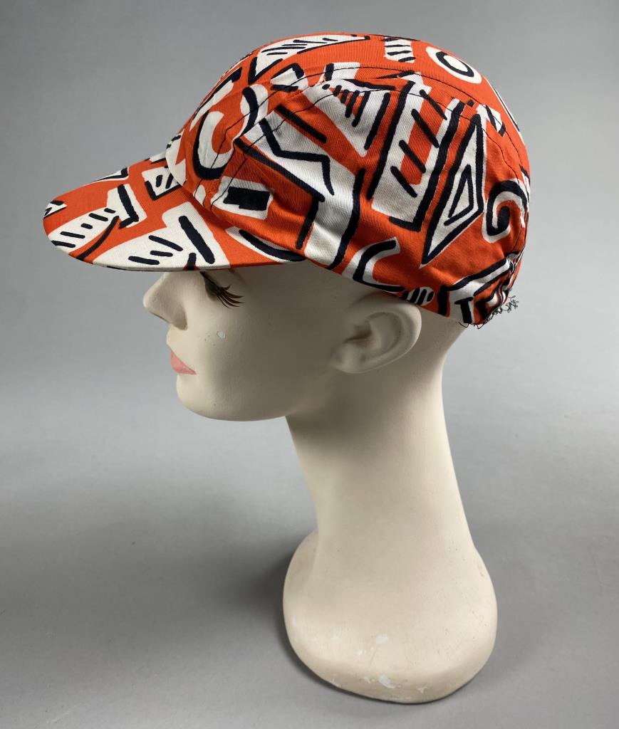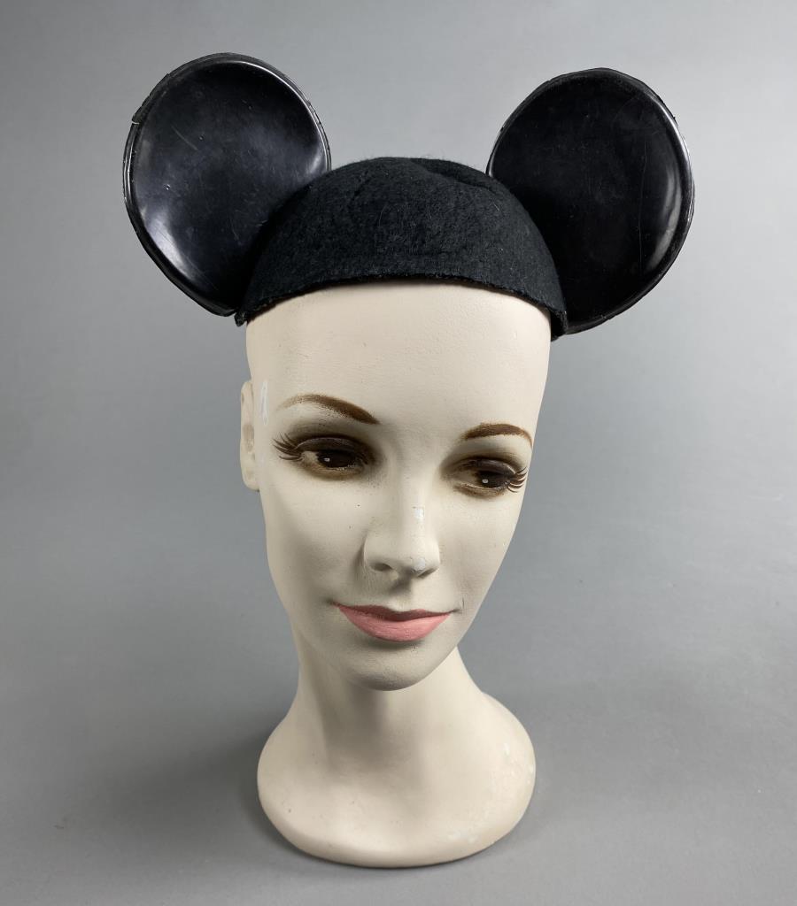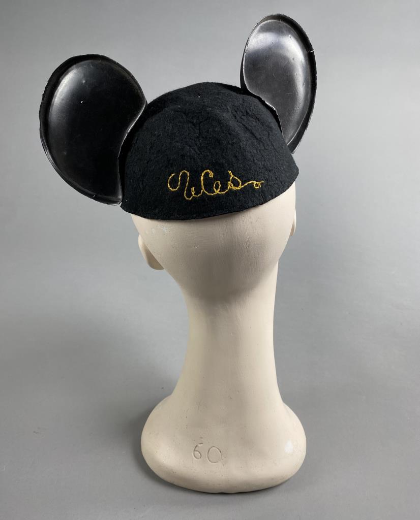 Four novelty hats and an oval Stetson box, a M*A*S*H hat, Disney Micky Mouse Ears with “Wes” embroidered, a red large brimmed cowboy hat with tie on strap, a Keith Haring style painter or biking cap, and an oval Stetson hatbox, 14-1/2″ x 13″ x 7″. CONDITION: One mouse ear is cracked at edge, as shown from both sides, SHIPPING: In-House Shipping Available. Please read our Shipping Policies and Terms and Conditions