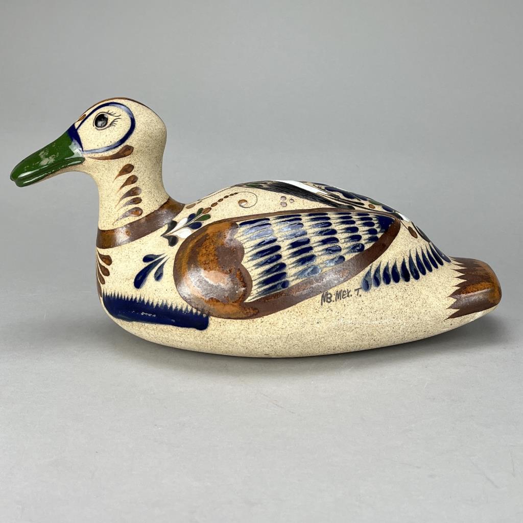Collection of hand painted pottery birds, the largest being approximately ” (H). CONDITION: The neck of one of the ducks appears to have been broken and repaired, please see last photo. SHIPPING: In-House Shipping Available. Please read our Shipping Policies and Terms and Conditions