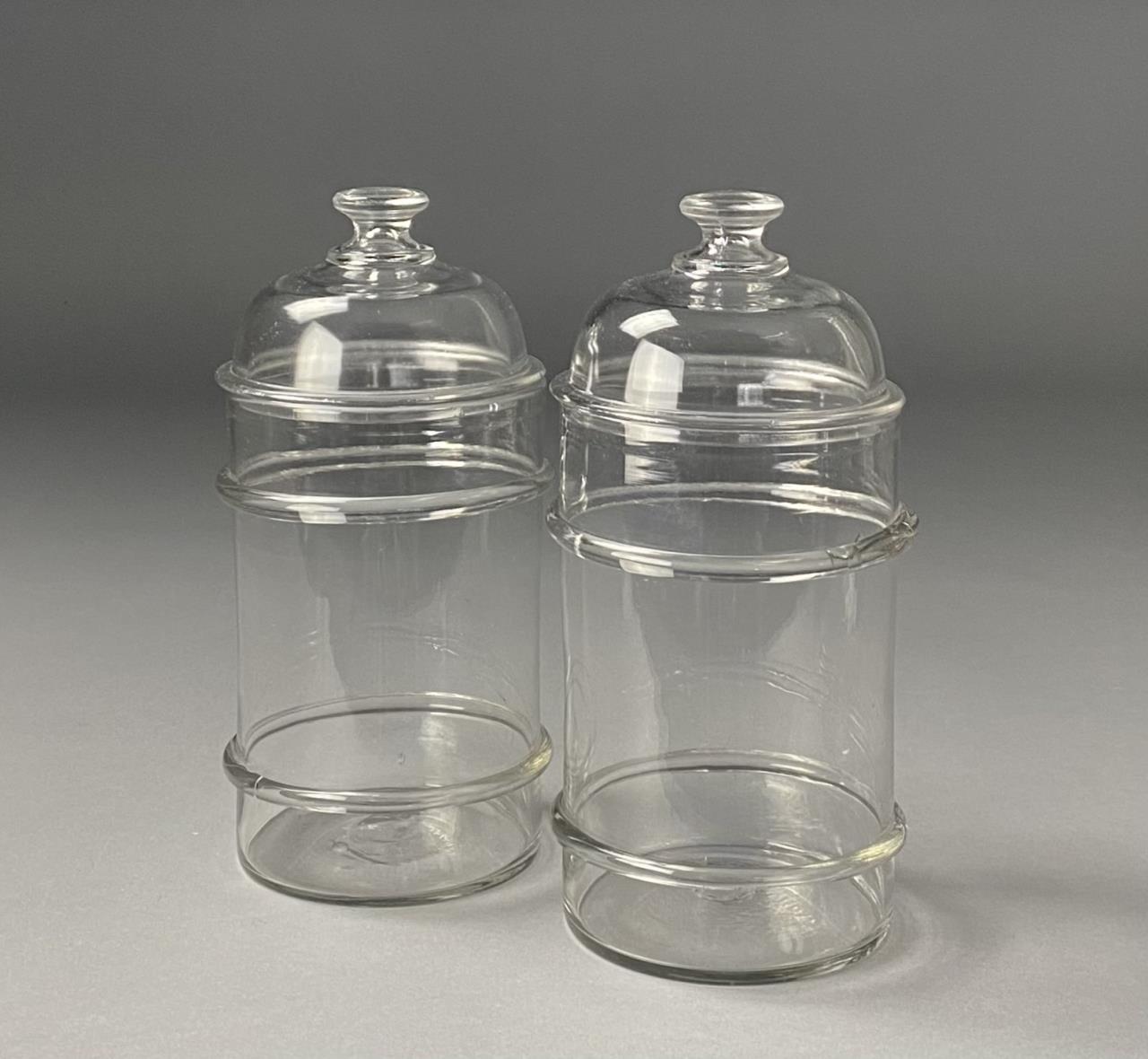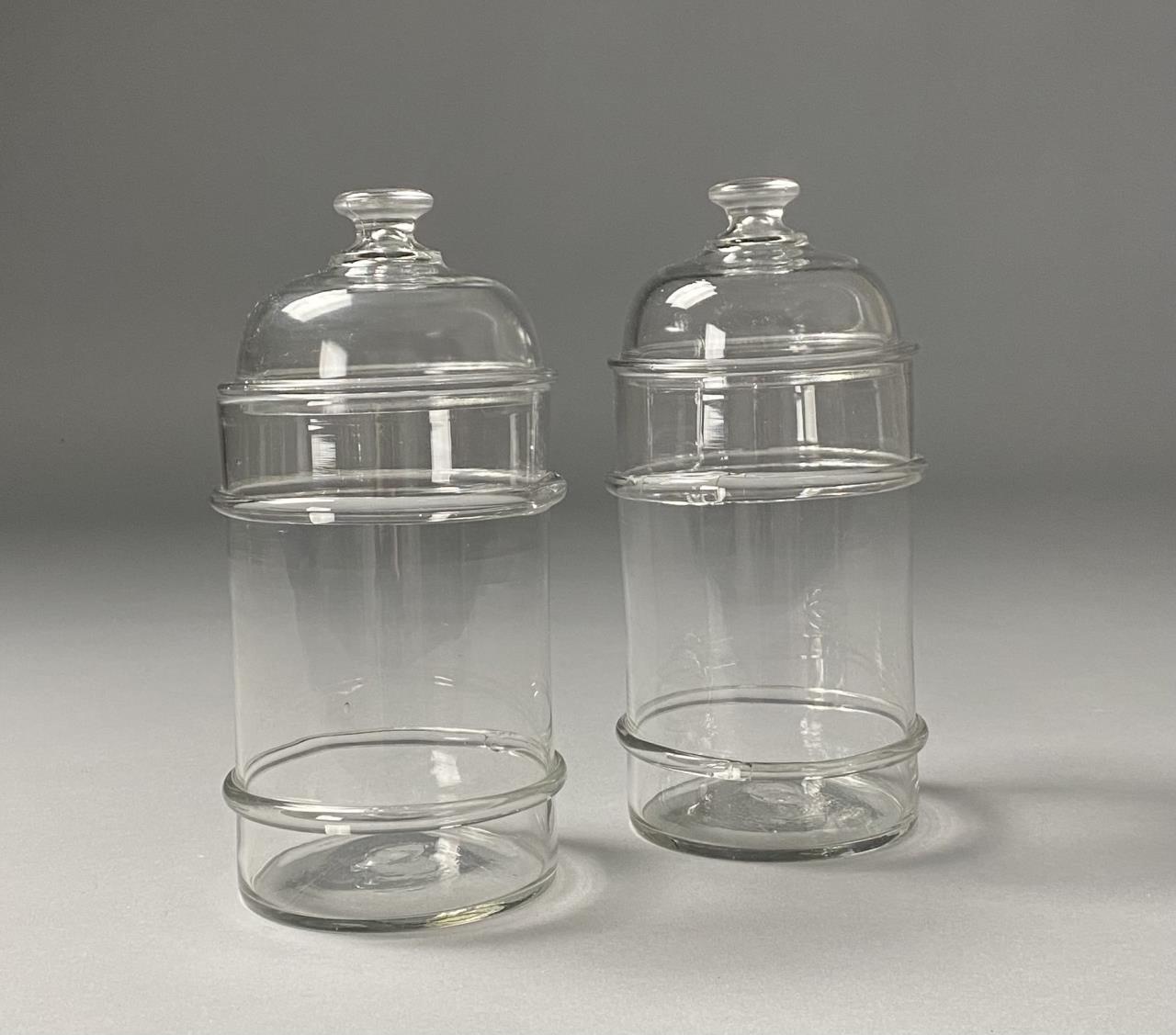 Two American Blown Glass Apothecary Jars & Lids