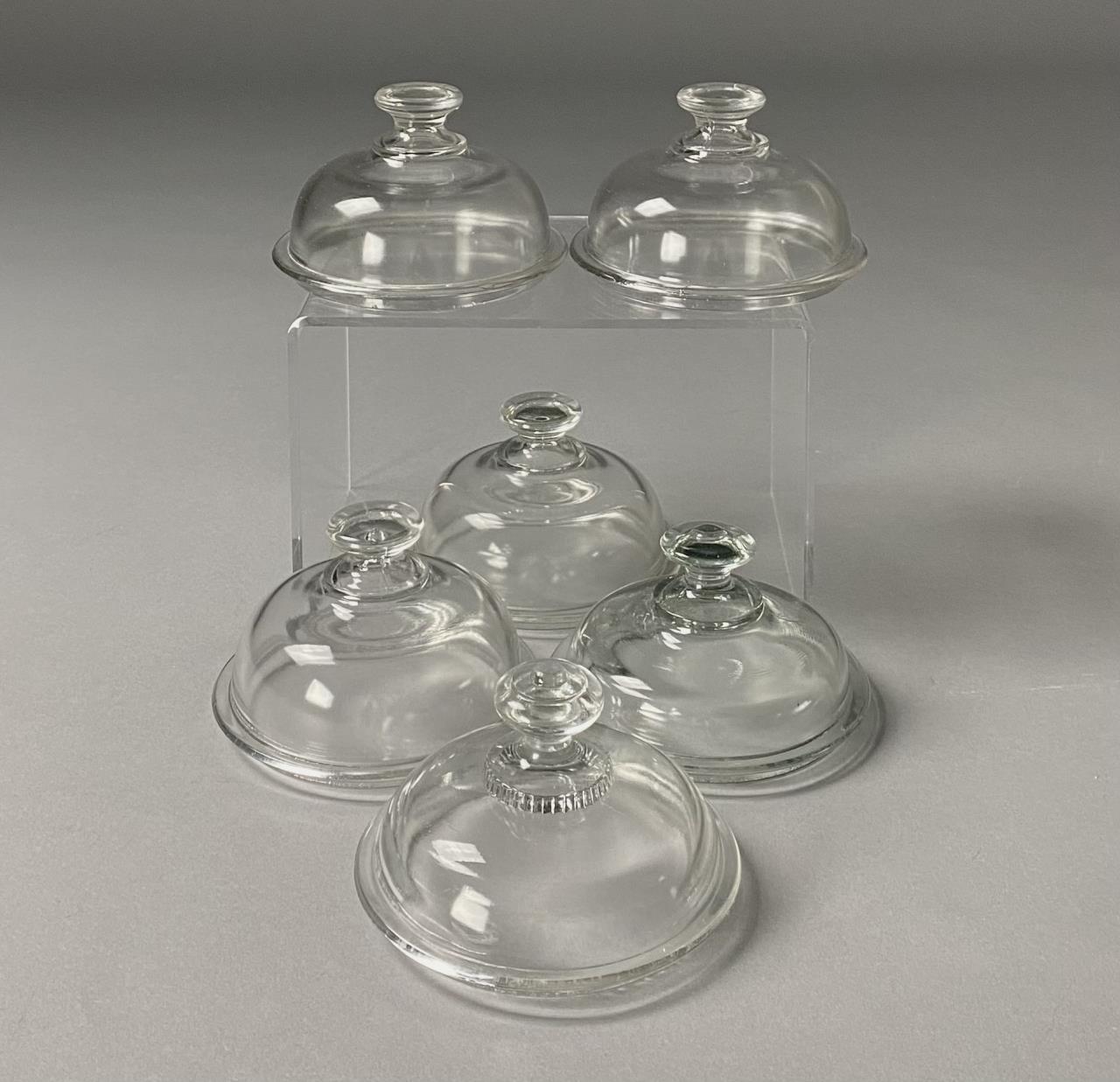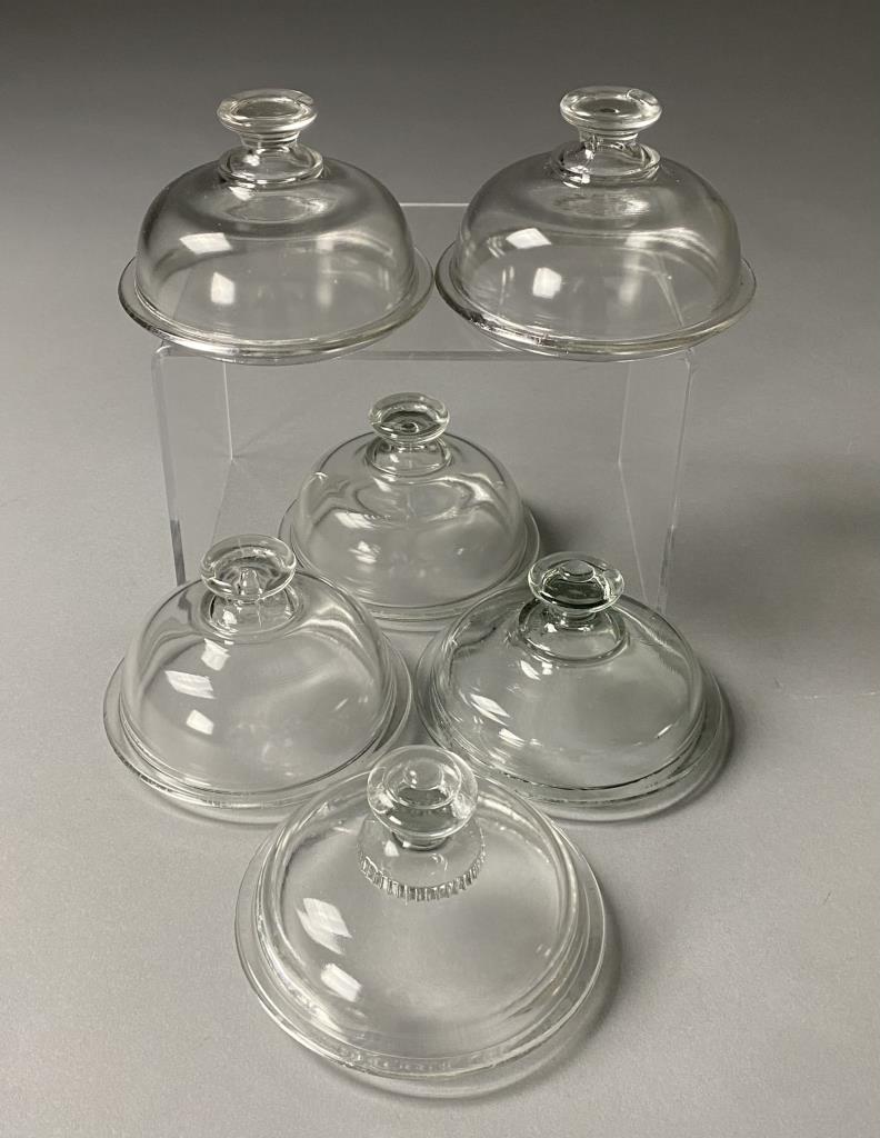 Six Clear Glass Mold Blown Lids for Apothecary Jar