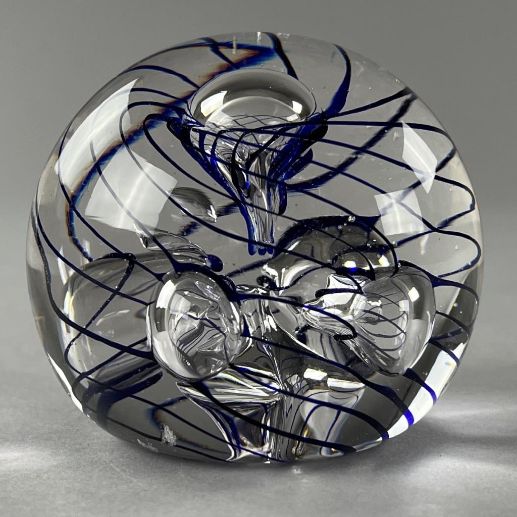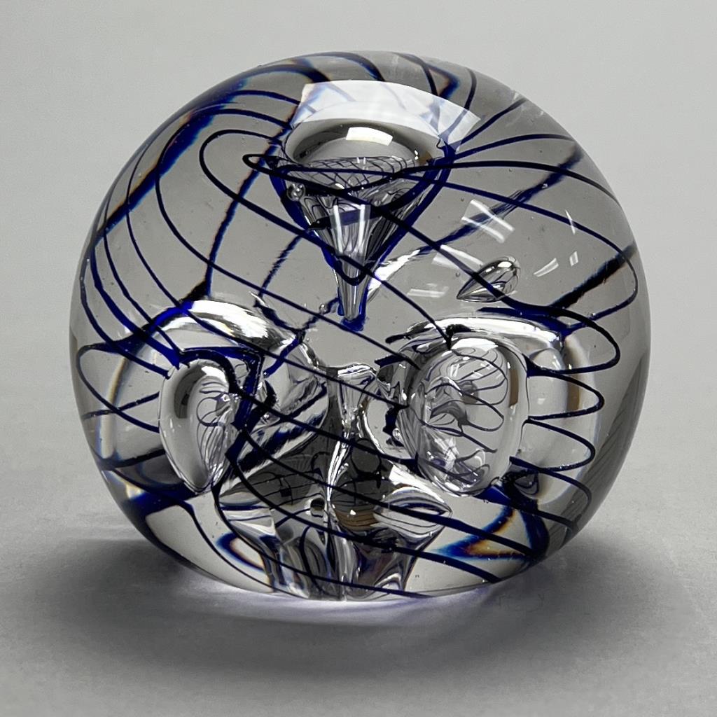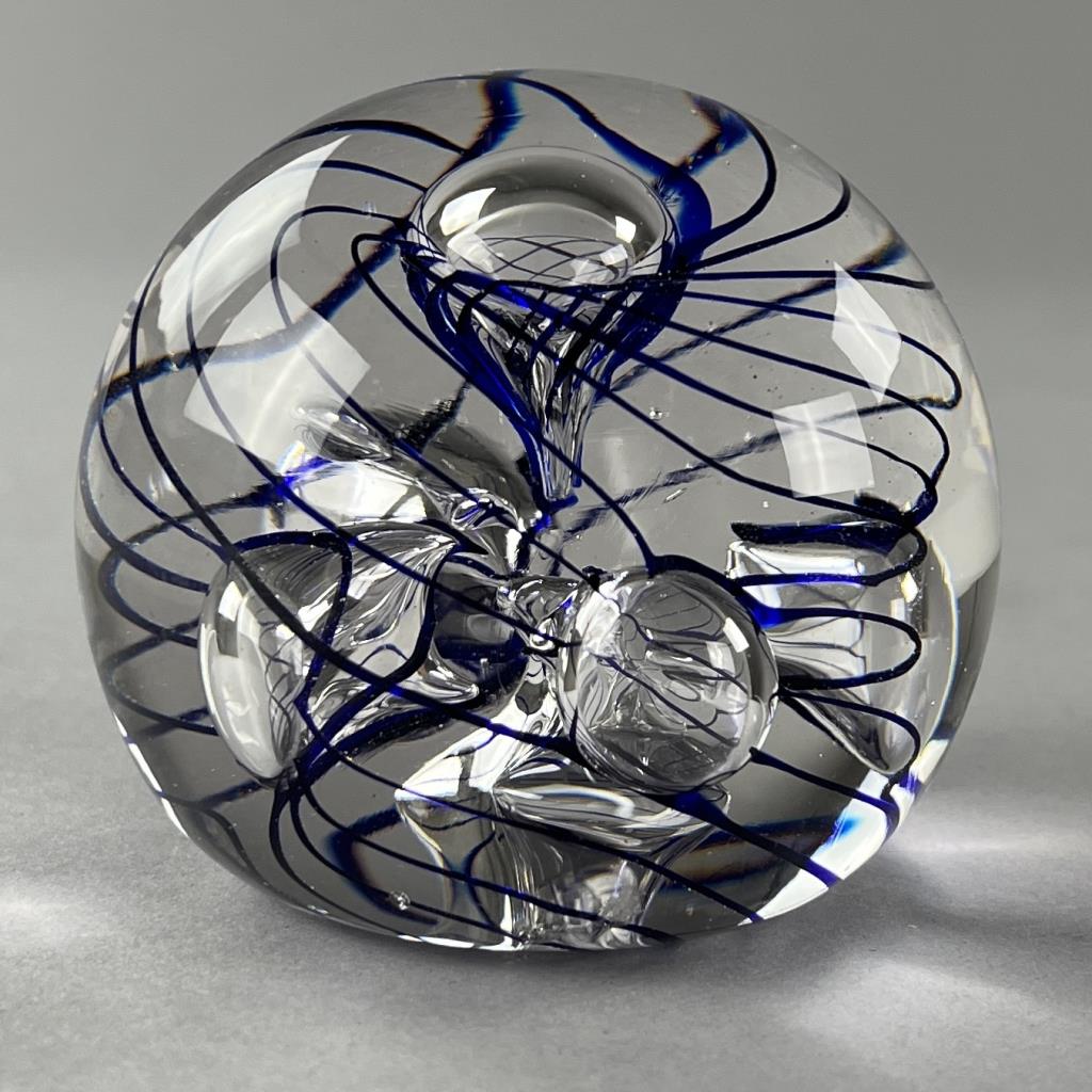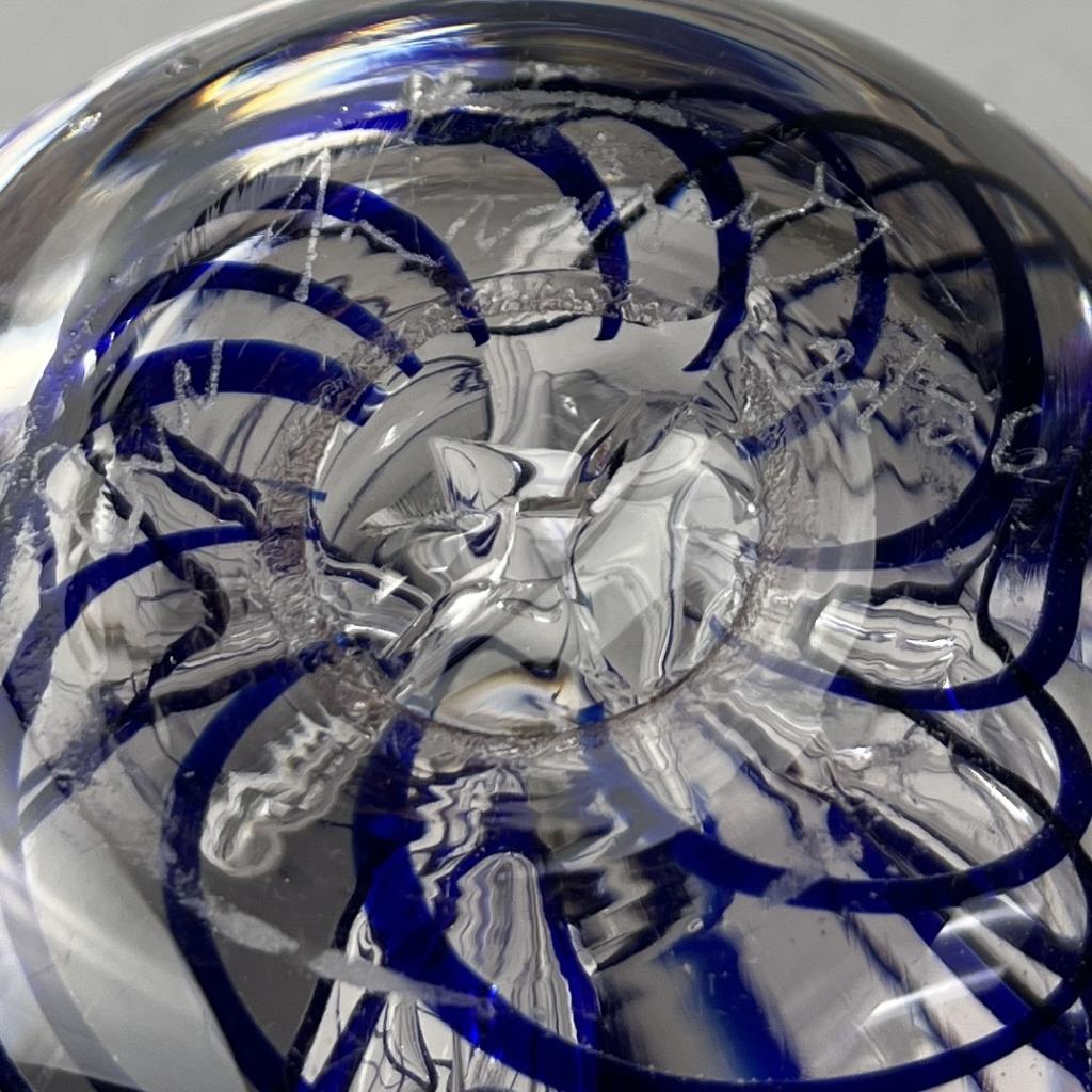 Eric Kvarnes Cobalt Swirl Art Glass Paperweight