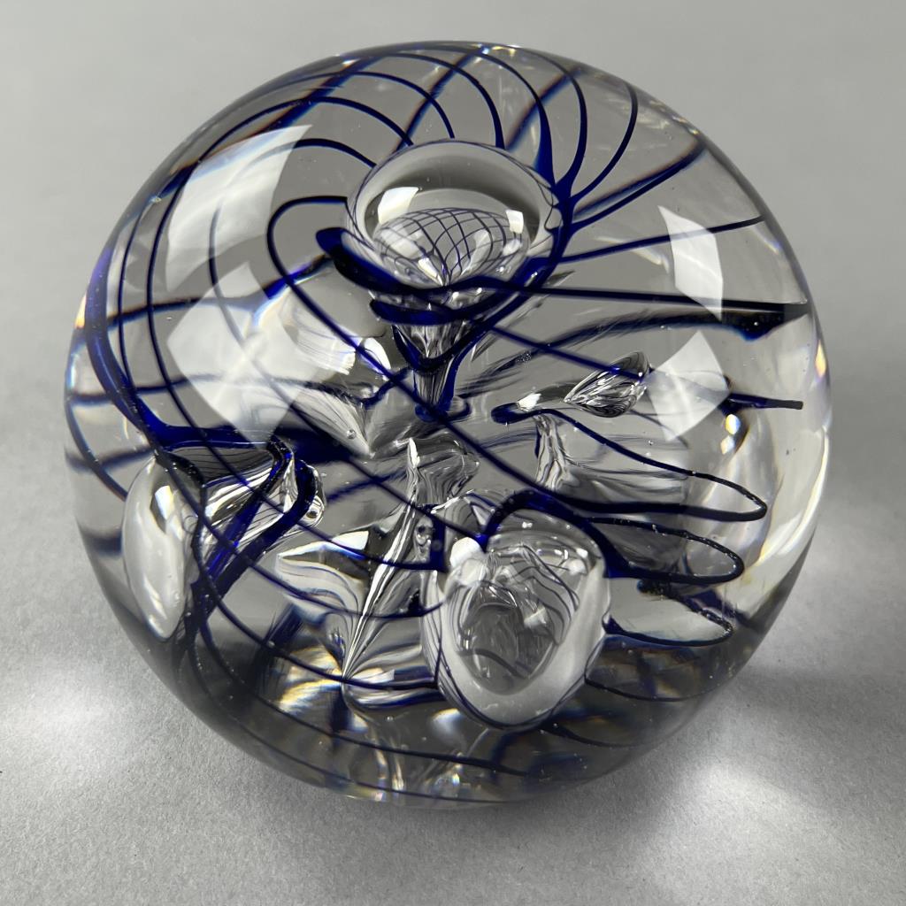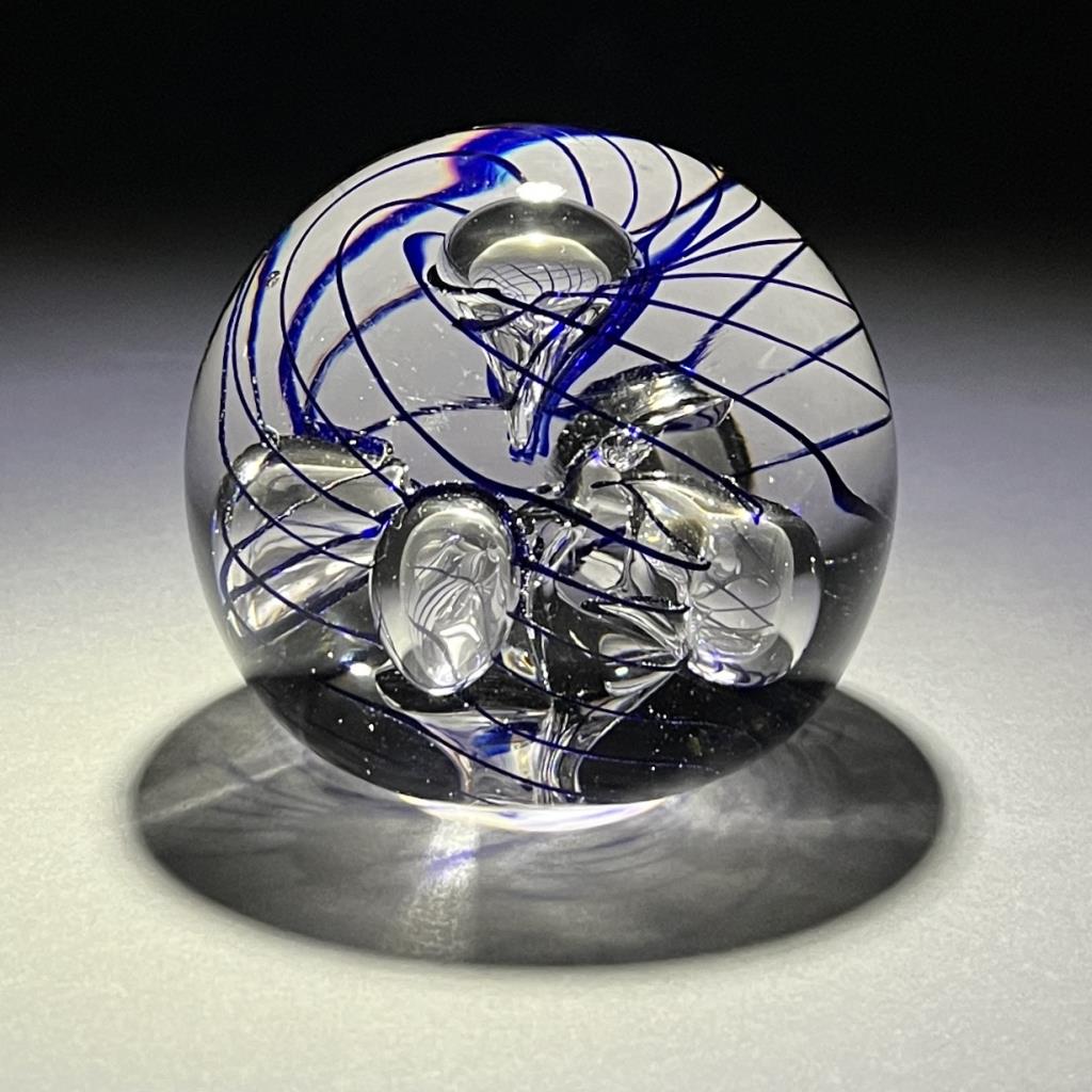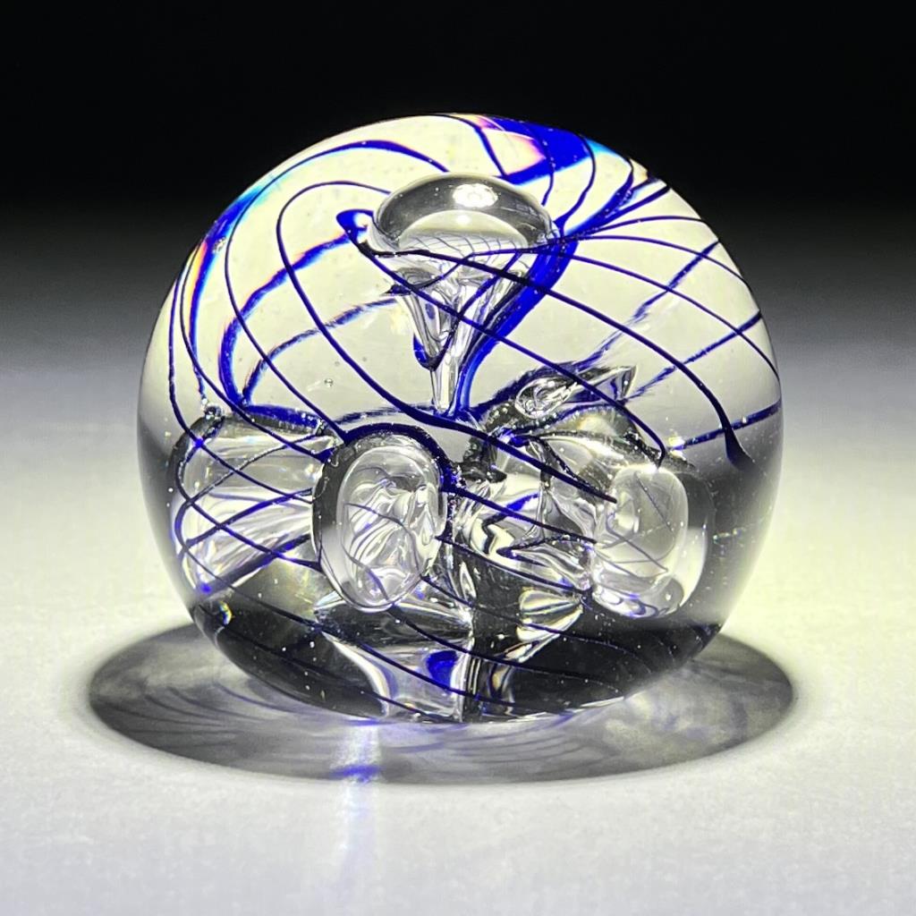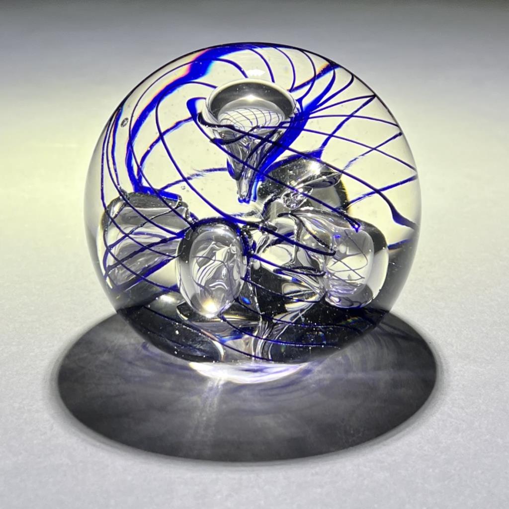 Eric Kvarnes Cobalt Swirl Art Glass Paperweight