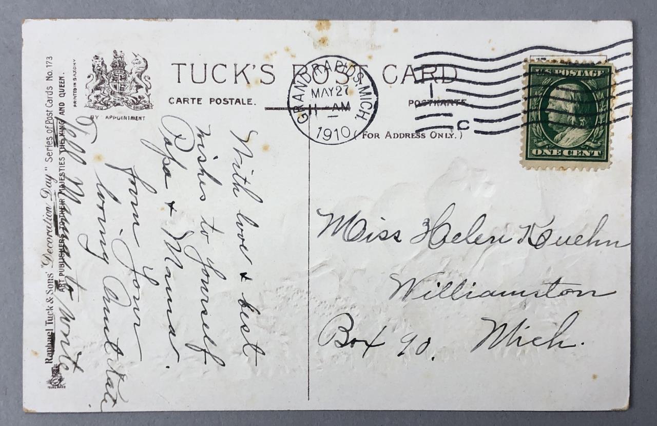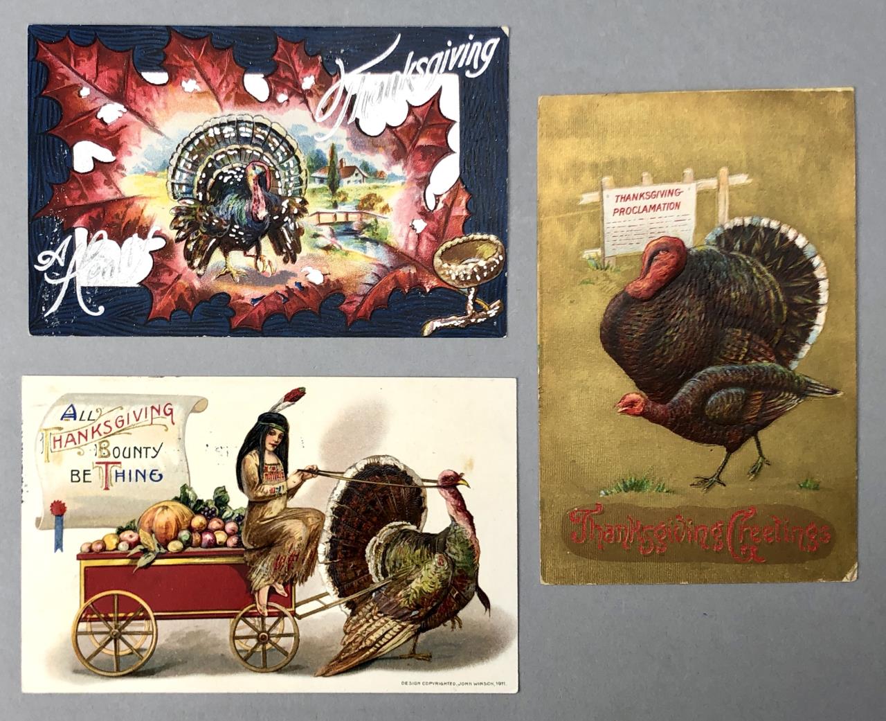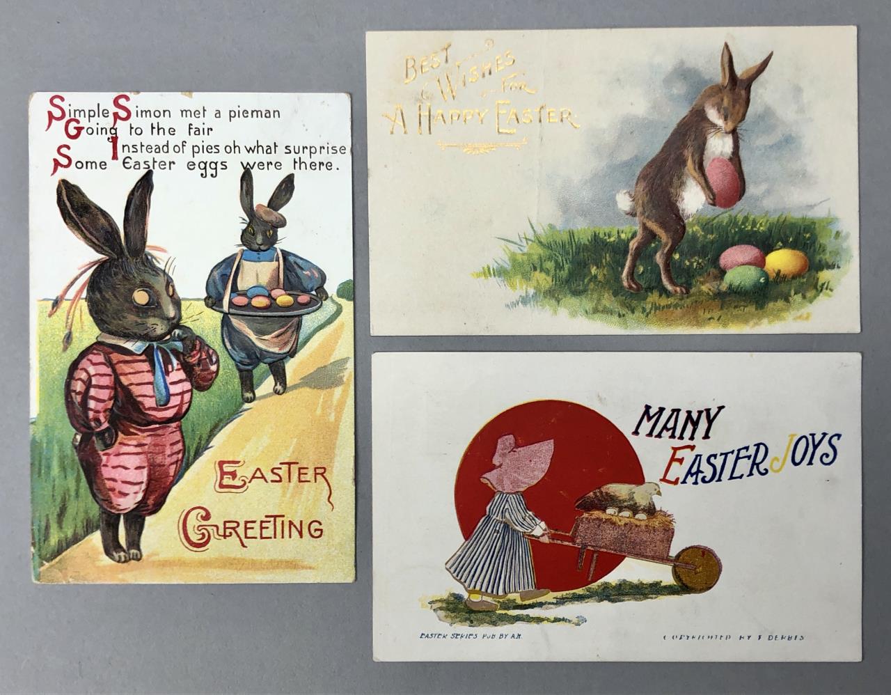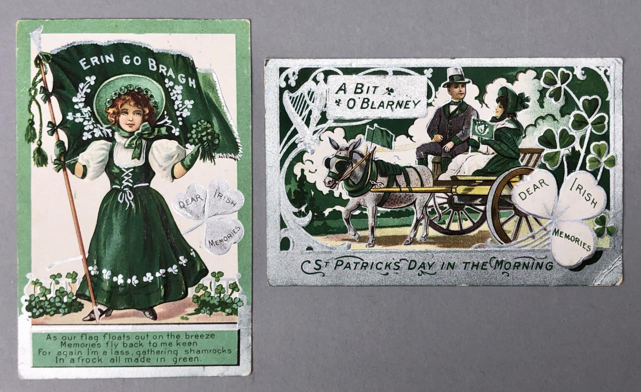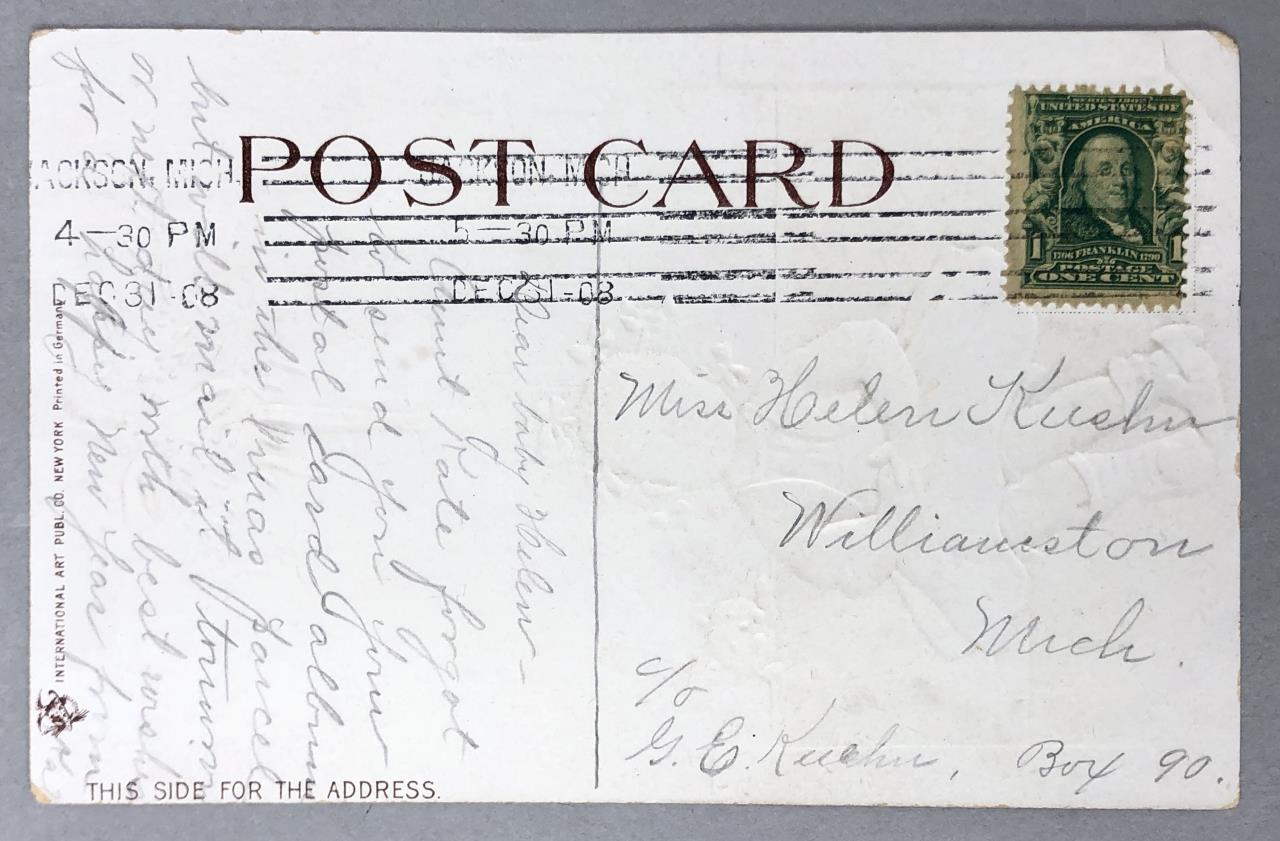Collection of 12 antique holiday postcards. Includes: (2) Saint Patrick’s Day; (3) Easter; (1) patriotic Memorial Day; (3) Thanksgiving; (2) Christmas with Santas; and (1) Black memorabilia or Black Americana New Year’s. Postmarked between 1908 and 1913 and from various Michigan cities and towns including Jackson, Williamston, Grand Rapids, and Lansing. CONDITION: Condition varies, please see photos. SHIPPING: In-House Shipping Available. Please read our Shipping Policies and Terms and Conditions
