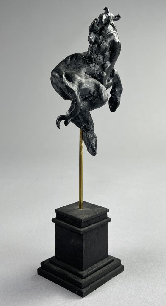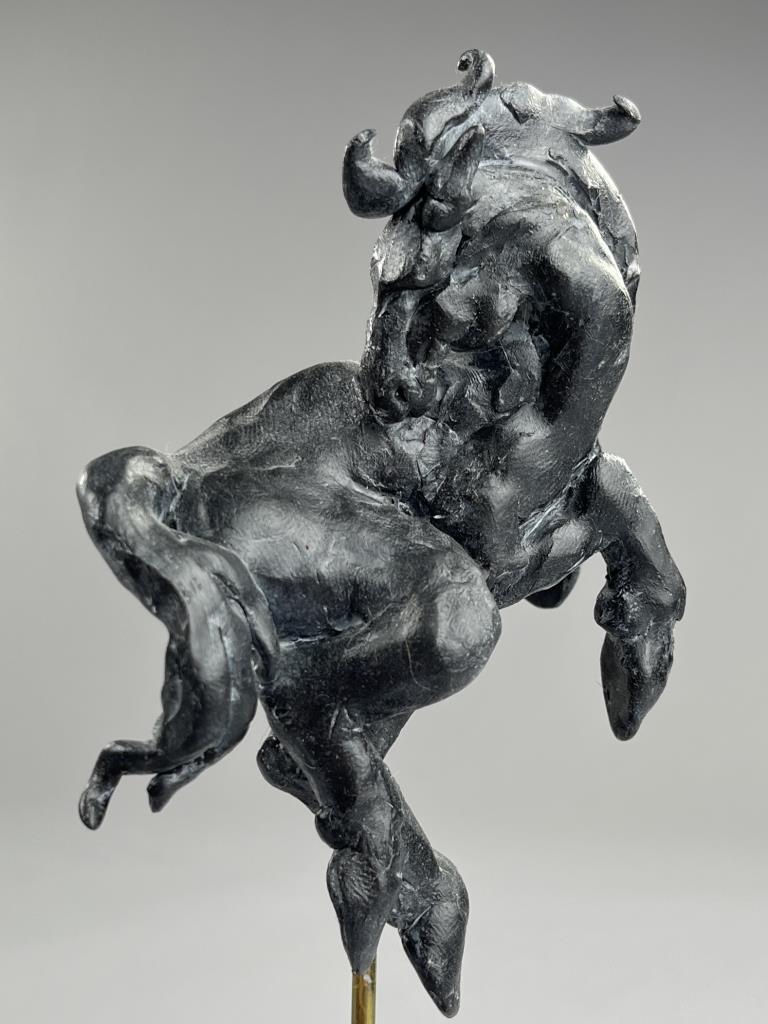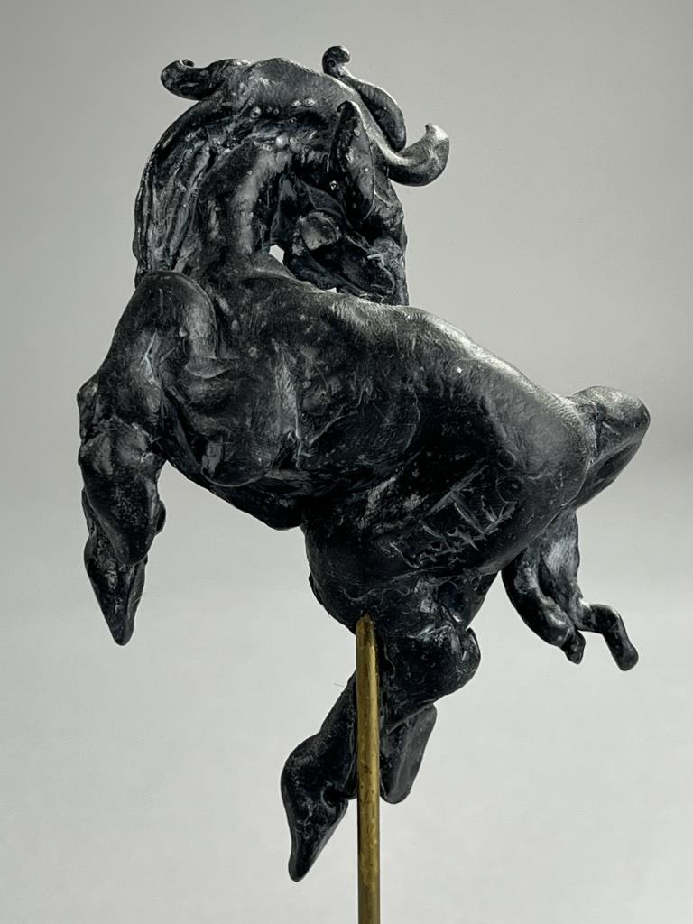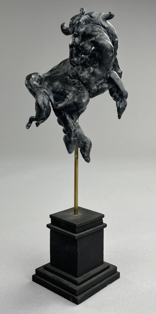 Campbell G. Paxton (American, b. 1948), “Horse Play” figure, “CGP” cartouche on back of figure as well as signed in manuscript on underside of base, polymer clay, fitted to a custom made black painted wood base, 8-1/2″ (H) with base. CONDITION: SHIPPING: In-House Shipping Available. Please read our Shipping Policies and Terms and Conditions