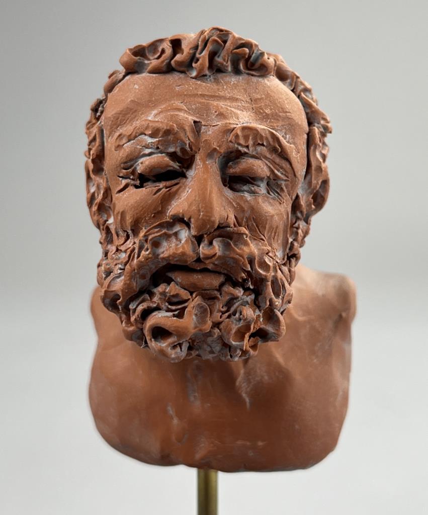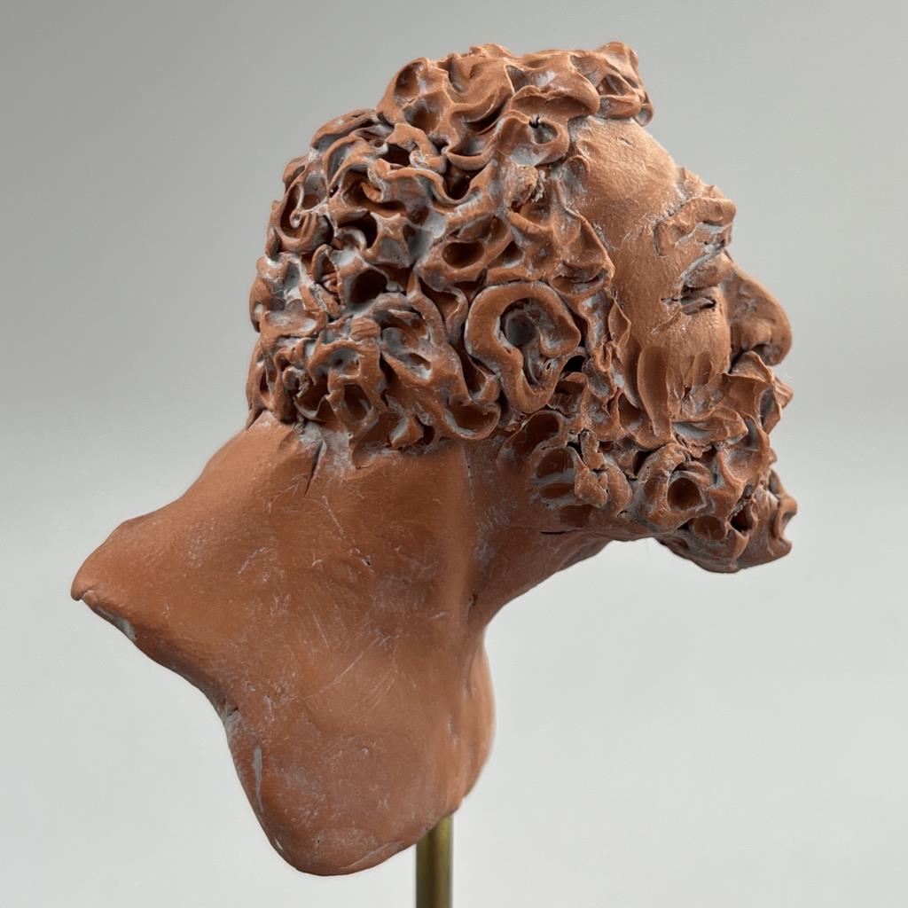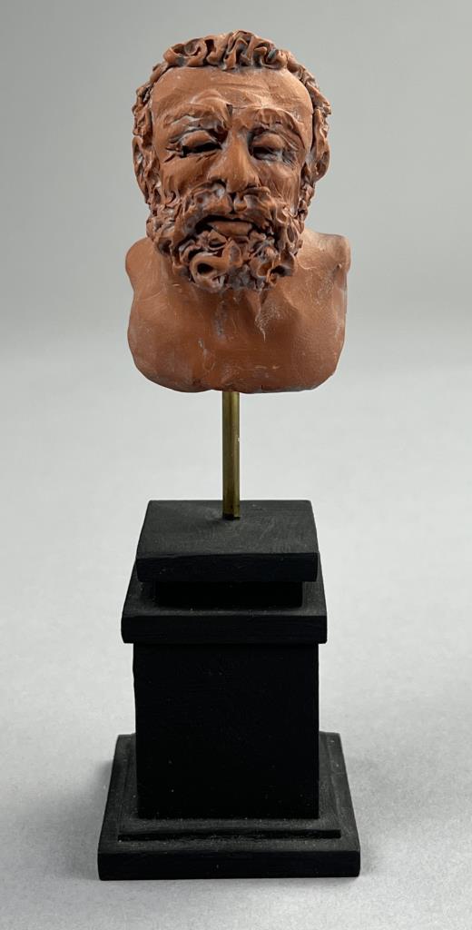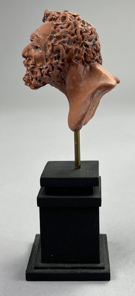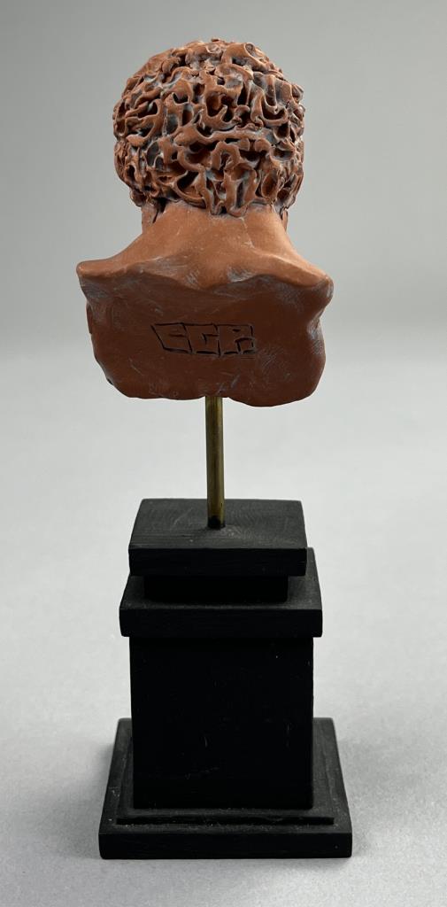 Campbell G. Paxton (American, b. 1948), “Flemish Hercules” figure in red, “CGP” cartouche on back of figure as well as signed in manuscript on underside of base, polymer clay, fitted to a custom made black painted wood base, 5-1/2″ (H) with base. CONDITION: SHIPPING: In-House Shipping Available. Please read our Shipping Policies and Terms and Conditions