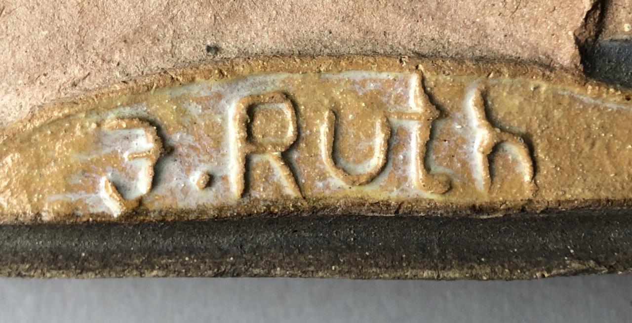 Ruth Faktorowicz (also known as Ruth Faktor) (Israeli, b. 1937), bas-relief wall tile, or wall plaque, depicting three figures, possibly mother, father, and child, signed in relief lower center, purchased at Saper Galleries (East Lansing, Michigan) circa early 2010s, approximately 8-3/16″ x 5-5/8″ x 1-1/8″. CONDITION: SHIPPING: In-House Shipping Available. Please read our Shipping Policies and Terms and Conditions