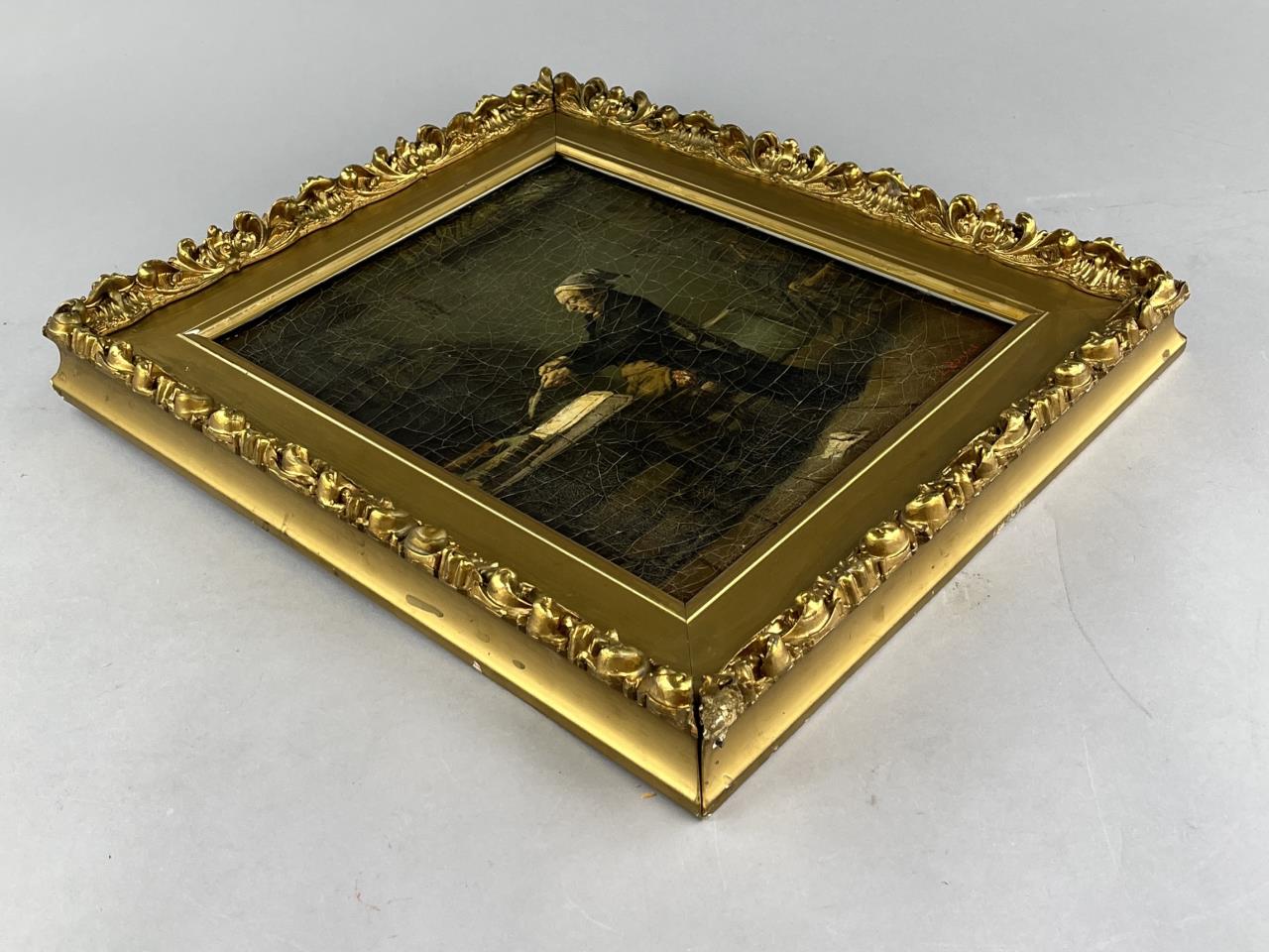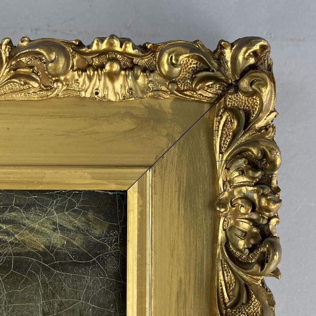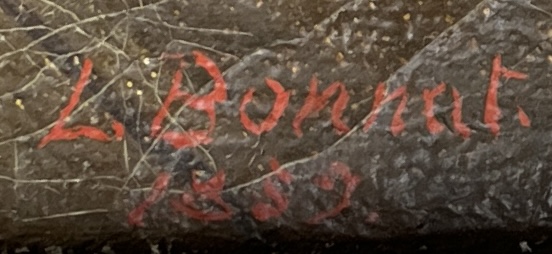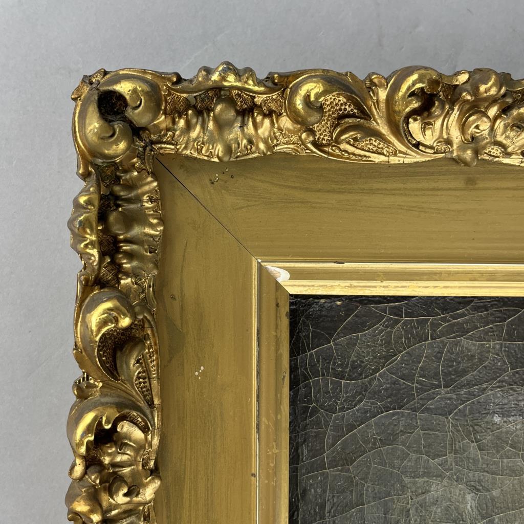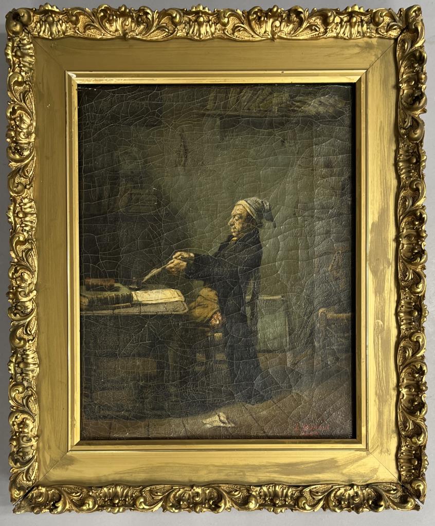 Copy of Franz Meert’s (Belgian, 1836-1896), “The Village Secretary” (also known as “The Old Attorney”), signed lower right “L. Bonnat 1859″, oil painting on stretched canvas, in a gilt gesso and wood frame measuring approximately 21-1/2″ x 17-5/8”. CONDITION: Not examined out of frame. Overall craquelure to painting. Minor damage to frame, particularly at corners, with some evidence of older restoration efforts. SHIPPING: Local pick-up or third party shipping only for this lot. Please see the Shipping Policy for information on suggested shippers. We recommend the Pak Mail Store of Battle Creek to assist you. Please contact the shipper of your choice for shipping estimates on this lot. Refer to the Shipping section in our full Terms and Conditions for all information on shipping.