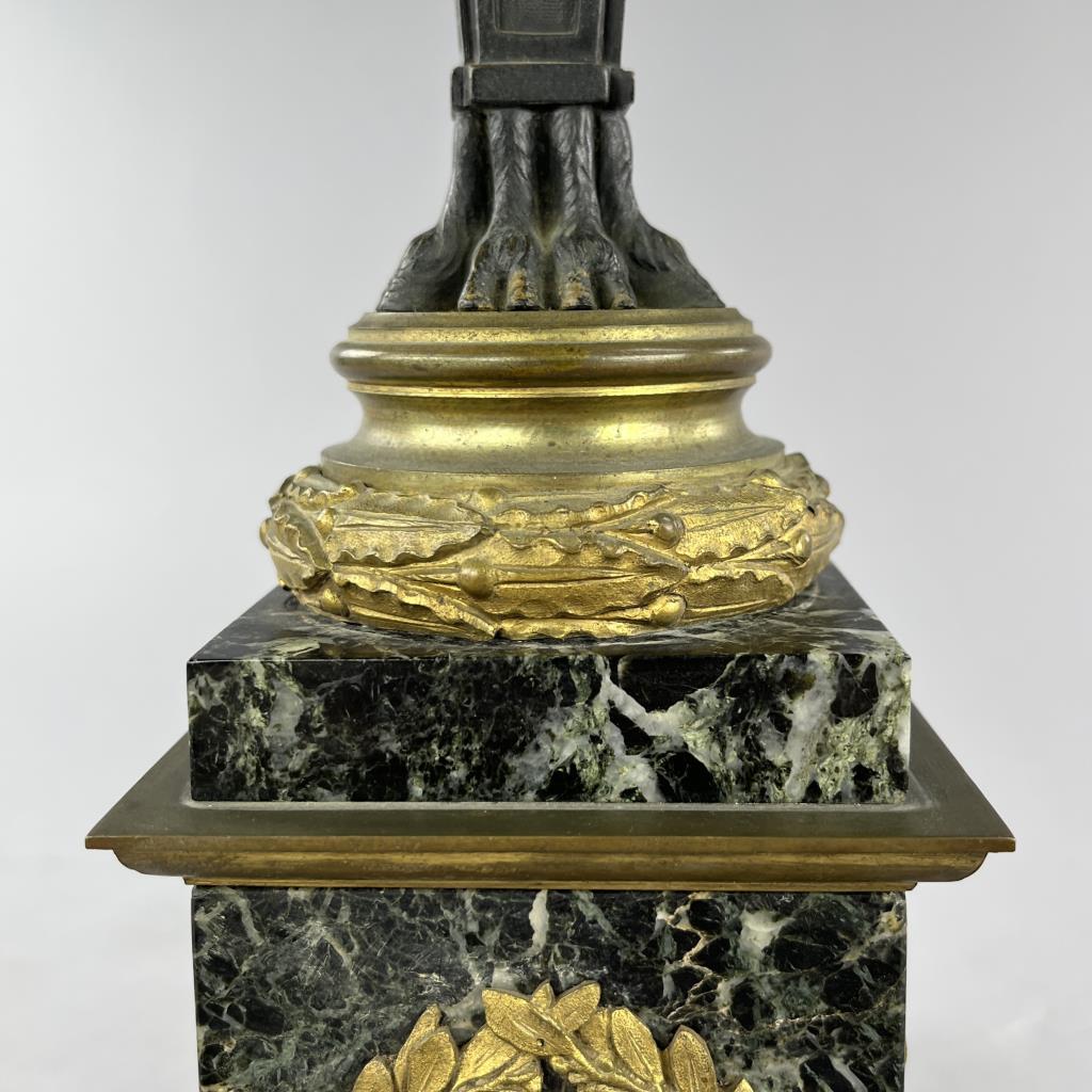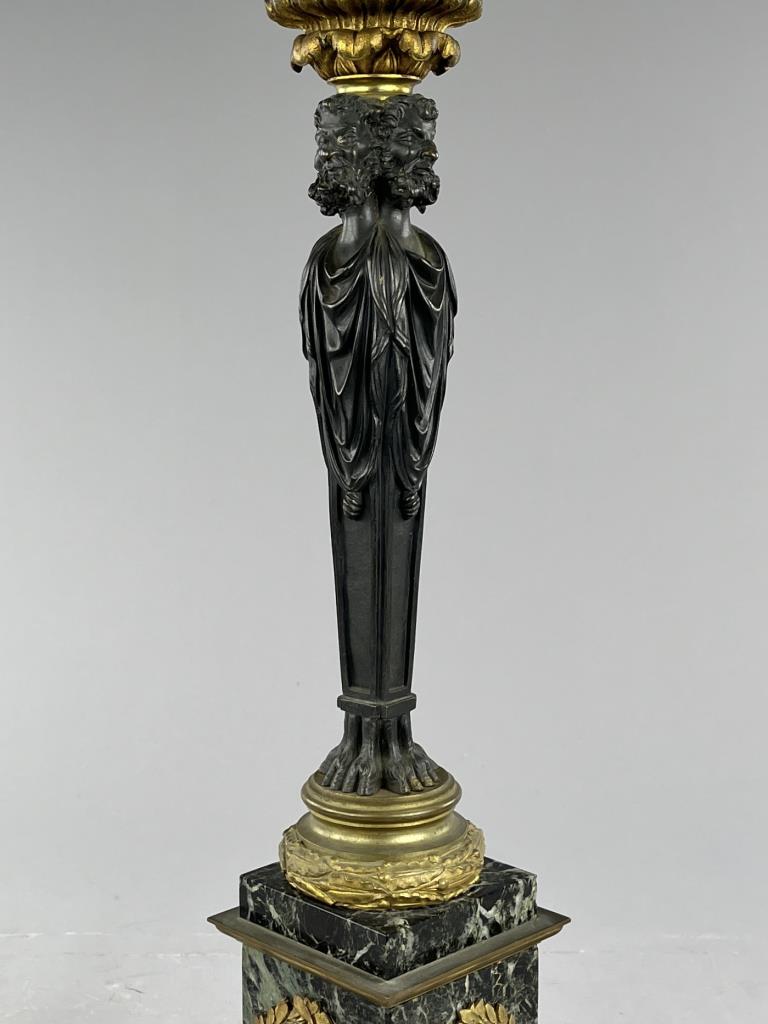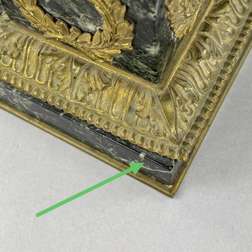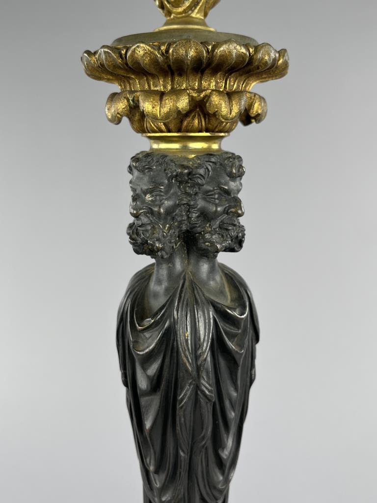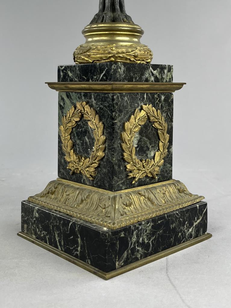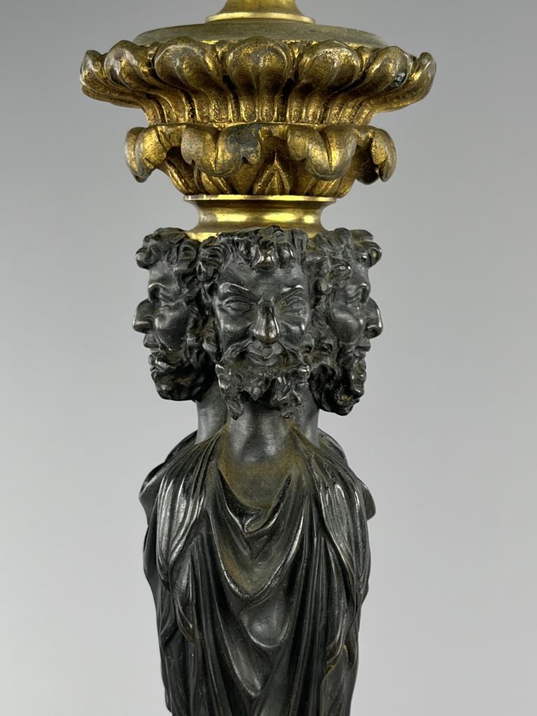 Neoclassical style table lamp, with Atlantis figures and laurel wreaths, marble and bronze dore, circa early to mid 20th Century, 36″ to top finial CONDITION: Working at time of cataloguing. Some elements of the lamp are loose. SHIPPING: Local pick-up or third party shipping only for this lot. Please see the Shipping Policy for information on suggested shippers. We recommend the Pak Mail Store of Battle Creek to assist you. Please contact the shipper of your choice for shipping estimates on this lot. Refer to the Shipping section in our full Terms and Conditions for all information on shipping.