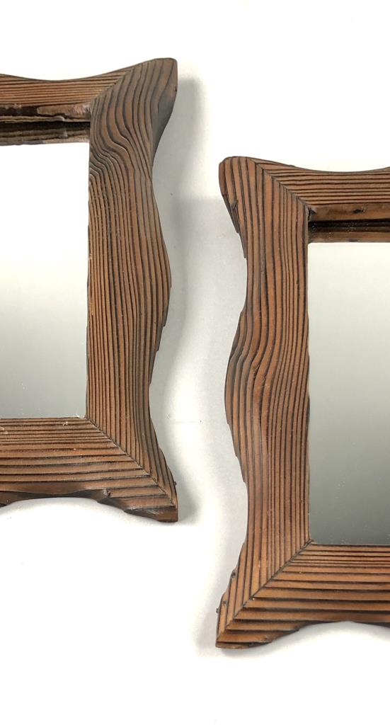 Pair of Yakisugi, finished in the pika-pika style, also known as Shou Sugi Ban, hand made frames with mirrors, charred Japanese sugi cedar, 20th Century, each approximately 14-3/8″ x 12-1/2″. CONDITION: Please Refer to Photos and Description for Condition. SHIPPING: In-House Shipping is available on this item. PLEASE read our Shipping Policies and our full Terms and Conditions prior to bidding.