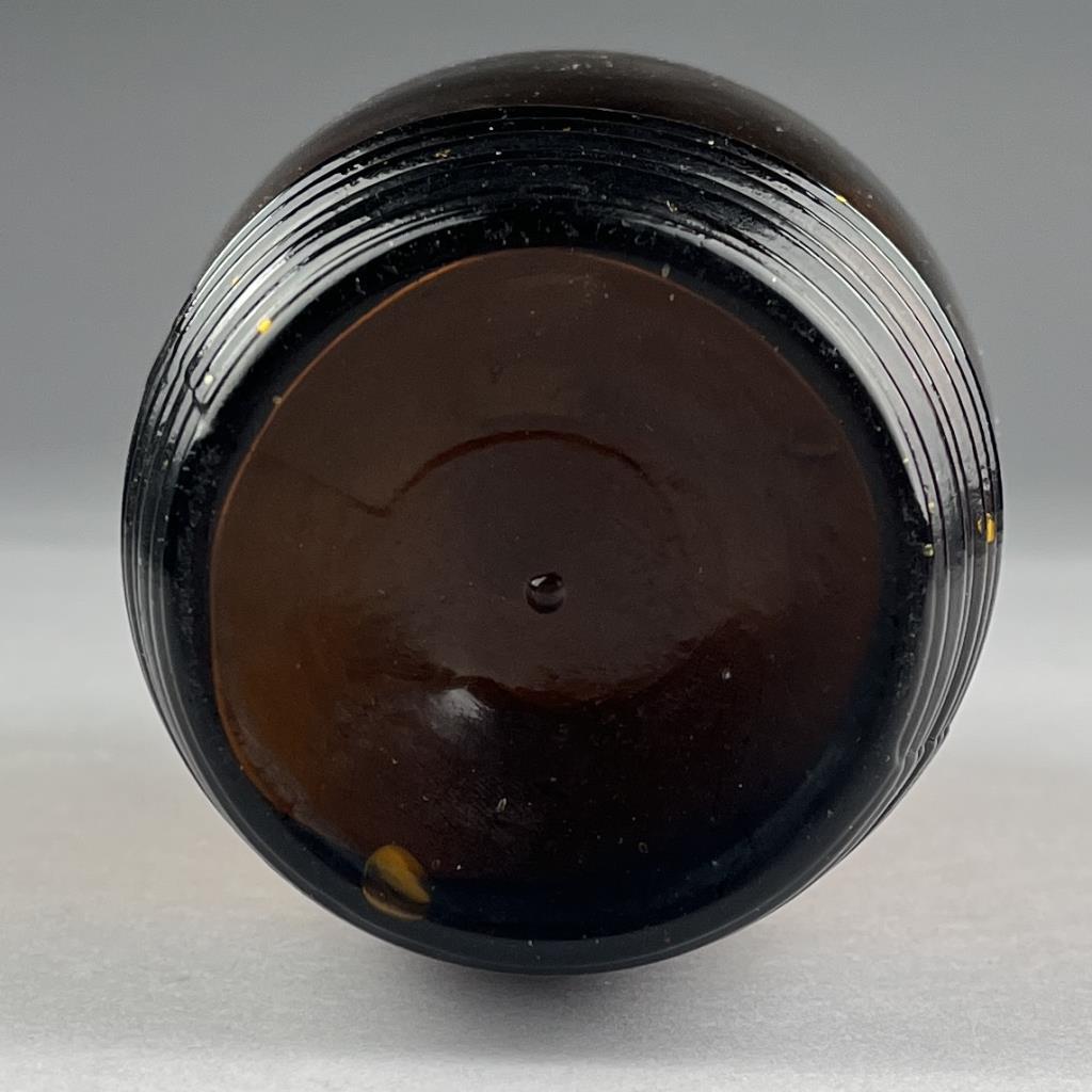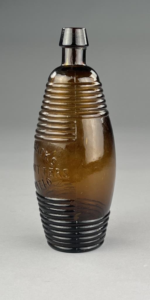 Dr. C.W. Robacks (Cincinnati, Ohio) stomach bitters bottle, figural ringed barrel shaped, amber glass with an applied lip, circa 1865-1870, 10″ (H). CONDITION: Please Refer to Photos and Description for Condition. SHIPPING: In-House Shipping is available on this item. PLEASE read our Shipping Policies and our full Terms and Conditions prior to bidding.
