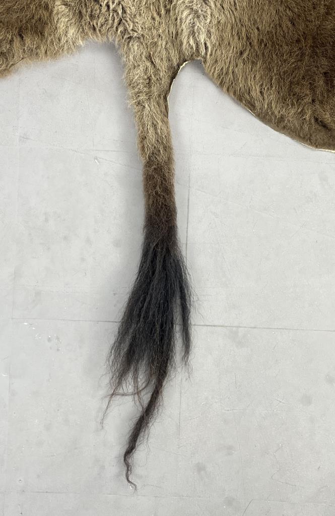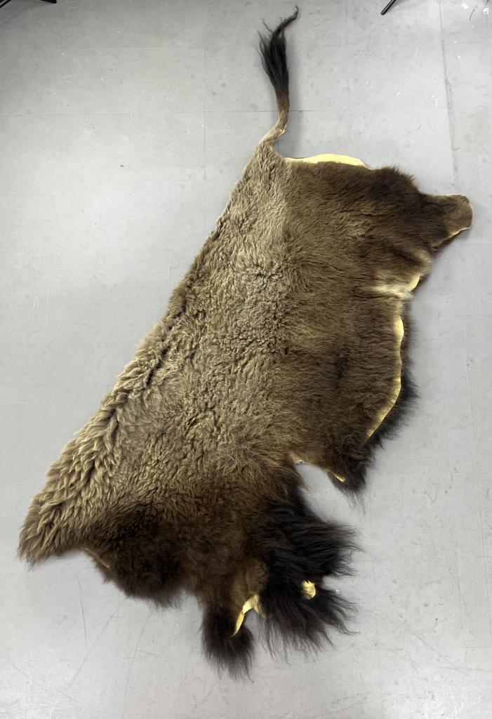 American Great Plains Buffalo hide rug, from Montana, approximately 8′ 6″ x 7′. CONDITION: Please Refer to Photos and Description for Condition. SHIPPING: In-House Shipping is available on this item. PLEASE read our Shipping Policies and our full Terms and Conditions prior to bidding.
