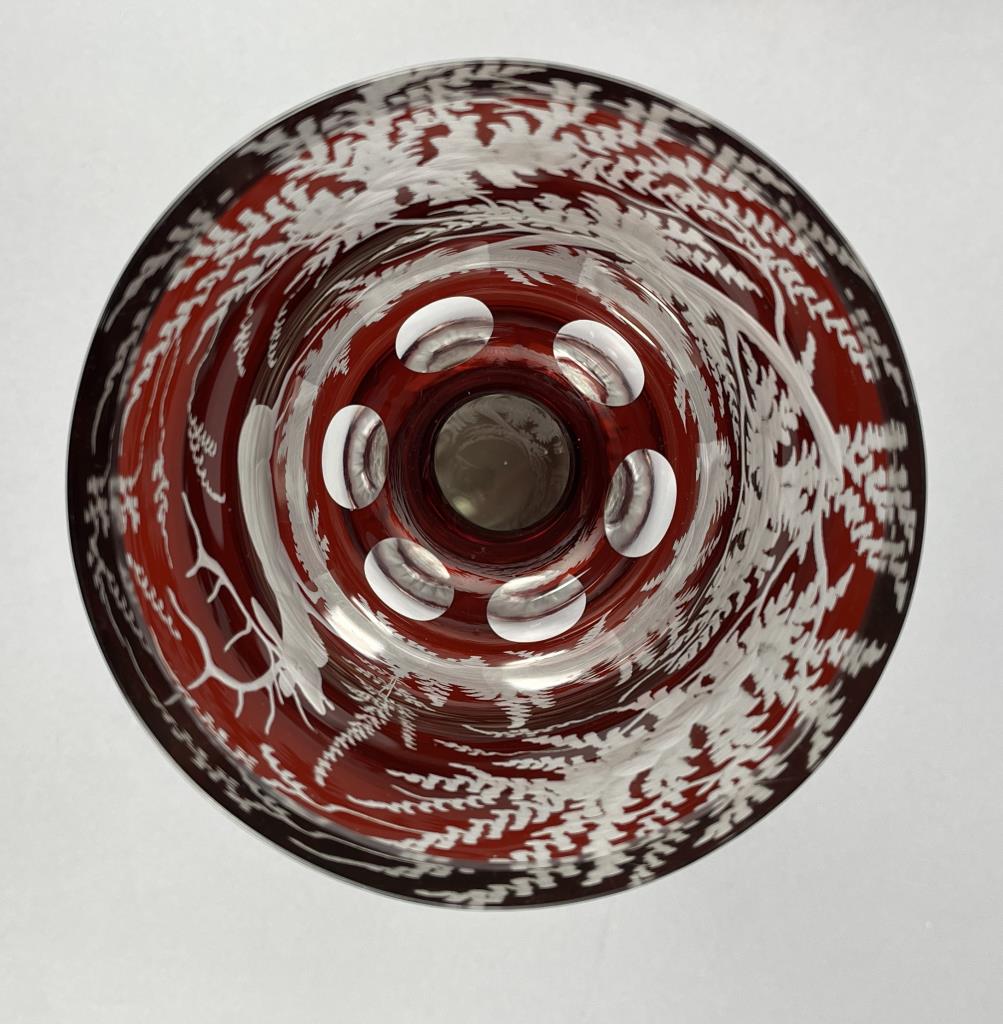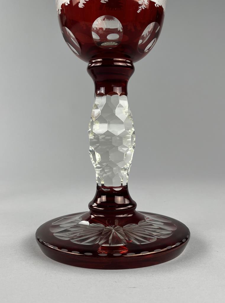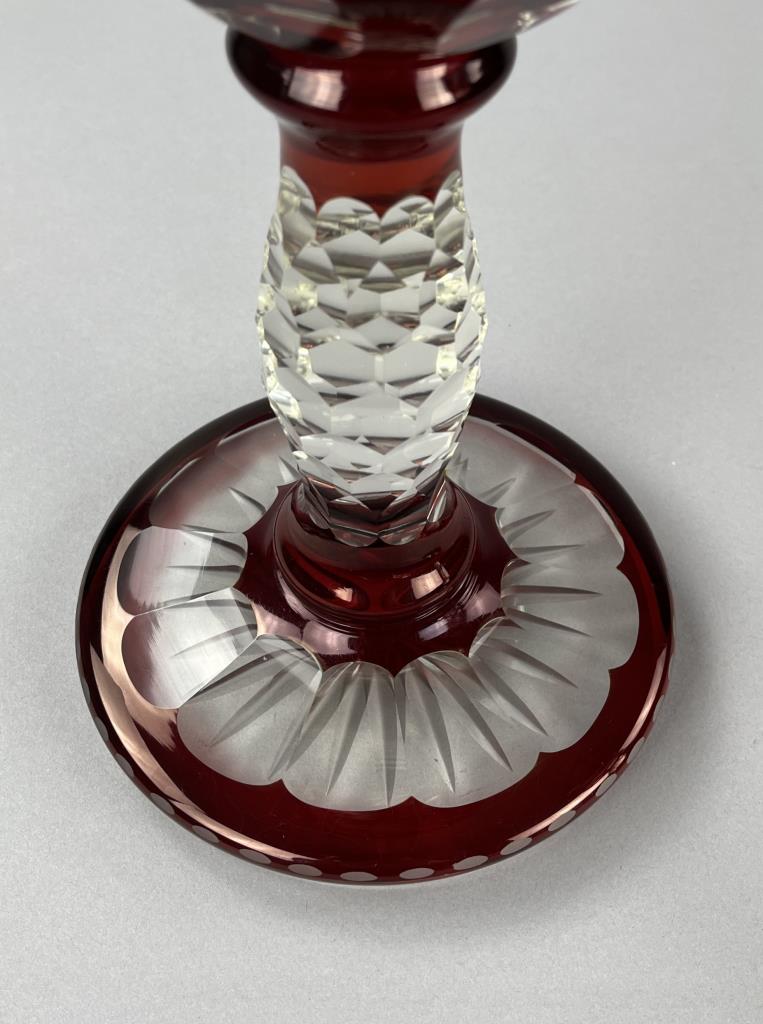 Pair of Bohemian Ruby Cut to Clear Glass Pokals