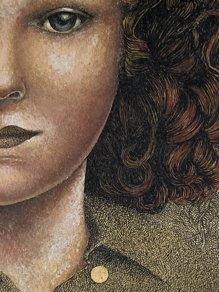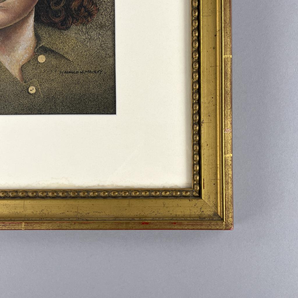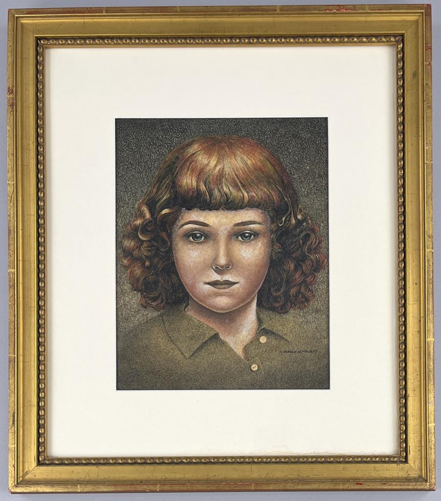 Donald W. Mackey (American, 1920-2000), portrait painting of a redheaded girl, mixed media, mid 20th Century, in a gilt wood frame measuring 30-3/4″ x 18-1/4″. CONDITION: Not examined out of frame. SHIPPING: In-House Shipping is available on this item. PLEASE read our Shipping Policies and our full Terms and Conditions prior to bidding.