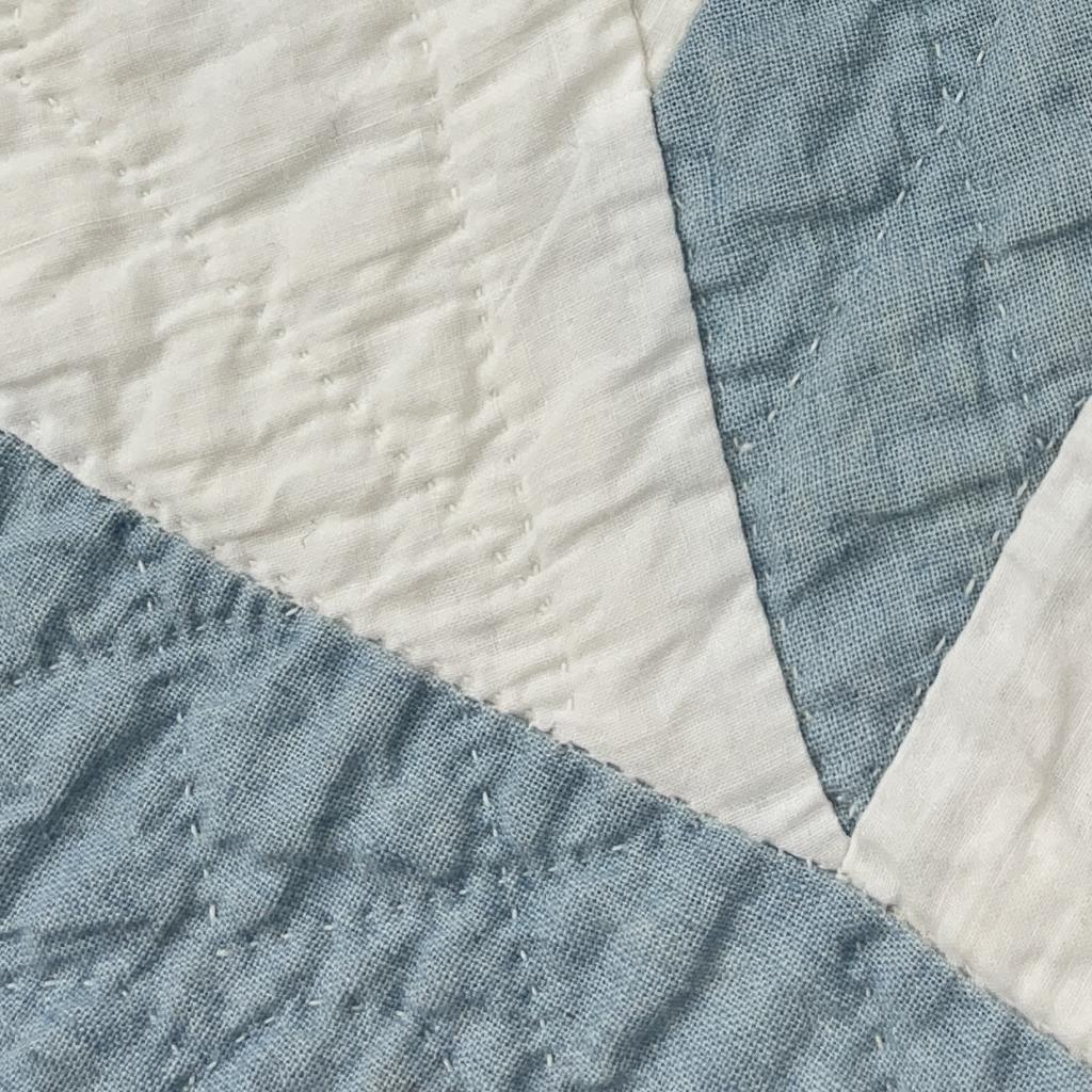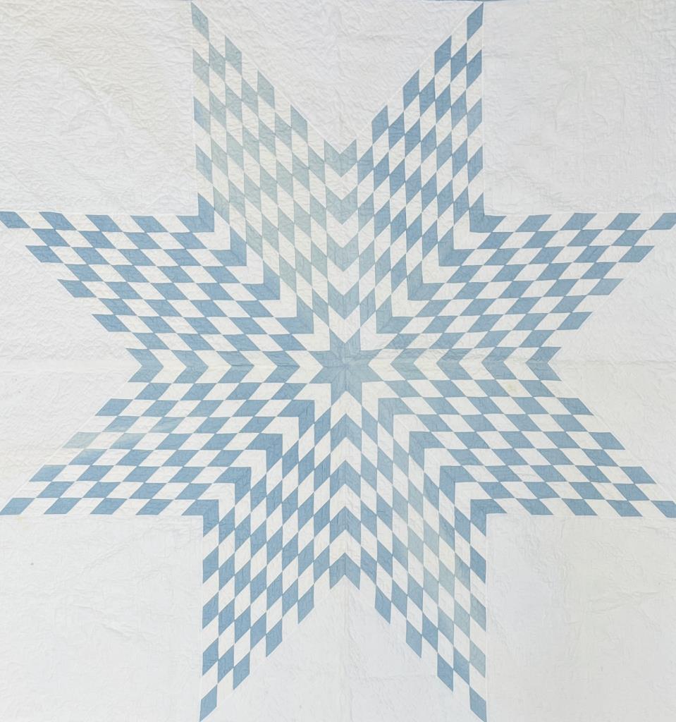 Antique American hand stitched quilt, in a “Star” pattern, most likely mid to late 19th Century, approximately 75″ x 79″. CONDITION: Some areas of minor staining and discolouration, please see photos. SHIPPING: In-House Shipping is available on this item. PLEASE read our Shipping Policies and our full Terms and Conditions prior to bidding.