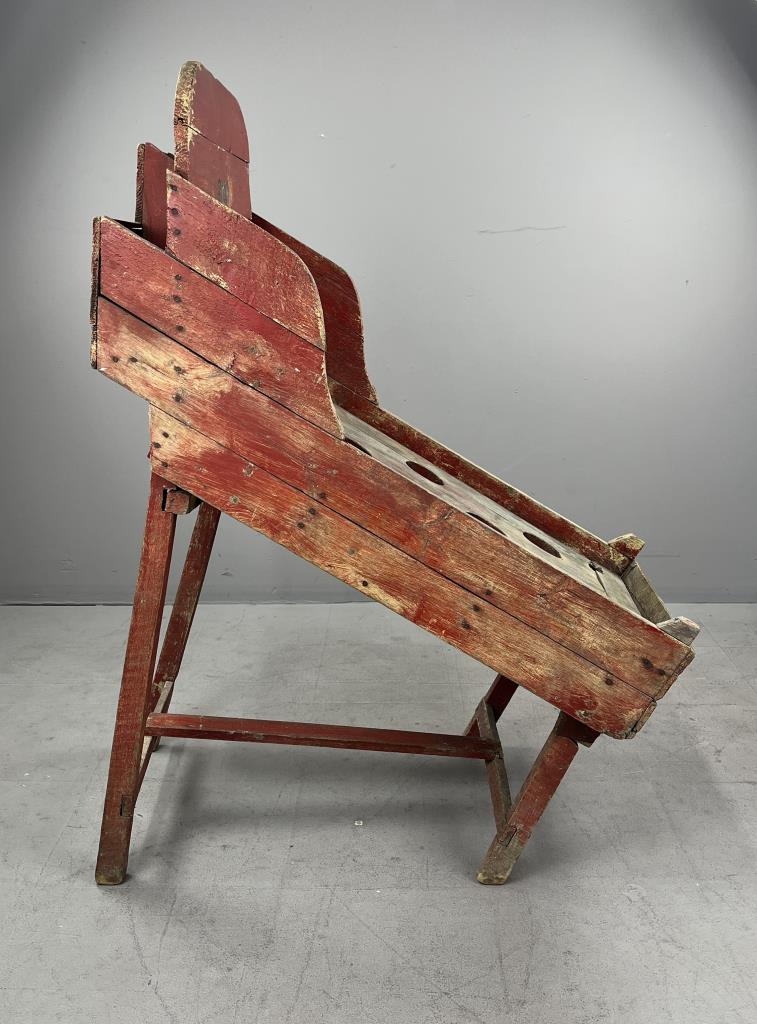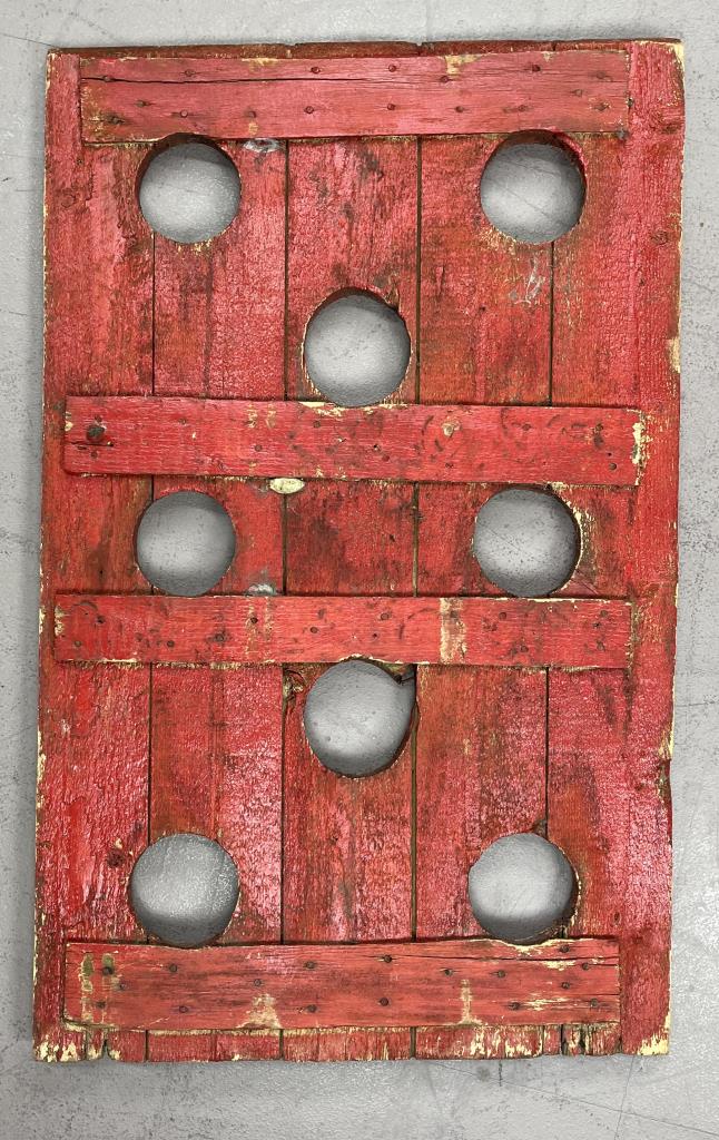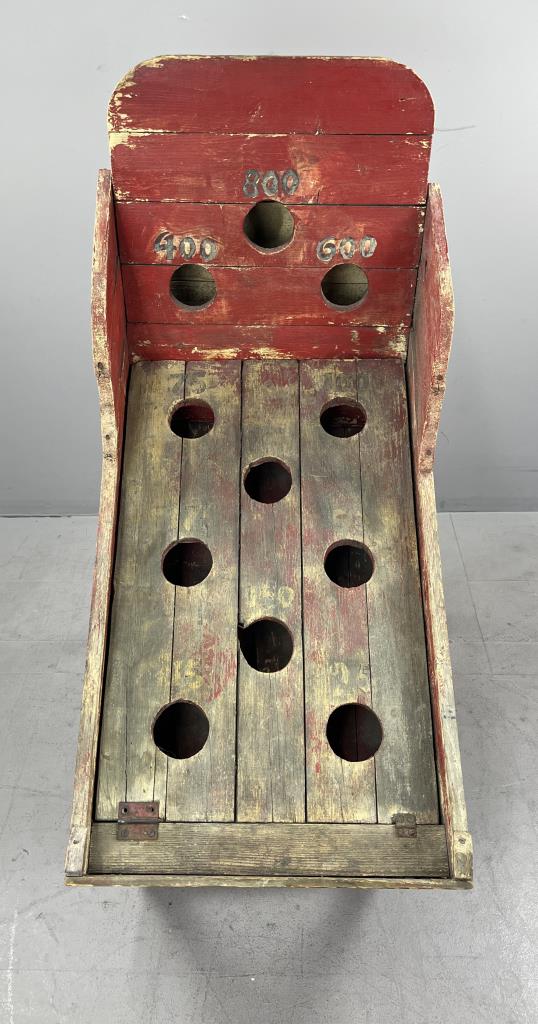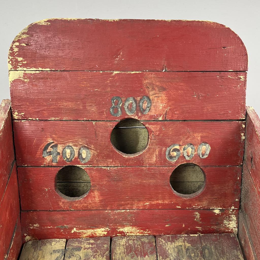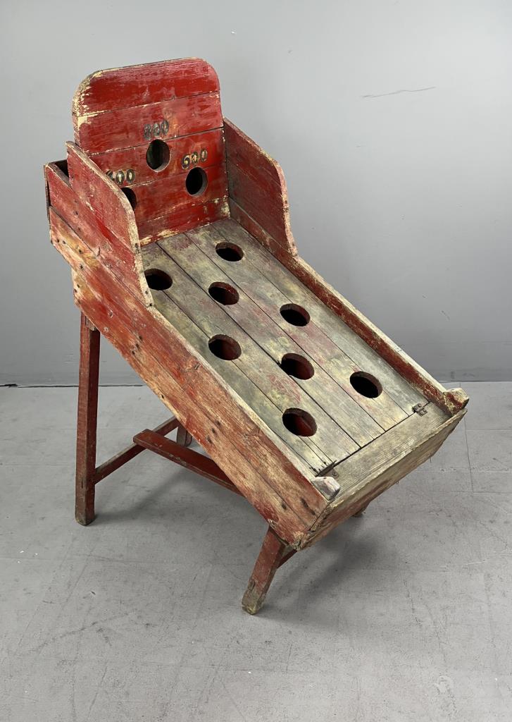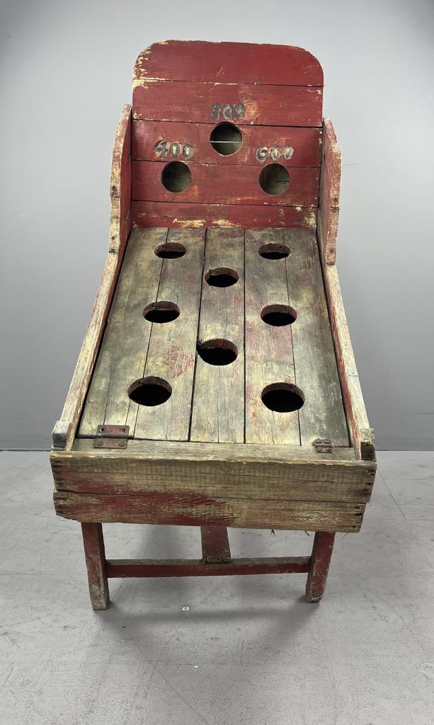 Folk art carnival bean bag toss game, red painted wood, approximately 38″ (L) x 19″ (W) x 44″ (H). CONDITION: Please Refer to Photos and Description for Condition. SHIPPING: Local pick-up or third party shipping only for this lot. Please see the Shipping Policy for information on suggested shippers. We recommend the Pak Mail Store of Battle Creek to assist you. Please contact the shipper of your choice for shipping estimates on this lot. Refer to the Shipping section in our full Terms and Conditions for all information on shipping.
