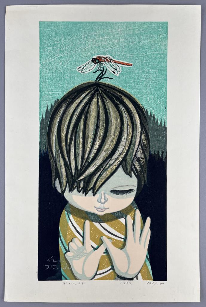 Shuzo Ikeda (Japanese, 1922-2004) limited edition (101/200) woodblock print titled, “Red Dragonfly”, 1972, signed in plate lower left, unframed, measures overall 17-11/16″ x 11-13/16″. CONDITION: Please Refer to Photos and Description for Condition. SHIPPING: In-House Shipping is available on this item. PLEASE read our Shipping Policies and our full Terms and Conditions prior to bidding.