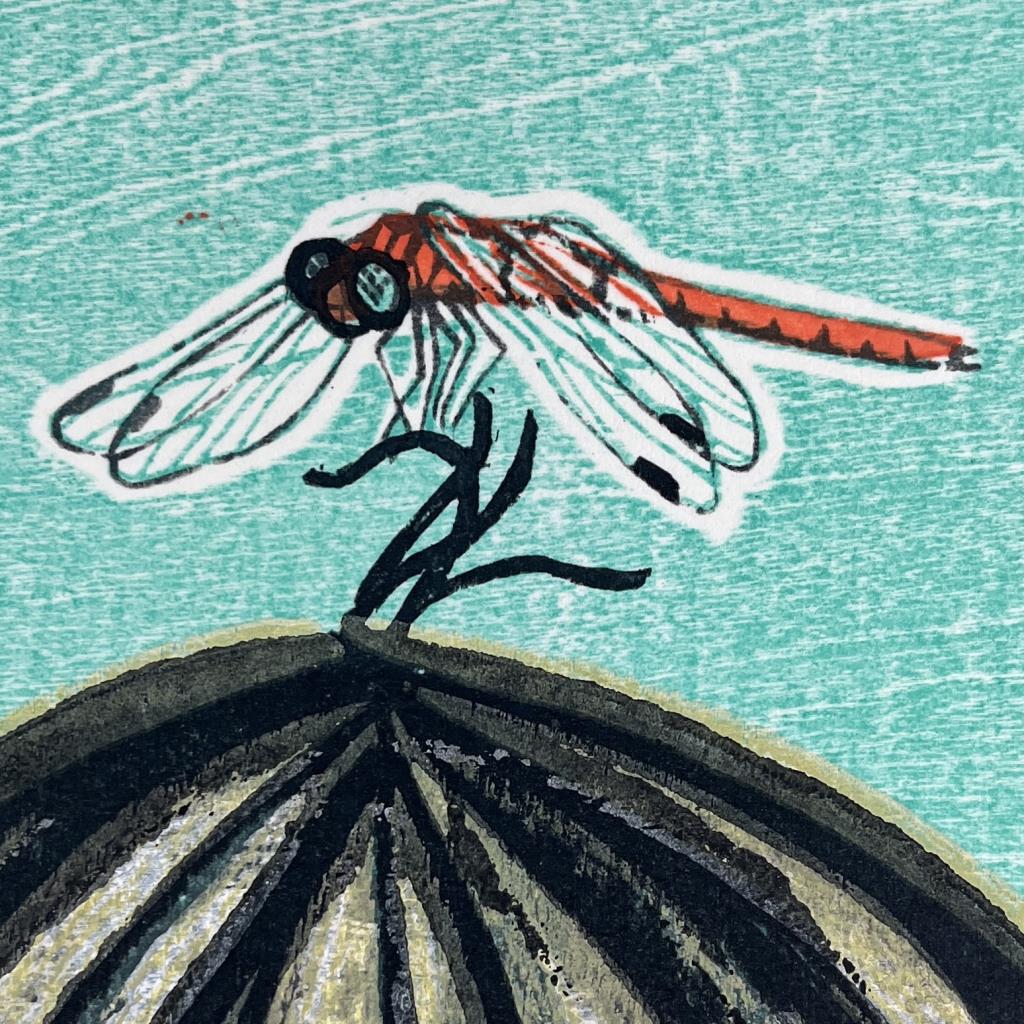 Shuzo Ikeda (JP 1922-2004) Woodblock Red Dragonfly