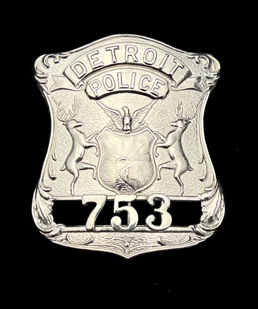 Detroit (Michigan) Police Officer badge, numbered 753, 2-5/16″ x 2-3/4″. CONDITION: Please Refer to Photos and Description for Condition. SHIPPING: In-House Shipping is available on this item. PLEASE read our Shipping Policies and our full Terms and Conditions prior to bidding.