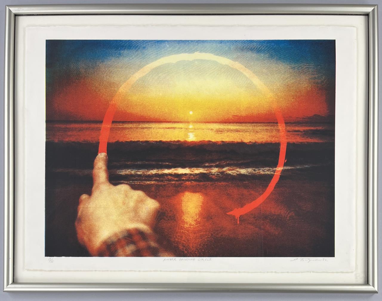 Shigeru Taniguchi (Japanese, b. 1948), “Finger Painting Circle,” 1982, limited edition photo silkscreen, signed and dated lower right, titled lower center, and numbered lower left (17/35), in a contemporary metal frame measuring 26-3/16″ x 33-7/8″. CONDITION: Not examined out of frame. Some minor wear and scratching to frame, please see photos. SHIPPING: Local pick-up or third party shipping only for this lot. Please see the Shipping Policy for information on suggested shippers. We recommend the Pak Mail Store of Battle Creek to assist you. Please contact the shipper of your choice for shipping estimates on this lot. Refer to the Shipping section in our full Terms and Conditions for all information on shipping.