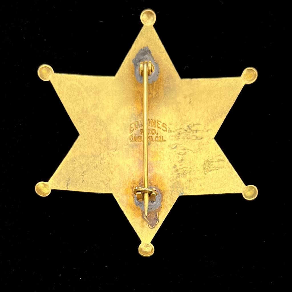 Moro County Oregon Sheriff badge, marked on backed “Ed Jones & Co. Oakland Cal [California]), 2-7/16″ x 2-3/4”. CONDITION: Please Refer to Photos and Description for Condition. SHIPPING: In-House Shipping is available on this item. PLEASE read our Shipping Policies and our full Terms and Conditions prior to bidding.
