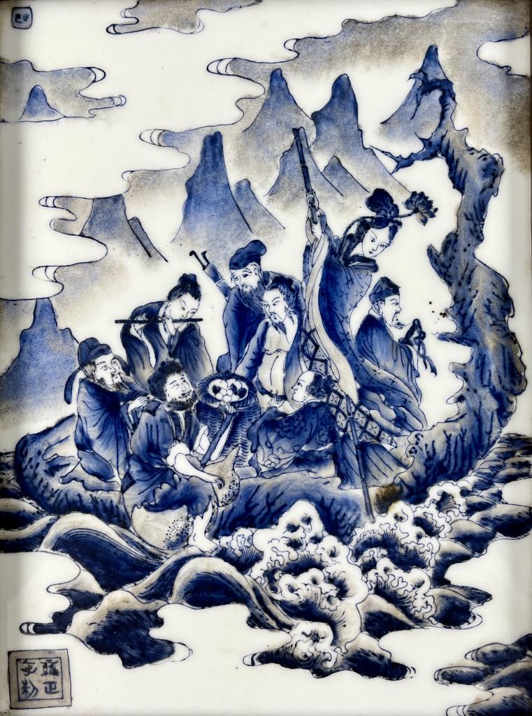 Chinese Blue & White Porcelain Panel 8 Immortals