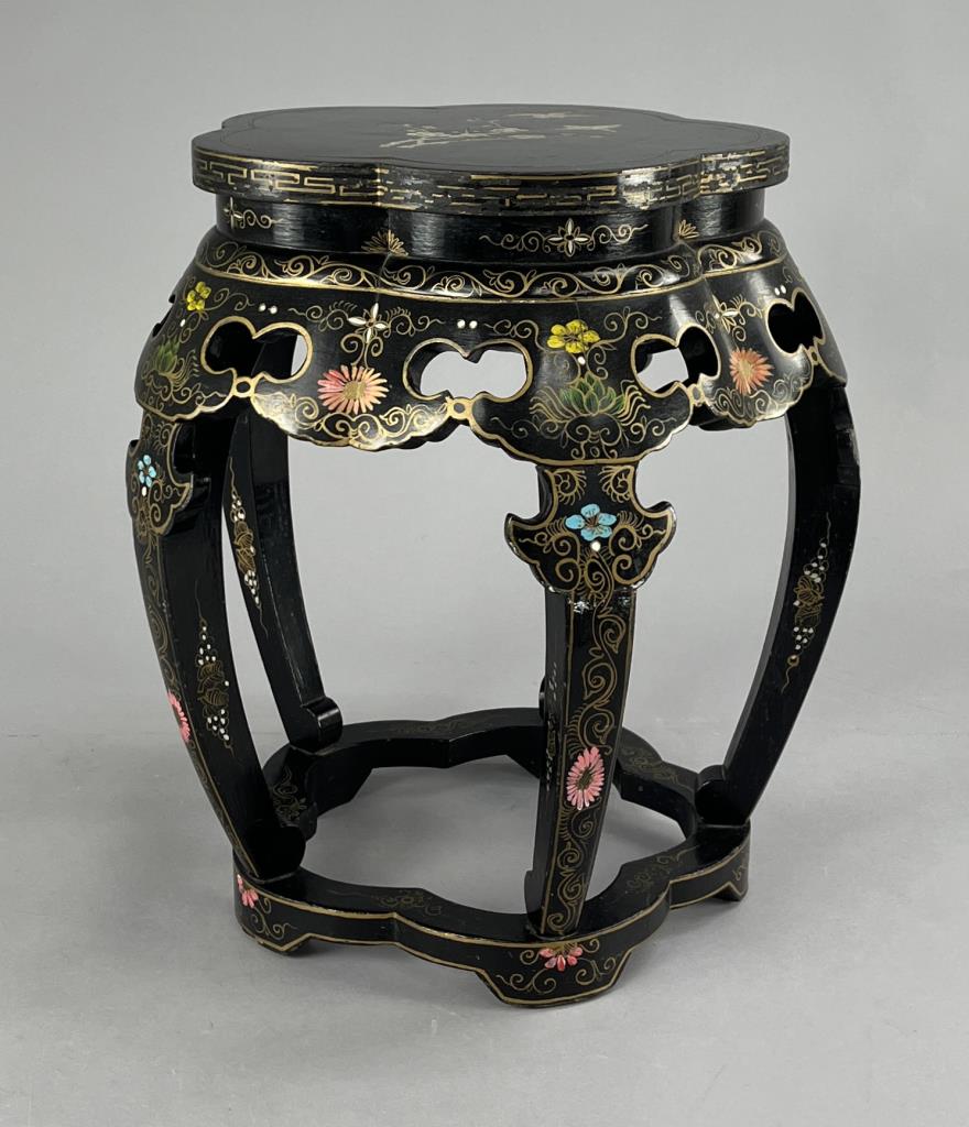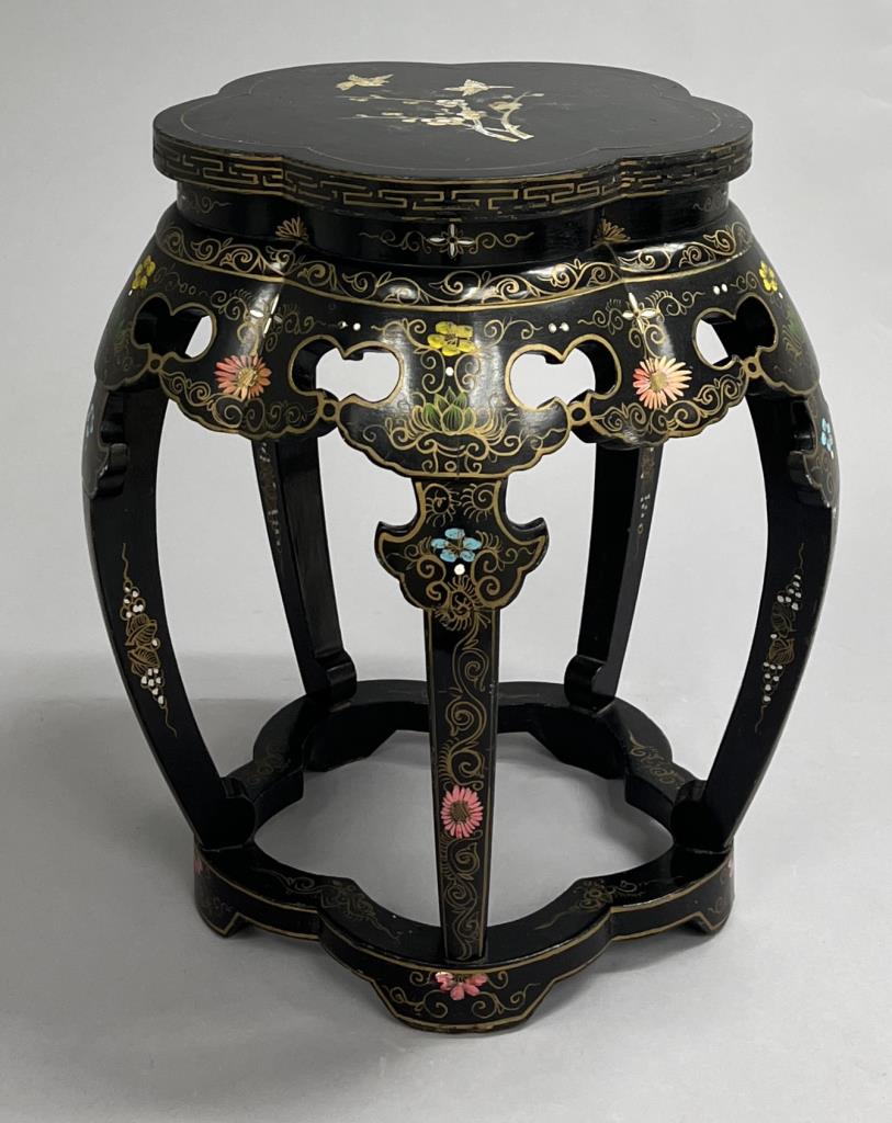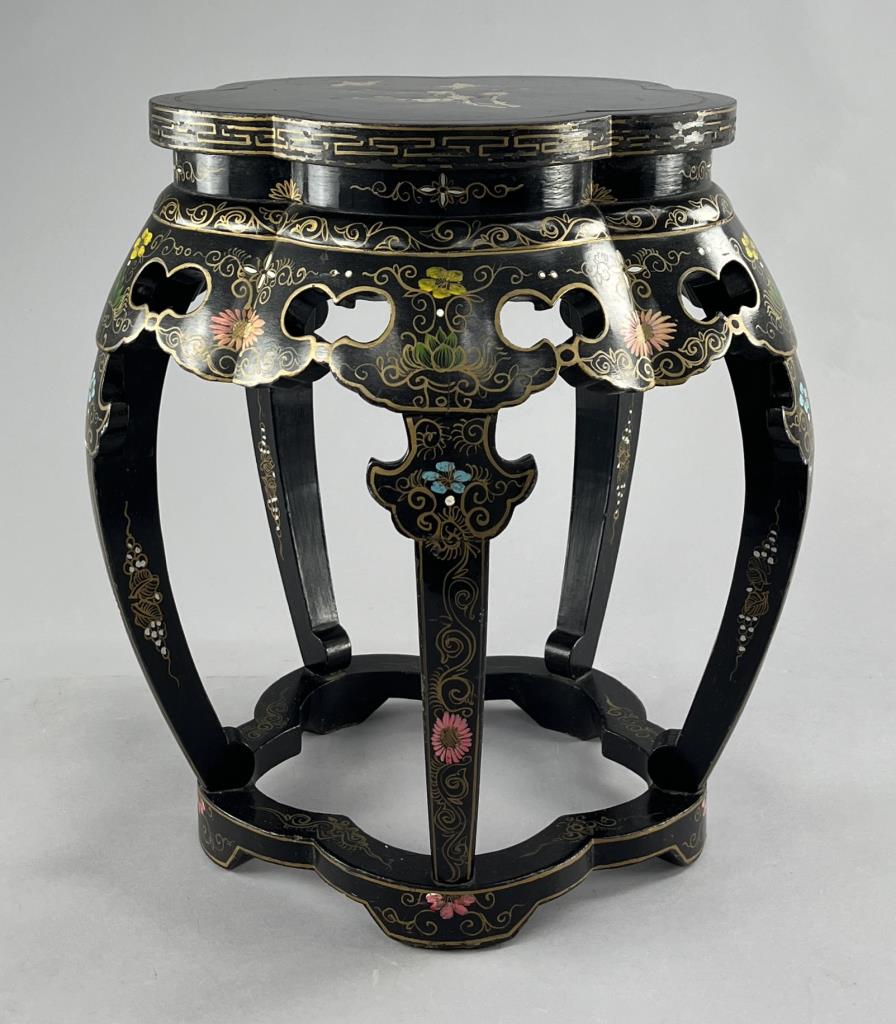Chinese Republic Period Black Lacquered Drum Stool
