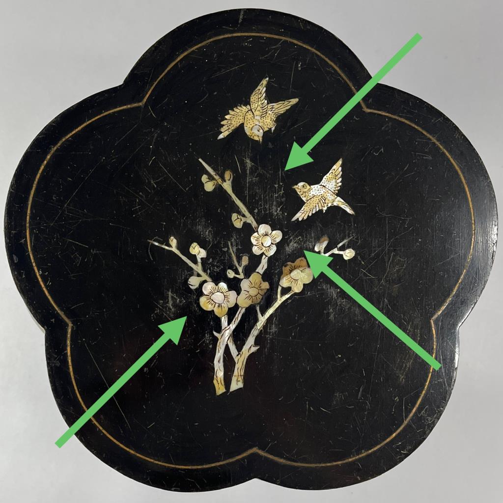 Chinese barrel form drum or garden stool, Song Dynasty style, hand painted decoration with inlaid mother of pearl and brass, Republic Period, circa early to mid 20th Century, approximately 17-1/4″ (H) x 16-1/4″ (D). CONDITION: Some scruffy and scratching, especially to top. SHIPPING: Local pick-up or third party shipping only for this lot. Please see the Shipping Policy for information on suggested shippers. We recommend the Pak Mail Store of Battle Creek to assist you. Please contact the shipper of your choice for shipping estimates on this lot. Refer to the Shipping section in our full Terms and Conditions for all information on shipping.