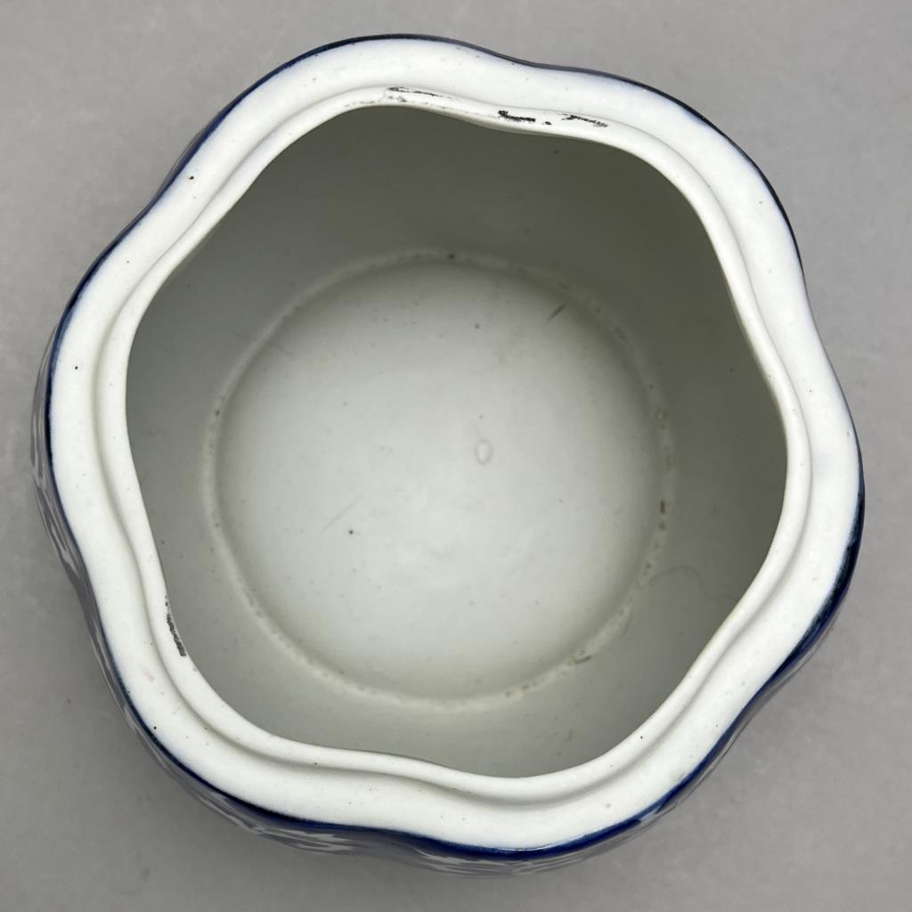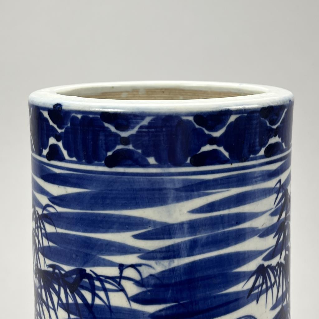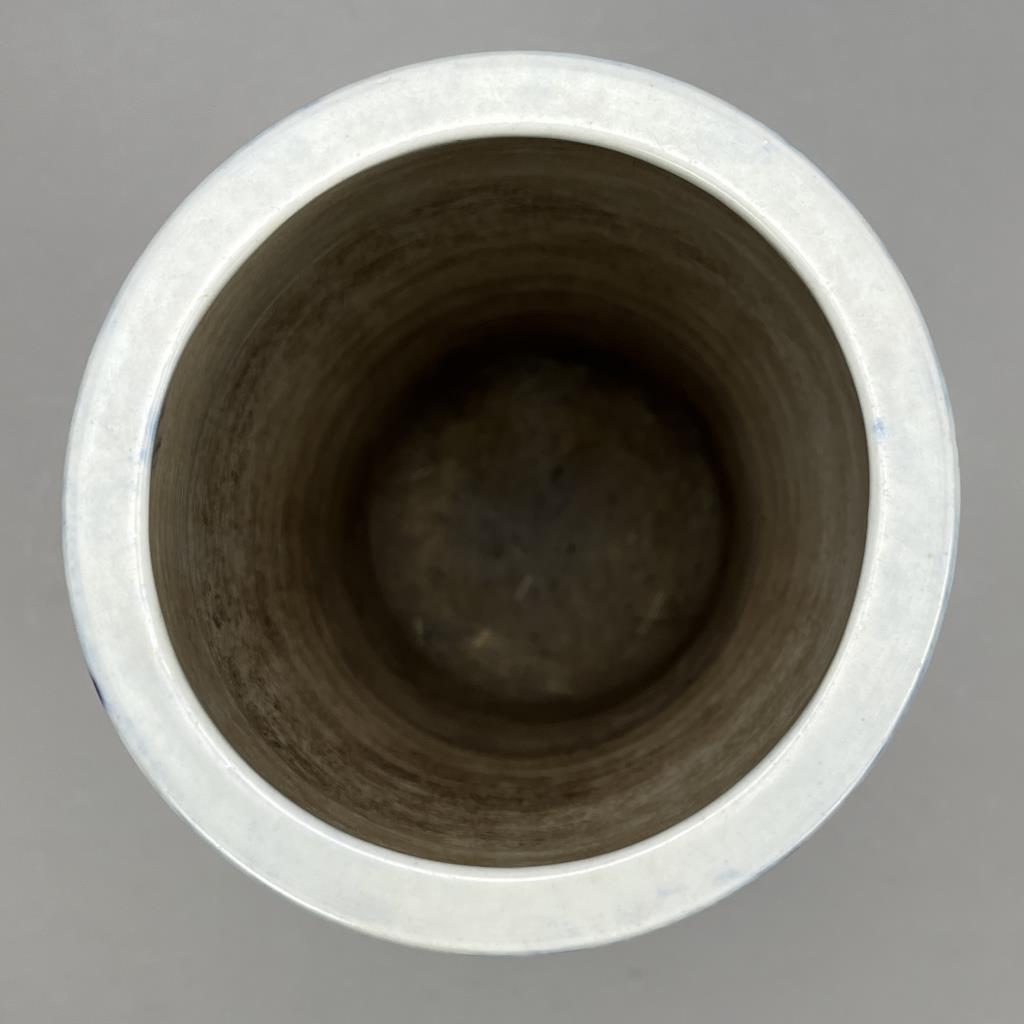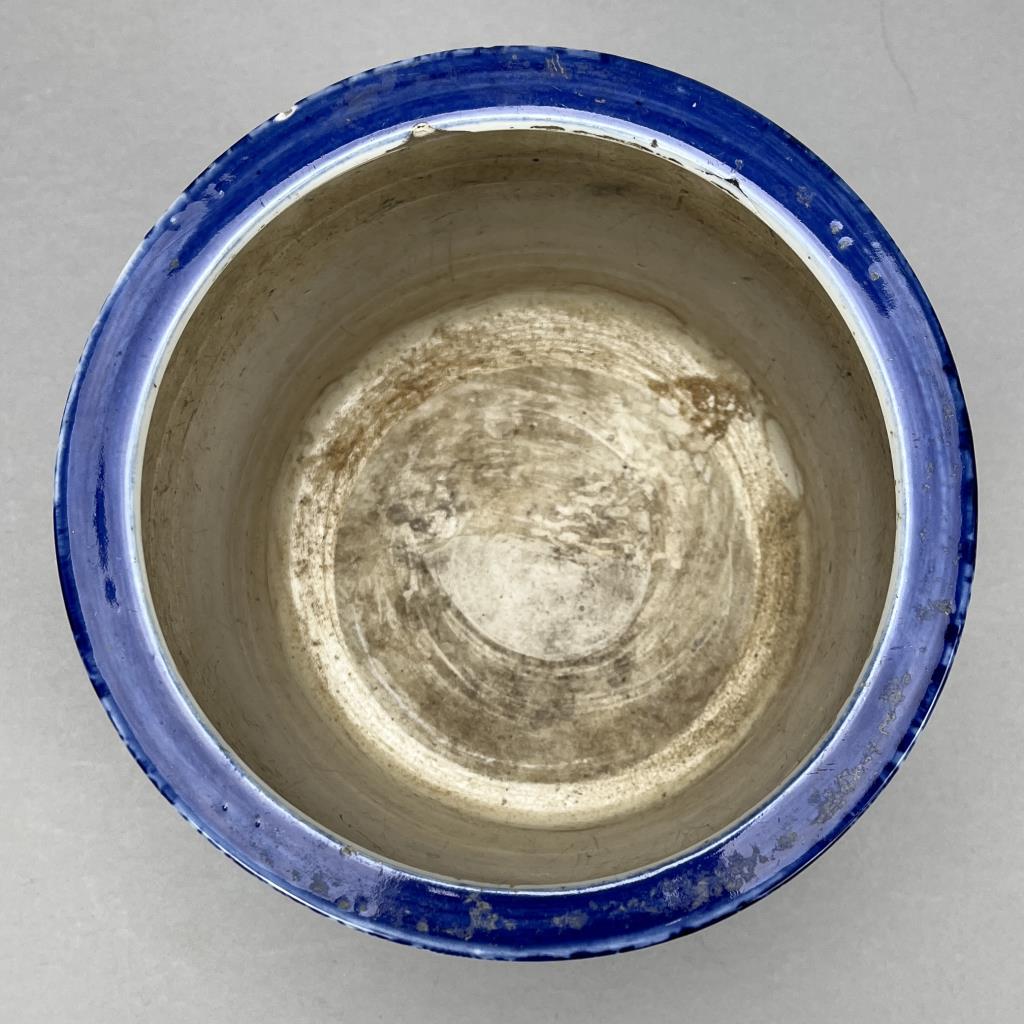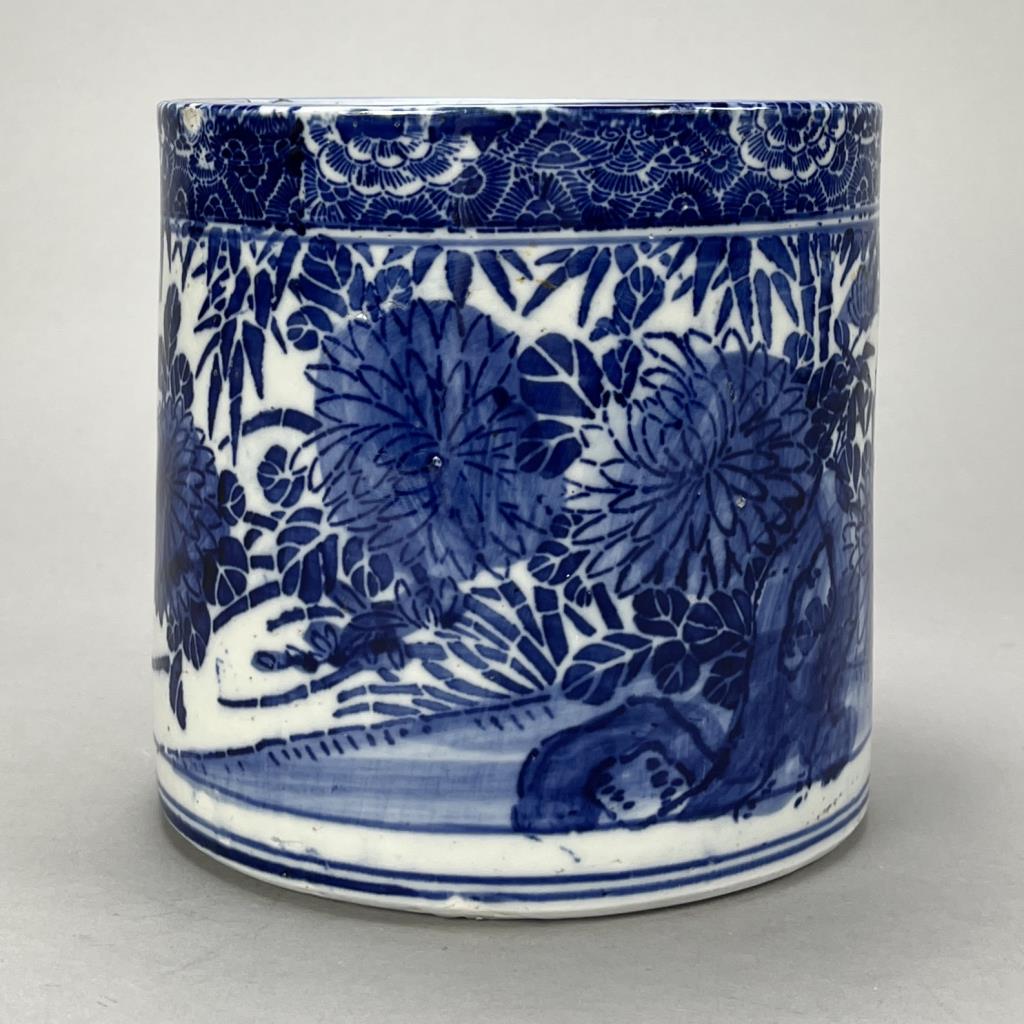 Three pieces of hand painted Chinese blue and white pottery, a cylinder vase 12″ (H), a jardiniere 6-3/4″ (H), and a figural squash or pumpkin canister with lid 8″ (H), all 20th Century. CONDITION: The jardiniere has two chips on the rim, please see photos. SHIPPING: In-House Shipping is available on this item. PLEASE read our Shipping Policies and our full Terms and Conditions prior to bidding.