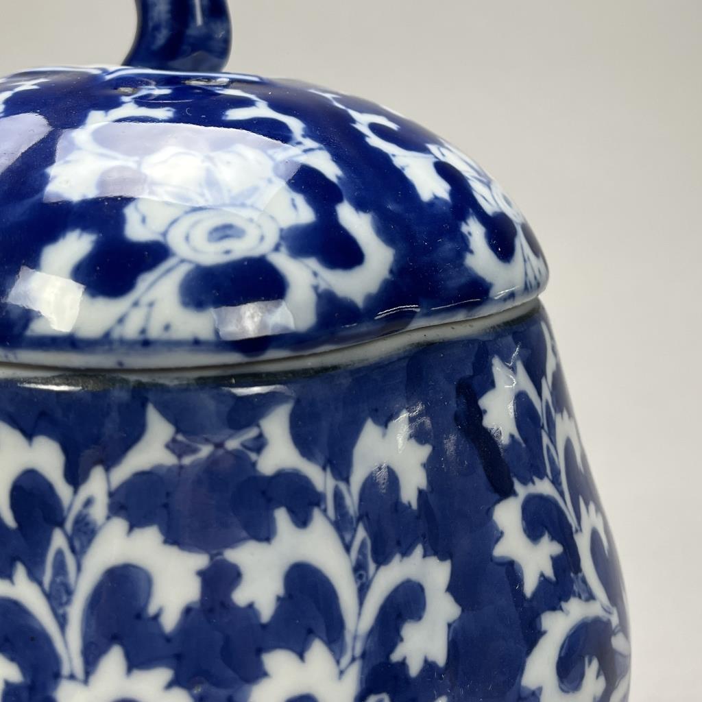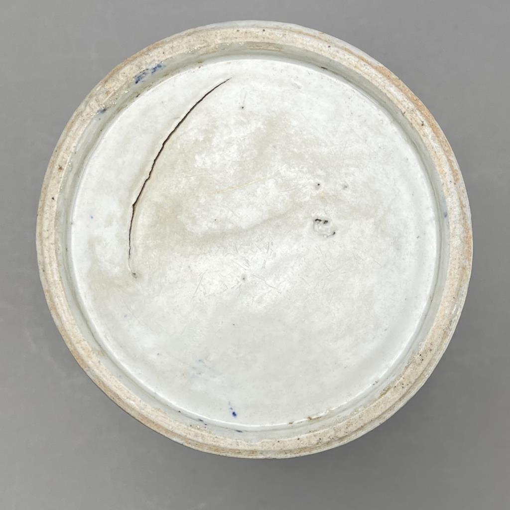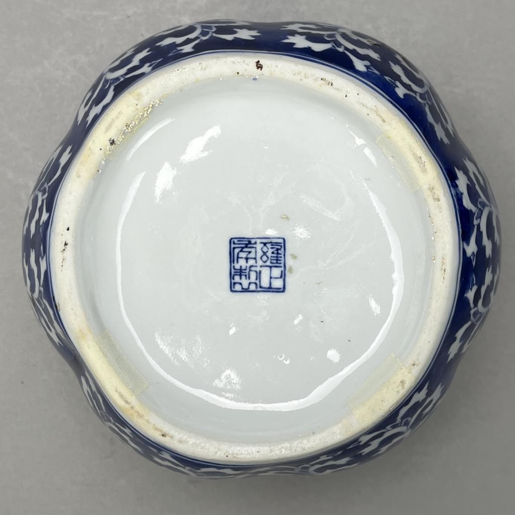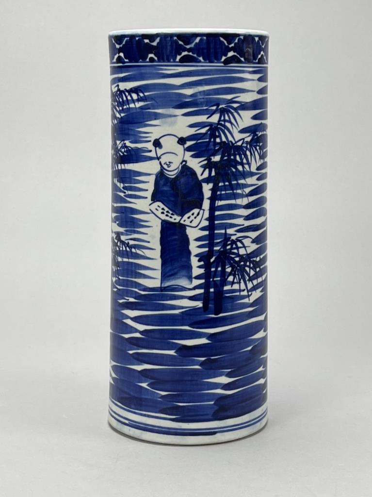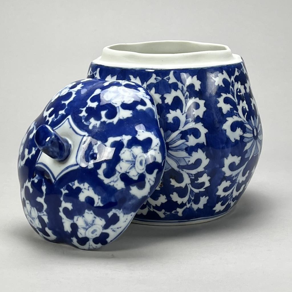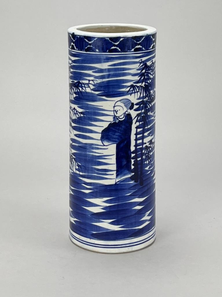 Three pieces of hand painted Chinese blue and white pottery, a cylinder vase 12″ (H), a jardiniere 6-3/4″ (H), and a figural squash or pumpkin canister with lid 8″ (H), all 20th Century. CONDITION: The jardiniere has two chips on the rim, please see photos. SHIPPING: In-House Shipping is available on this item. PLEASE read our Shipping Policies and our full Terms and Conditions prior to bidding.