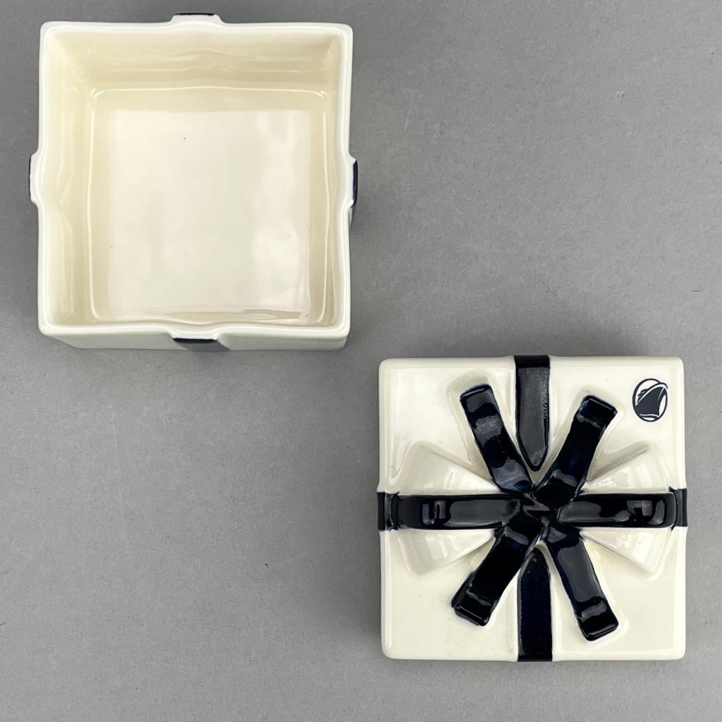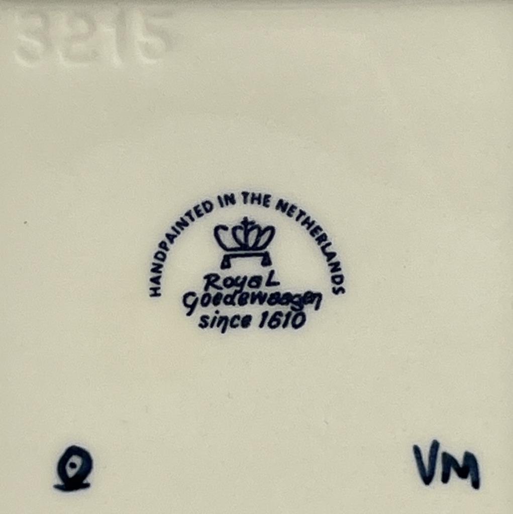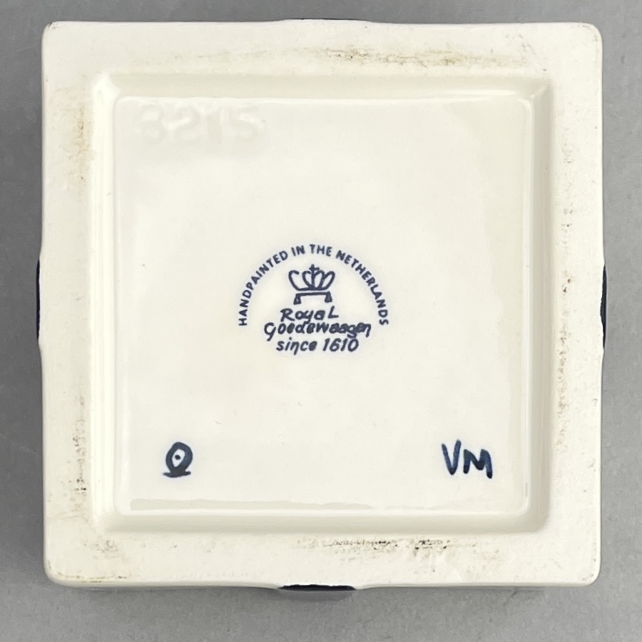 Hand painted blue Delft pottery lidded gift box, by Royal GoedeWaagen (Netherlands) marked on underside, and made for the Holland America [cruise ship] Line, circa late 20th Century, 3-1/6″ x 3-1/16″ x 3-1/16″, includes brochure. CONDITION: Please Refer to Photos and Description for Condition. SHIPPING: In-House Shipping is available on this item. PLEASE read our Shipping Policies and our full Terms and Conditions prior to bidding.