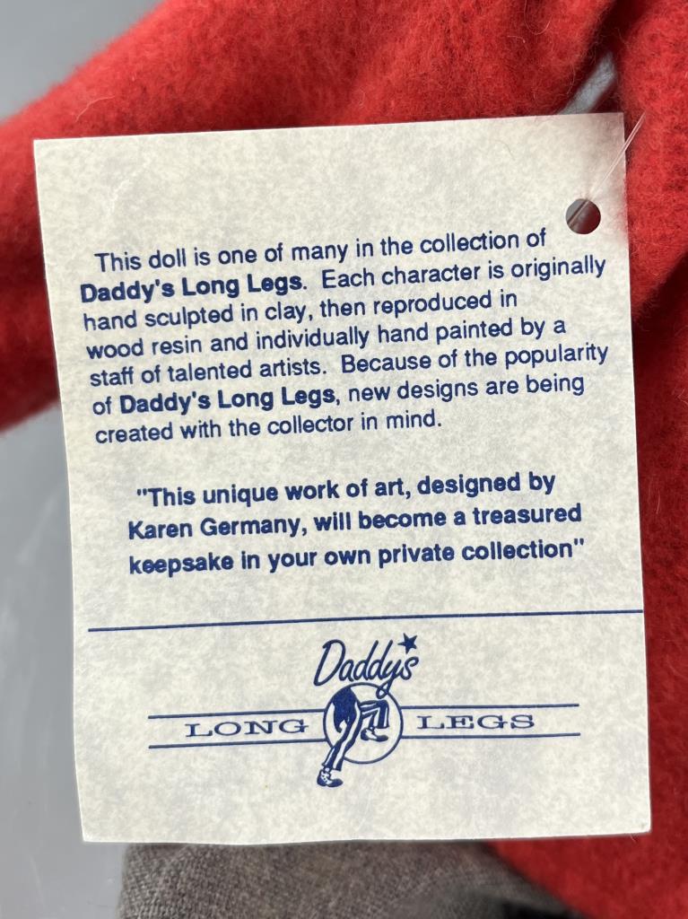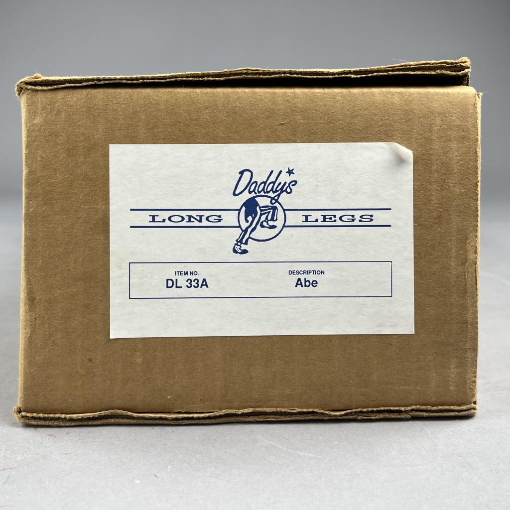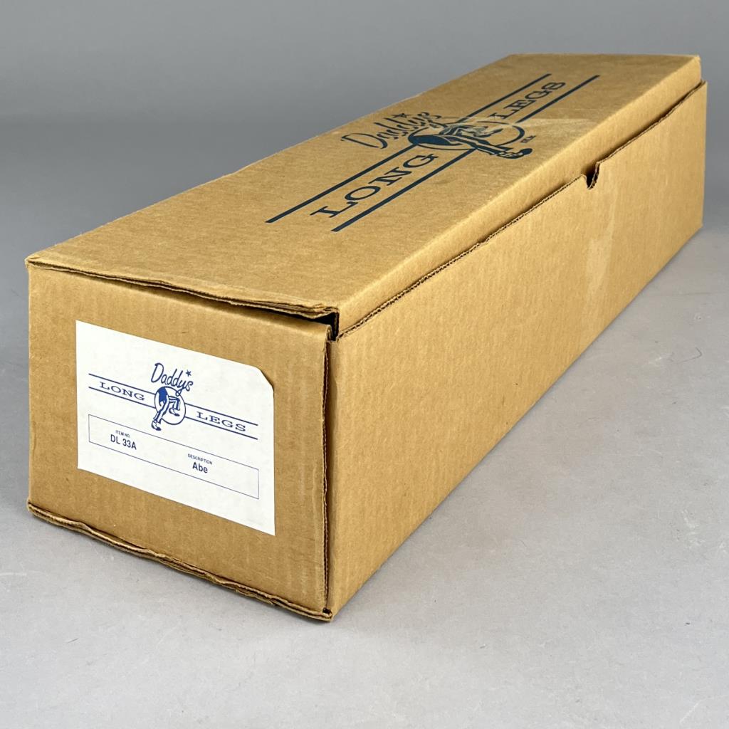 Daddy Long Legs (established 1985), “Abe” doll (#DL 33A), based on the original work of Karen Germany (American, b. 1949), and produced by KVK, Inc (Southlake Texas), wood resin and cloth, approximately 18″ (L), includes box. CONDITION: Please Refer to Photos and Description for Condition. SHIPPING: In-House Shipping is available on this item. PLEASE read our Shipping Policies and our full Terms and Conditions prior to bidding.