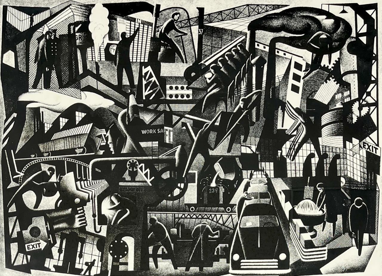 Industrial WPA Style Auto Factory Print