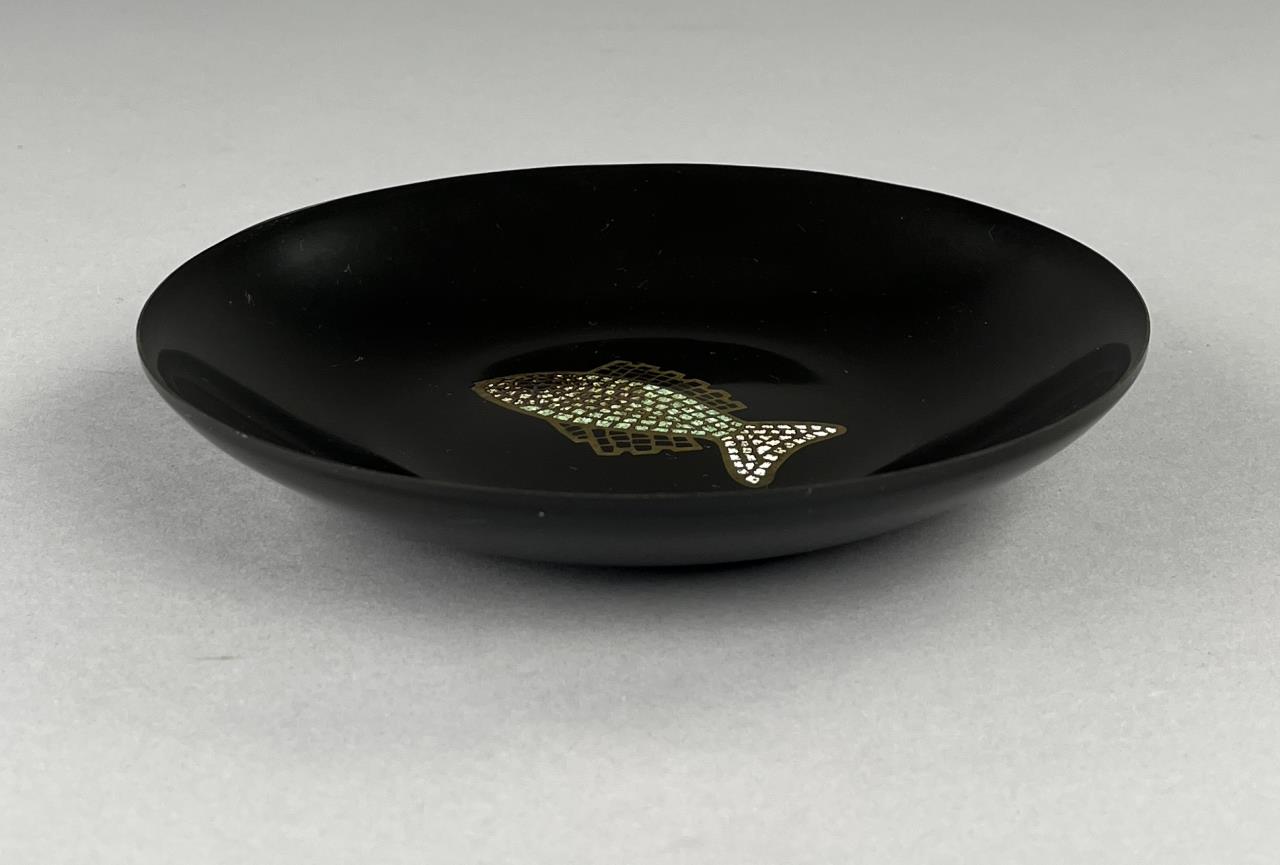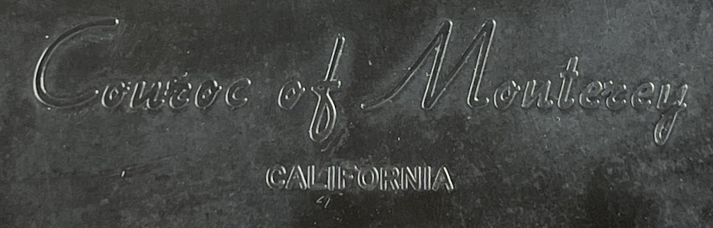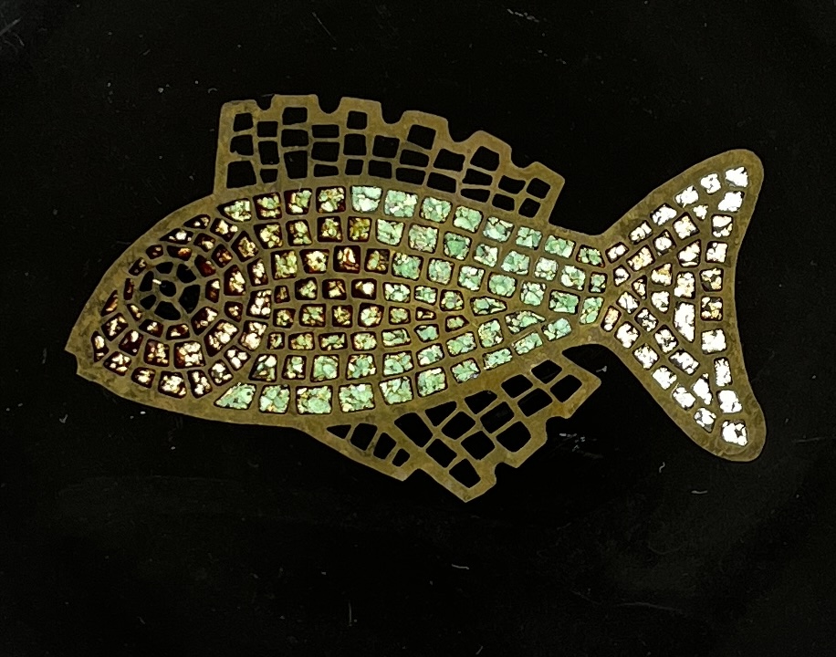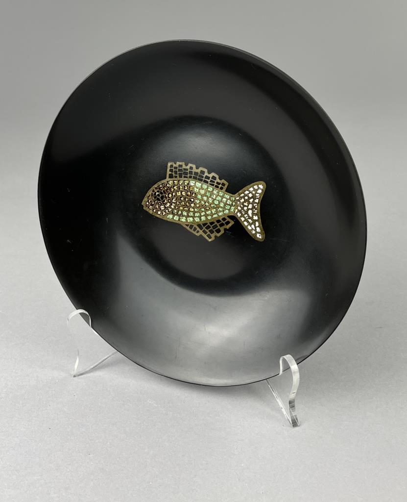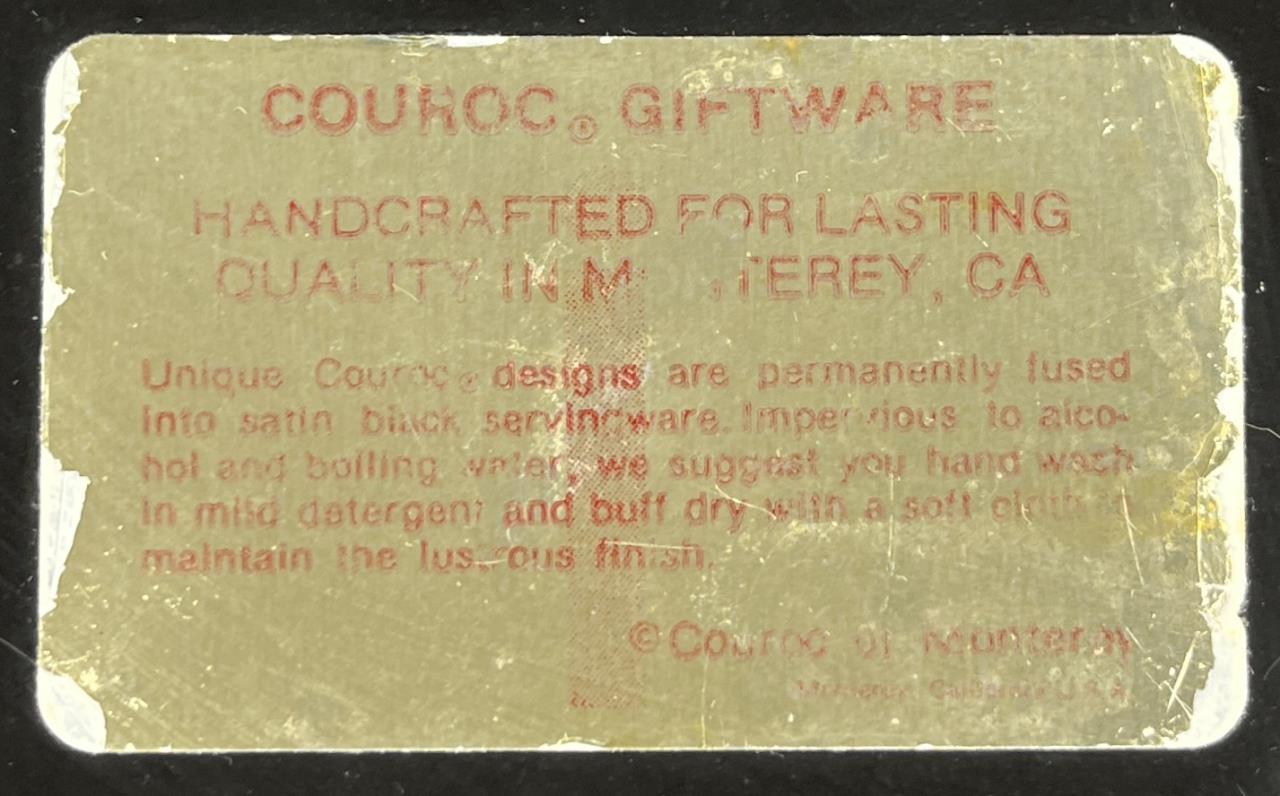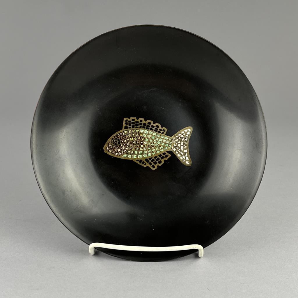 Mid Century Modern Couroc (Monterey, California) bowl with a fish design (7-3/4″ D) and round tray with a Hopi Hummingbird Katchina (10-3/8″ D), inlaid phenolic resin. CONDITION: Some very minor scratching and staining, commensurate with age and use, please see photos. SHIPPING: In-House Shipping is available on this item. PLEASE read our Shipping Policies and our full Terms and Conditions prior to bidding.