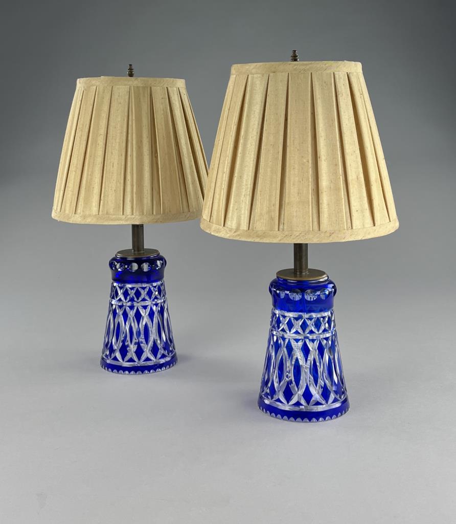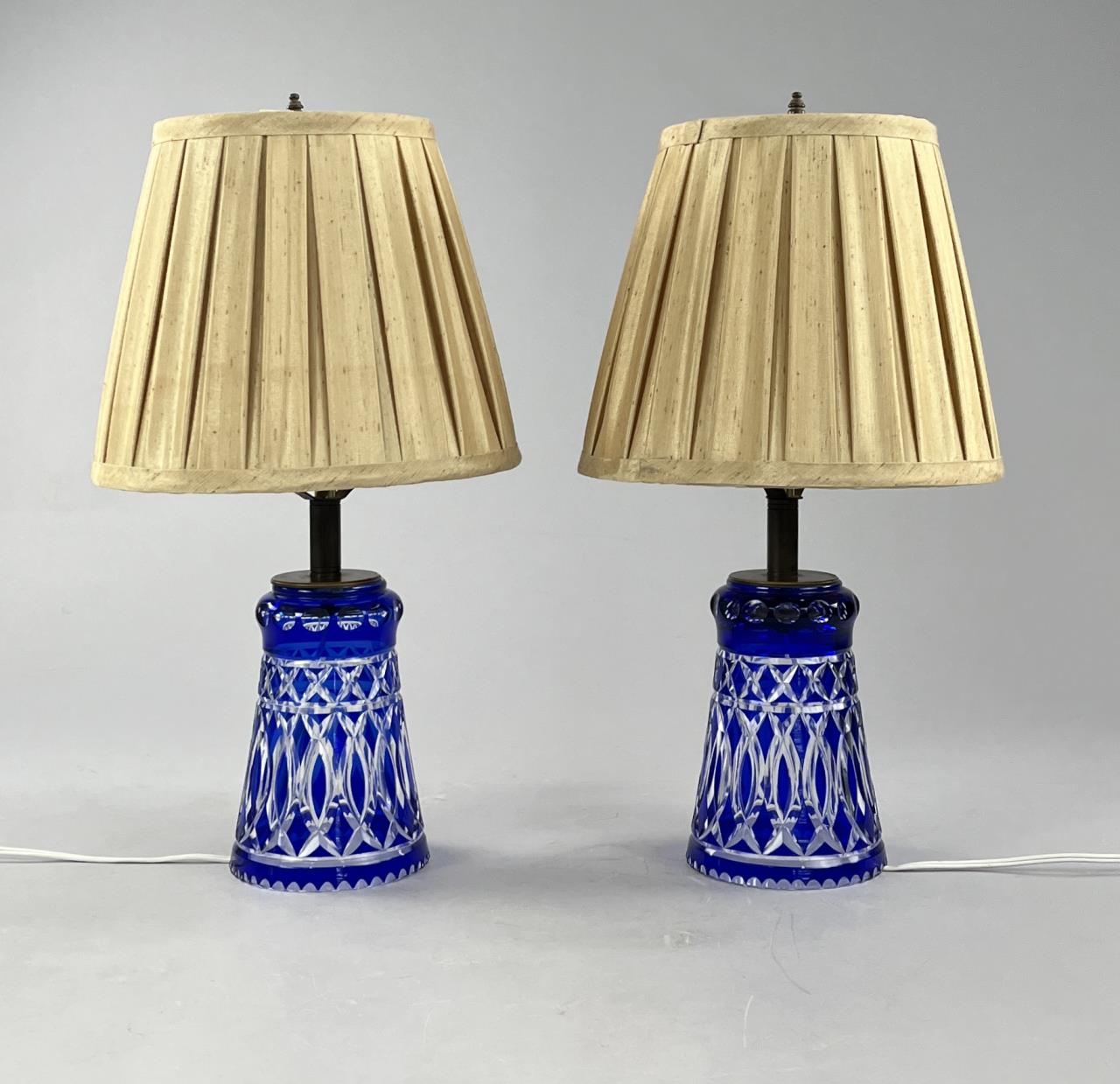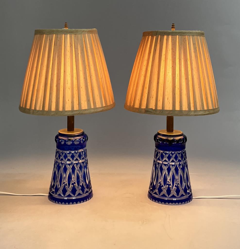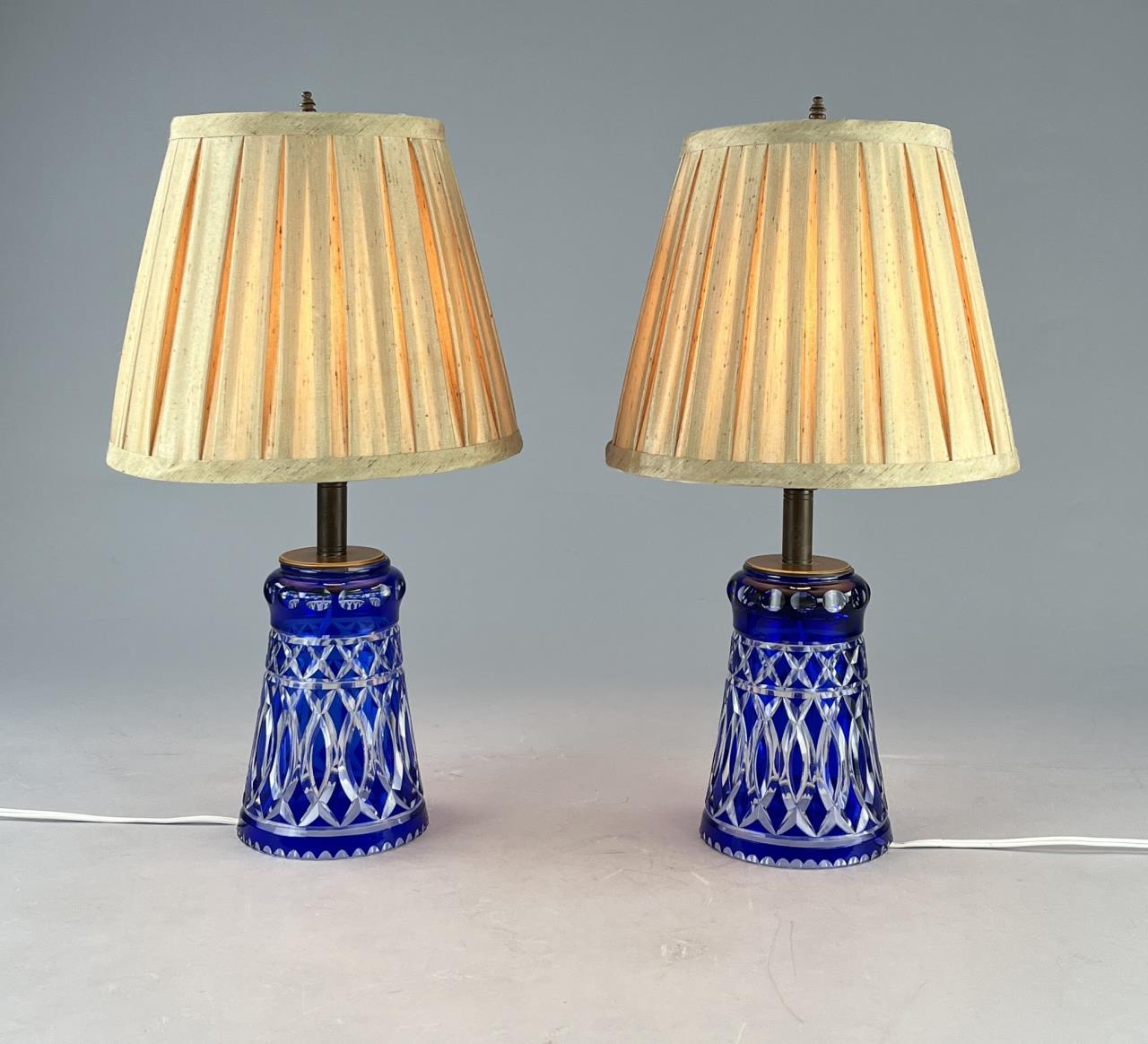 Pair of Cobalt Cut to Clear Crystal Boudoir Lamps