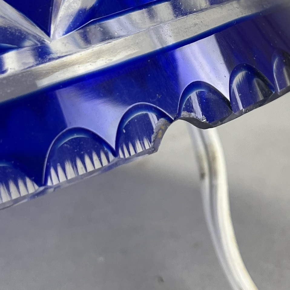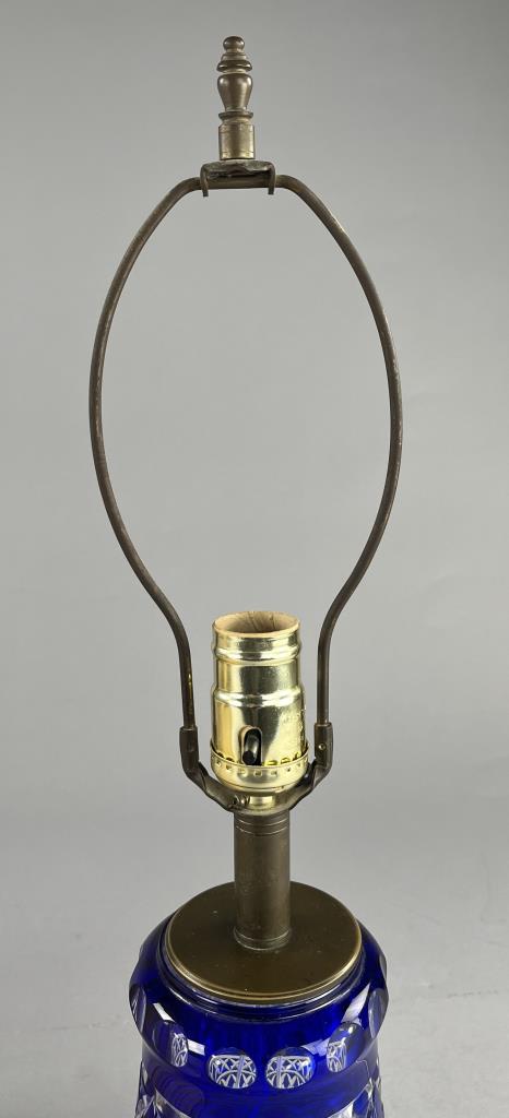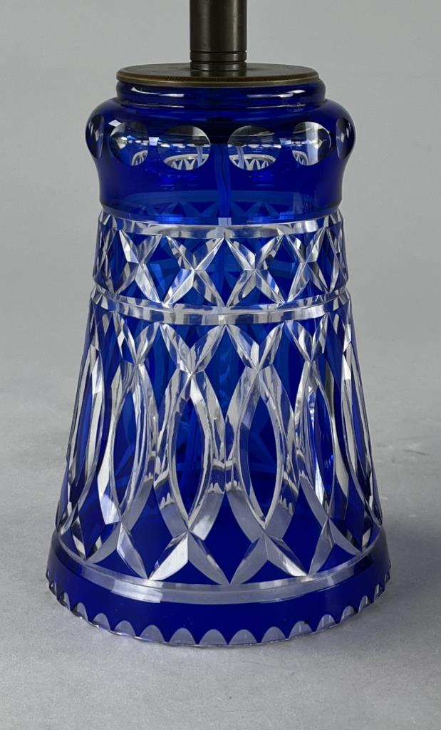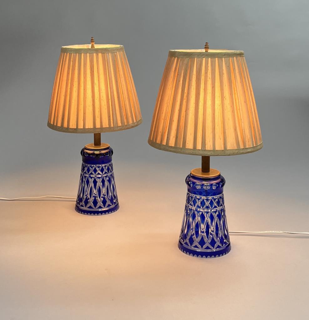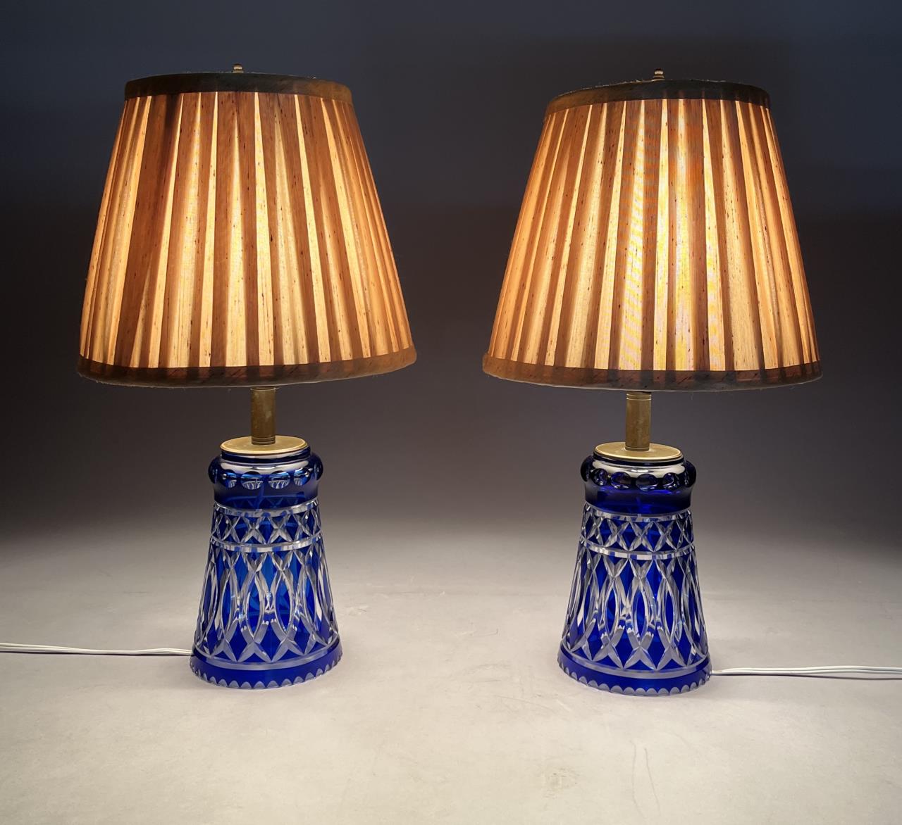 Pair of Cobalt Cut to Clear Crystal Boudoir Lamps