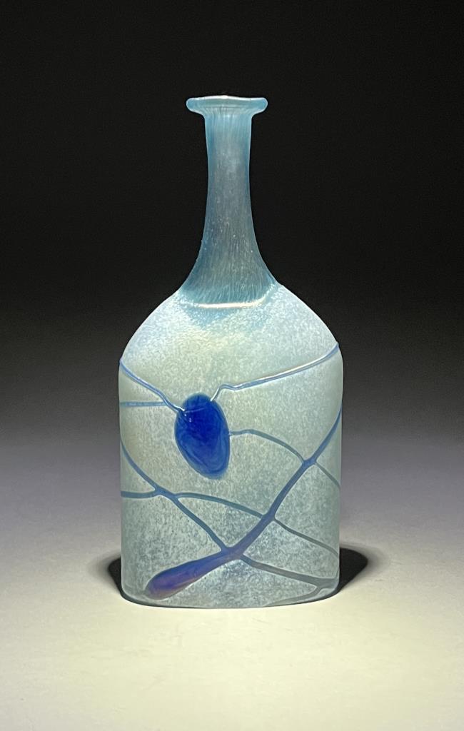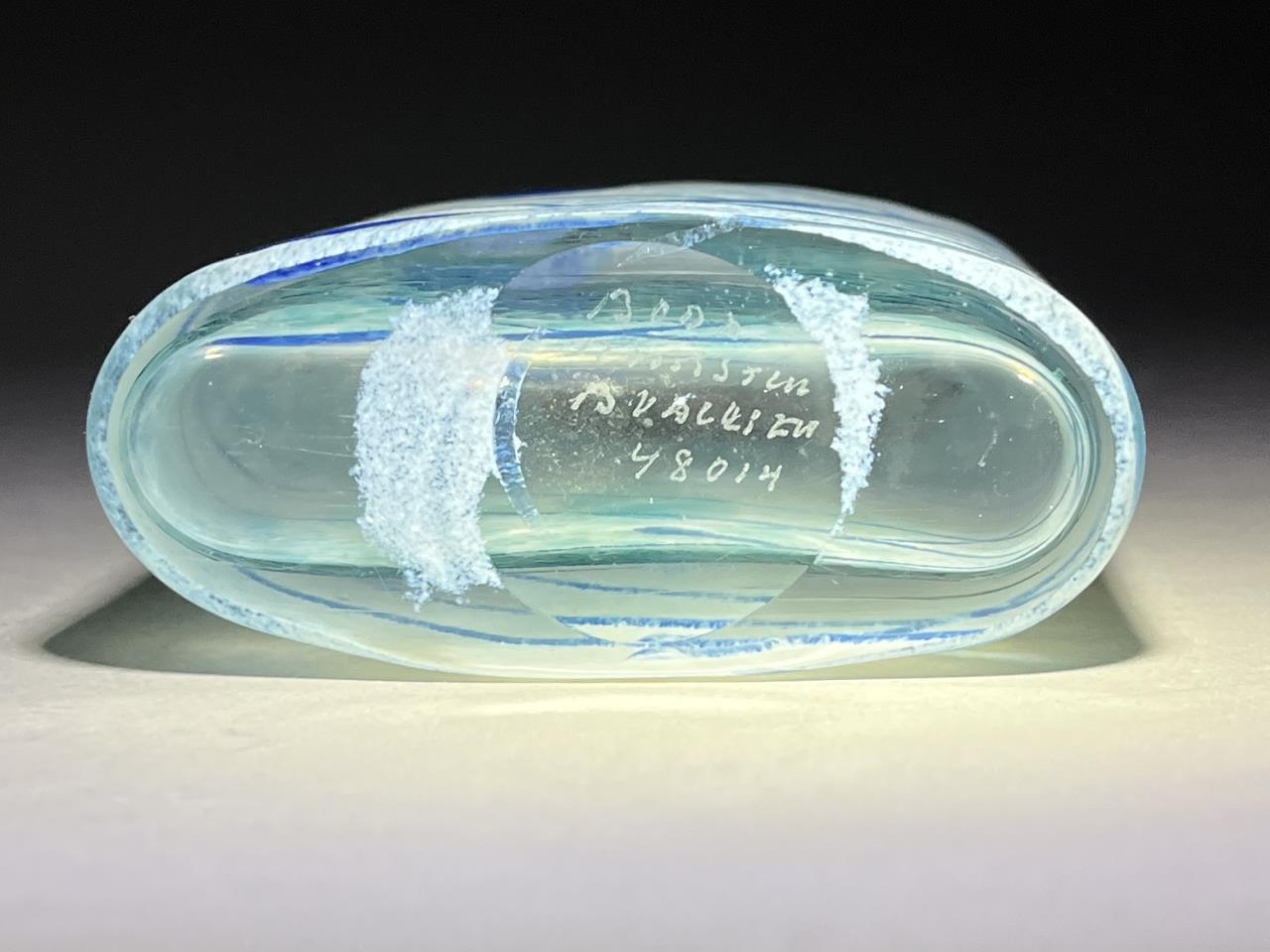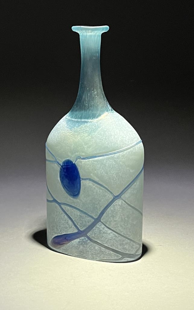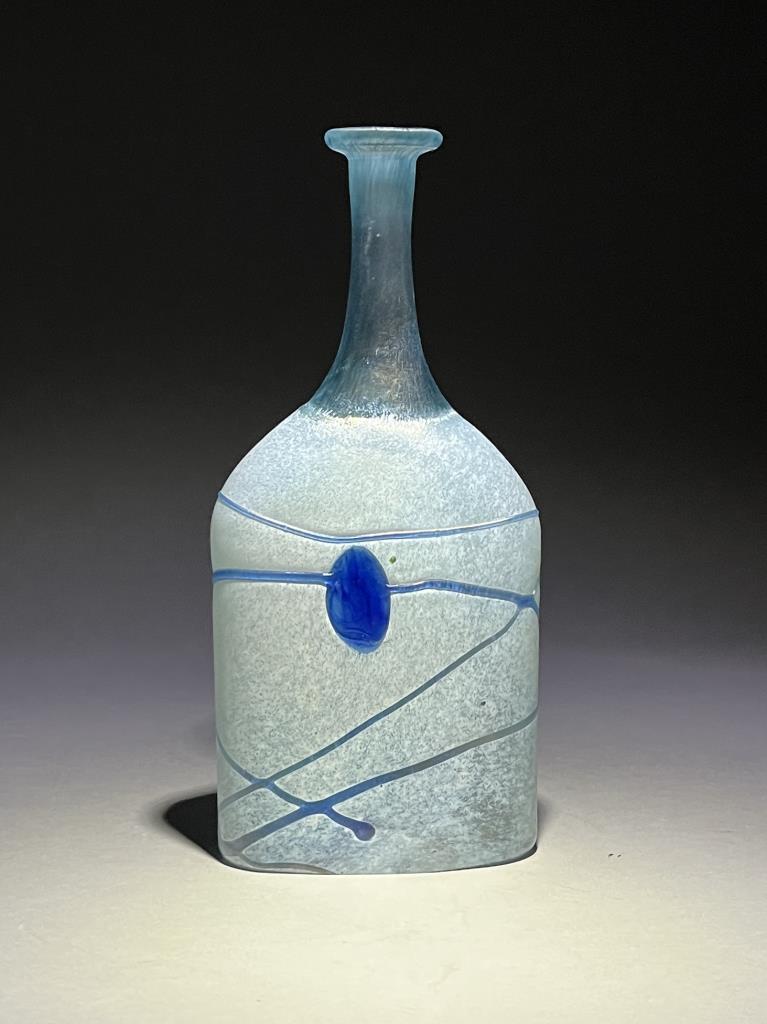Erik Bertil Vallien (Swedish, b. 1938), “Galaxy Blue” Post Modern icy blue bottle vase, circa 1982, ground pontil, etched signature on bottom, 7-7/8″ (H). CONDITION: Please Refer to Photos and Description for Condition. SHIPPING: In-House Shipping is available on this item. PLEASE read our Shipping Policies and our full Terms and Conditions prior to bidding.