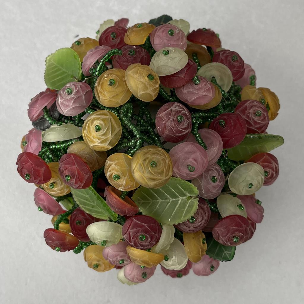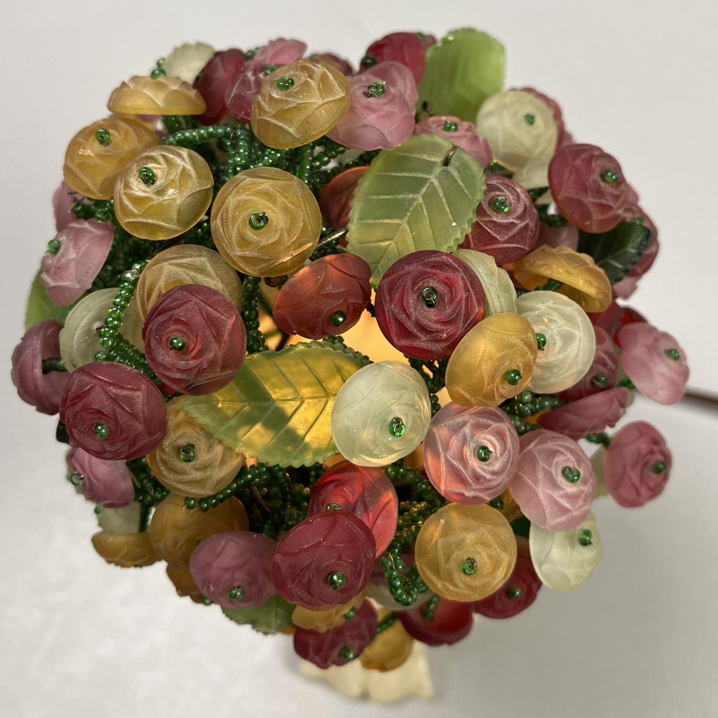 Czech Art Glass Beaded & Glass Flower Boudoir Lamp