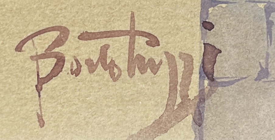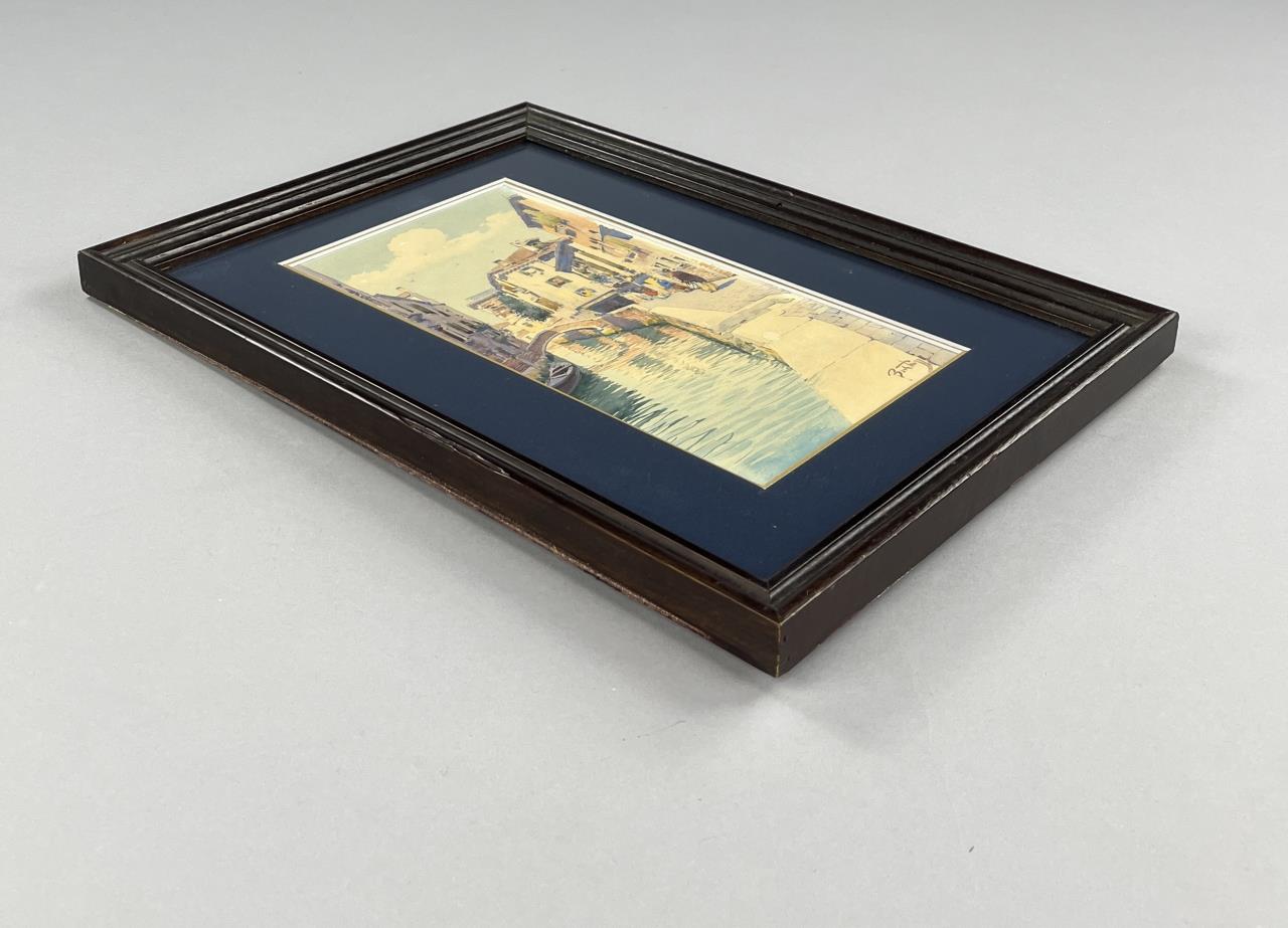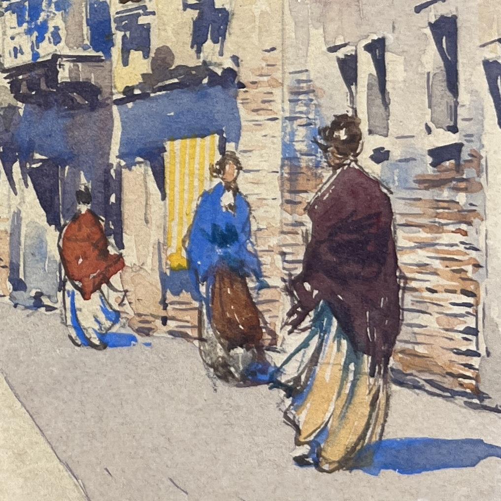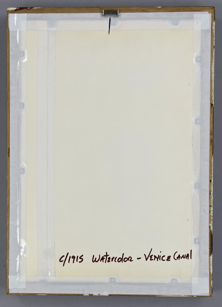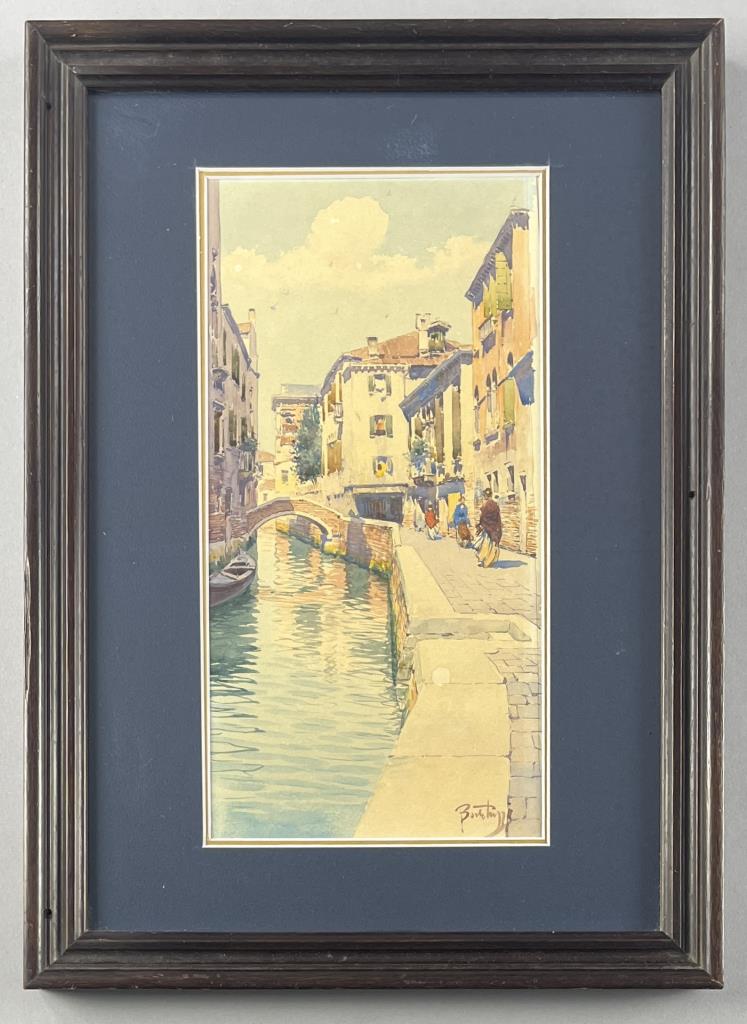 Watercolor painting on paper, depicting a Venetian canal scene, signed lower right, most likely early 20th Century, in a later dark stained wood frame measuring 16-5/8″ x 12″. CONDITION: Not examined out of frame. SHIPPING: In-House Shipping is available on this item. PLEASE read our Shipping Policies and our full Terms and Conditions prior to bidding.