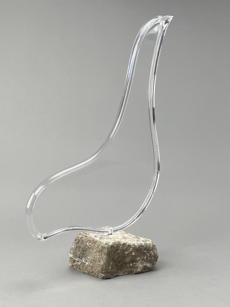 Modern style sculpture, depicting a bird, molded Lucite mounted to a rough-cut stone base, circa mid to late 20th Century, approximately 17″ (H). CONDITION: Please Refer to Photos and Description for Condition. SHIPPING: In-House Shipping is available on this item. PLEASE read our Shipping Policies and our full Terms and Conditions prior to bidding.