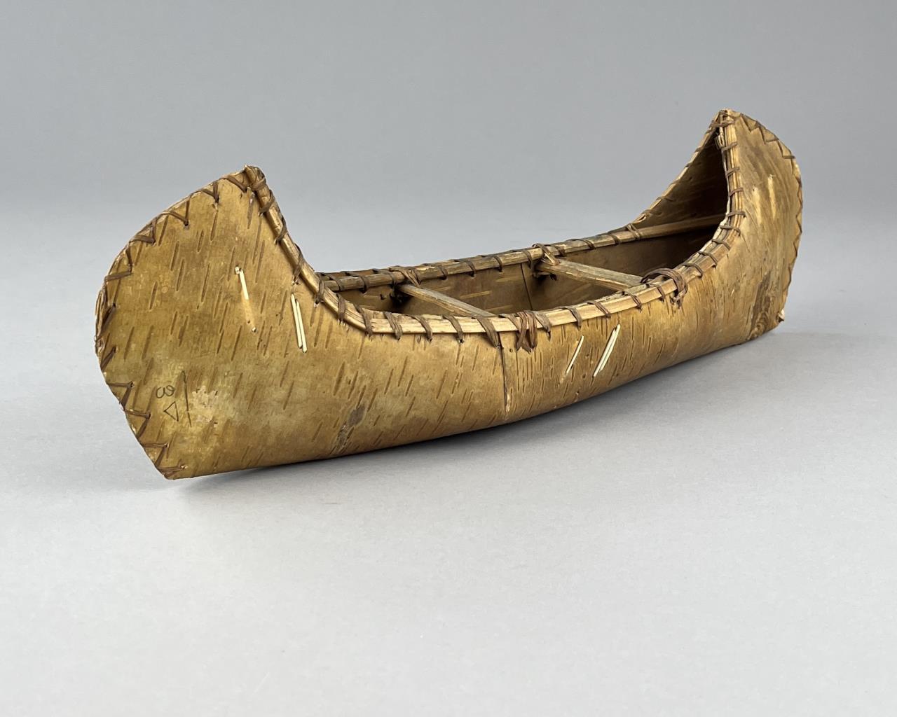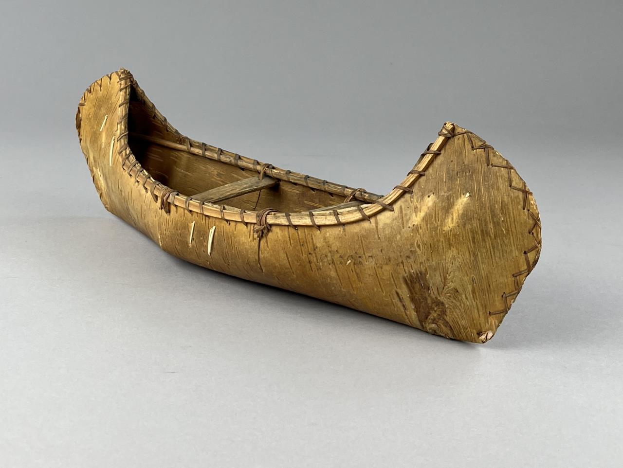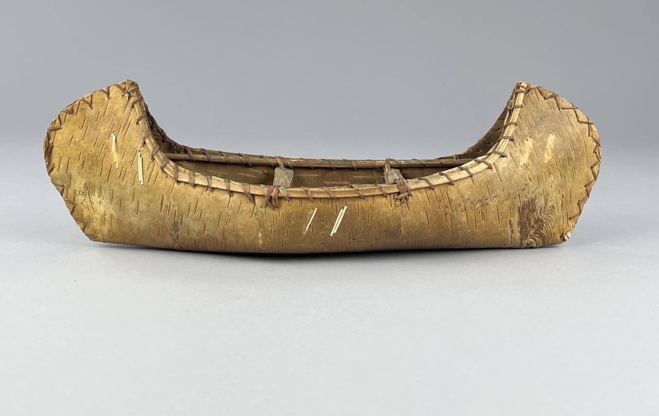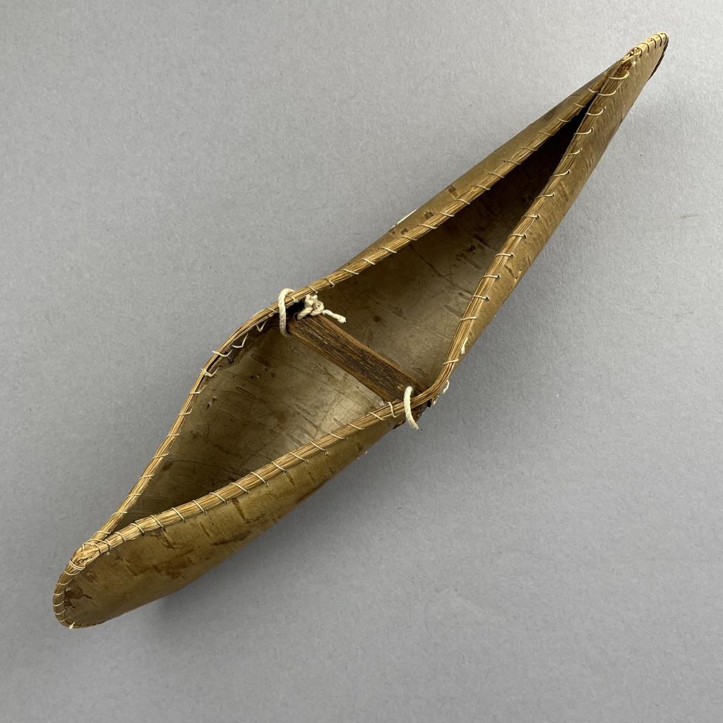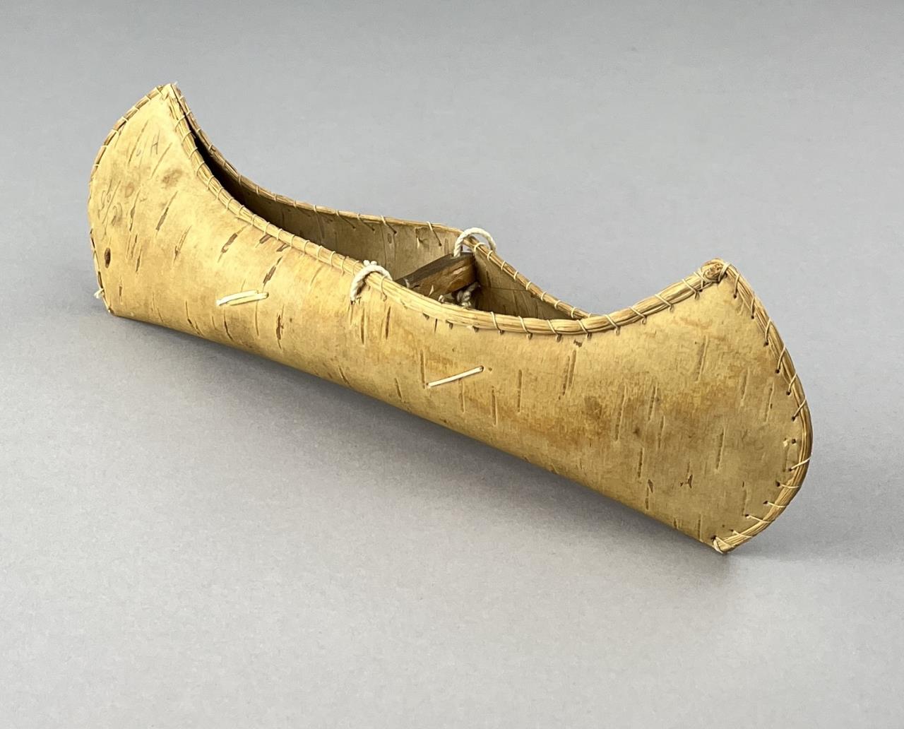 Three Native American style birch bark canoe models or toys, two with porcupine quill decoration, early to mid 20th Century, the largest measuring approximately 16-1/2″ (L). CONDITION: One cracked at center, and two with pencil markings, please see photos. SHIPPING: In-House Shipping is available on this item. PLEASE read our Shipping Policies and our full Terms and Conditions prior to bidding.
